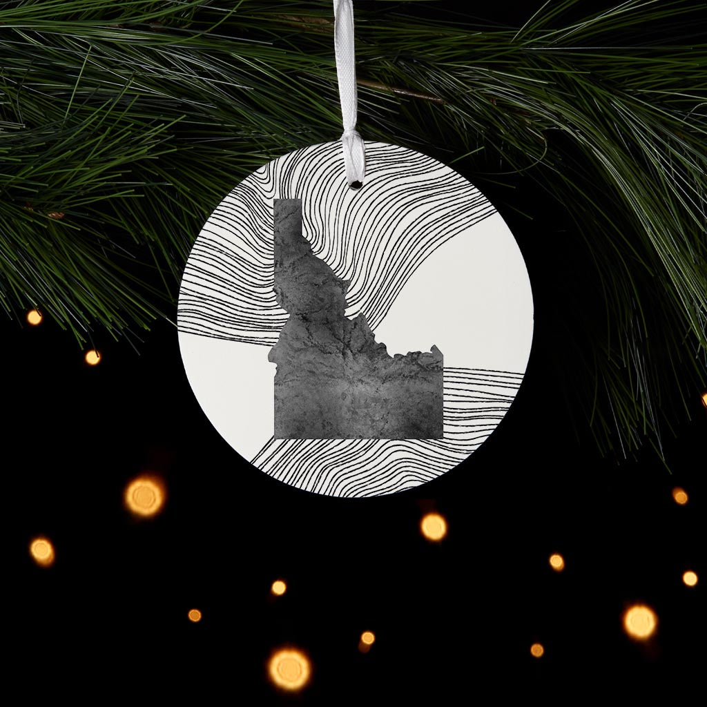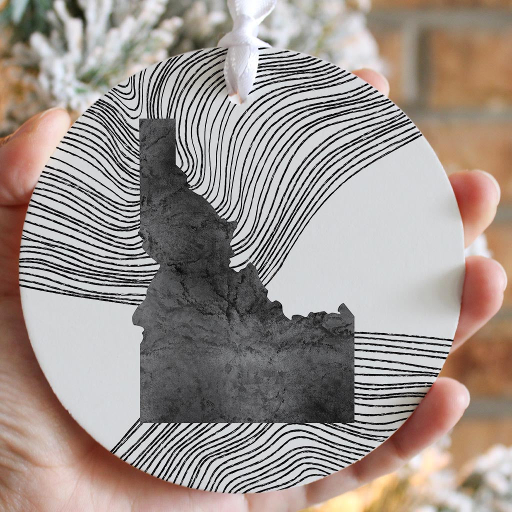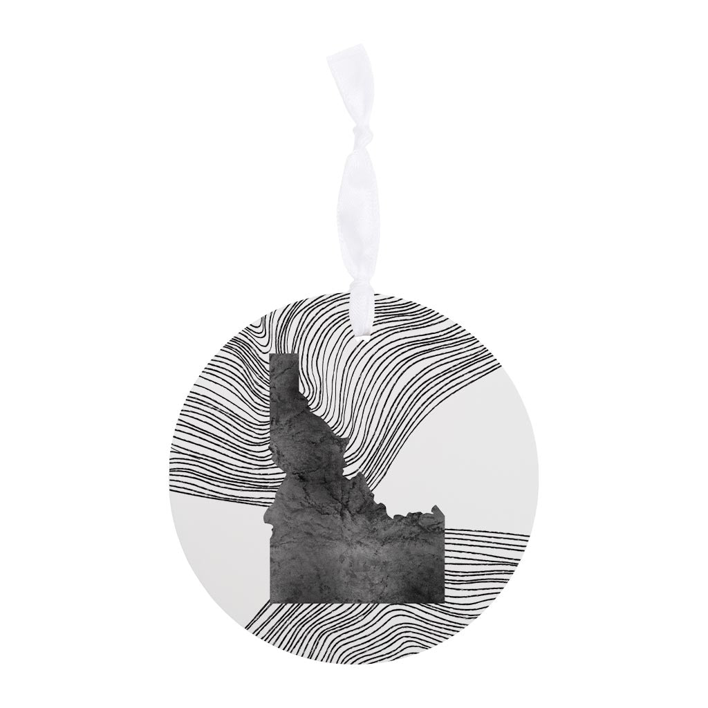 Minimalist B&W Idaho State With Fluid Lines | Wood Ornament | Eaches | Min 6