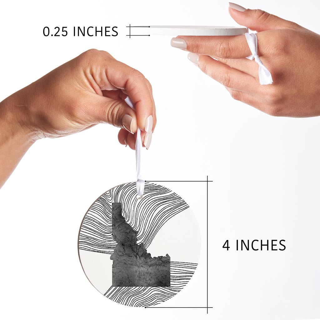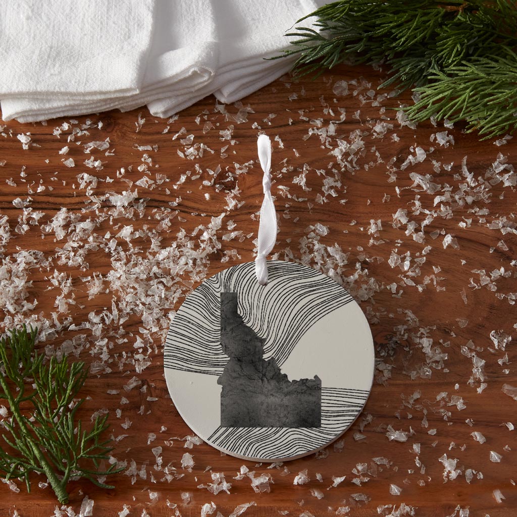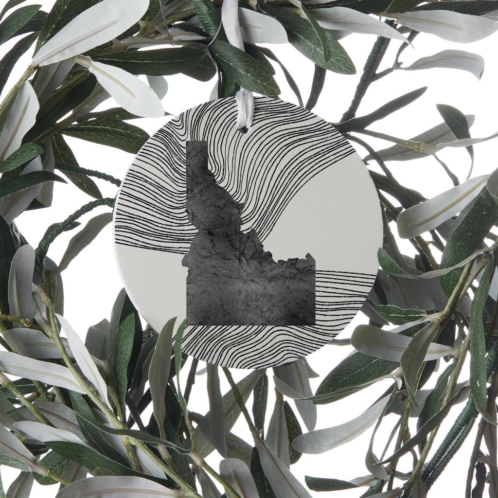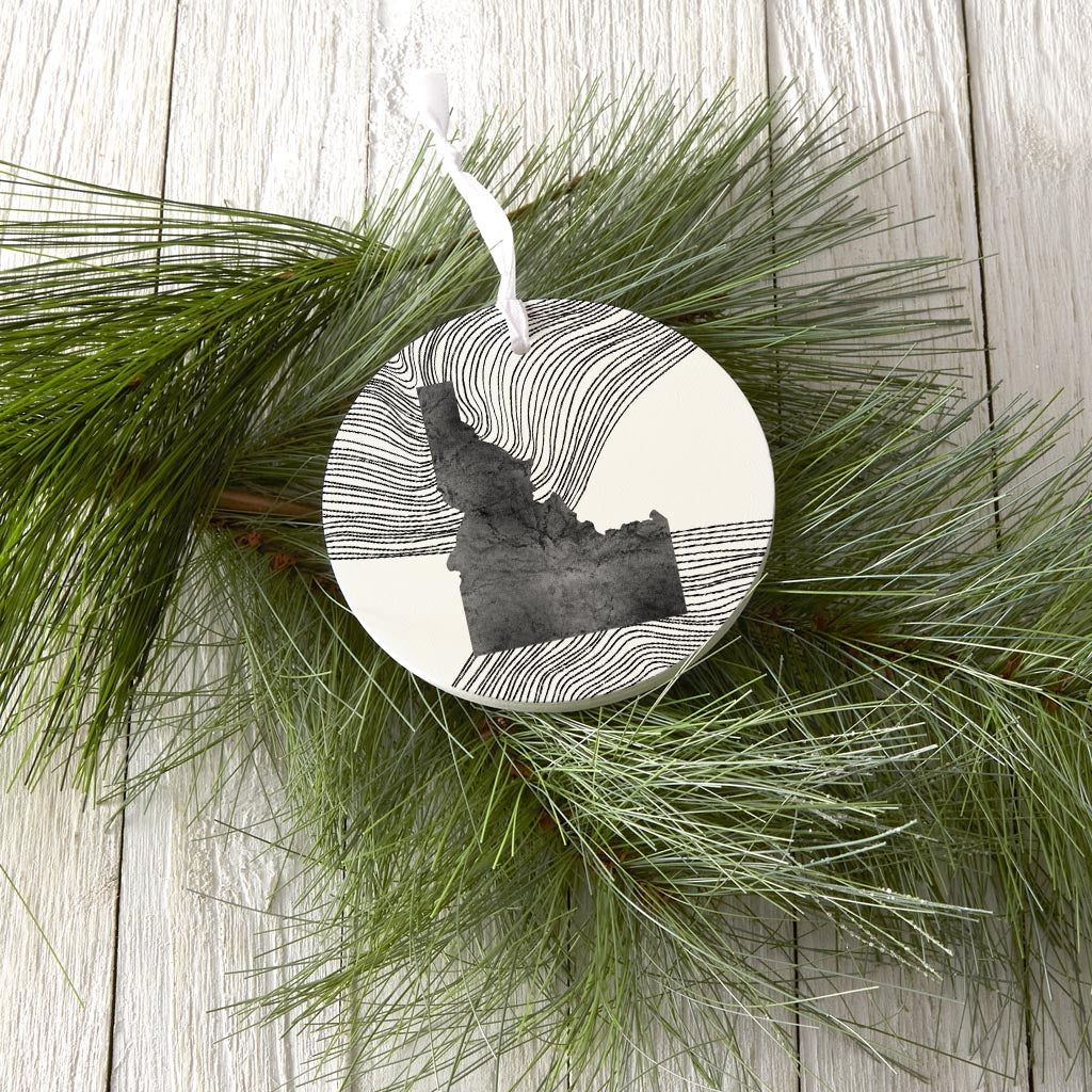 Minimalist B&W Idaho State With Fluid Lines | Wood Ornament | Eaches | Min 6