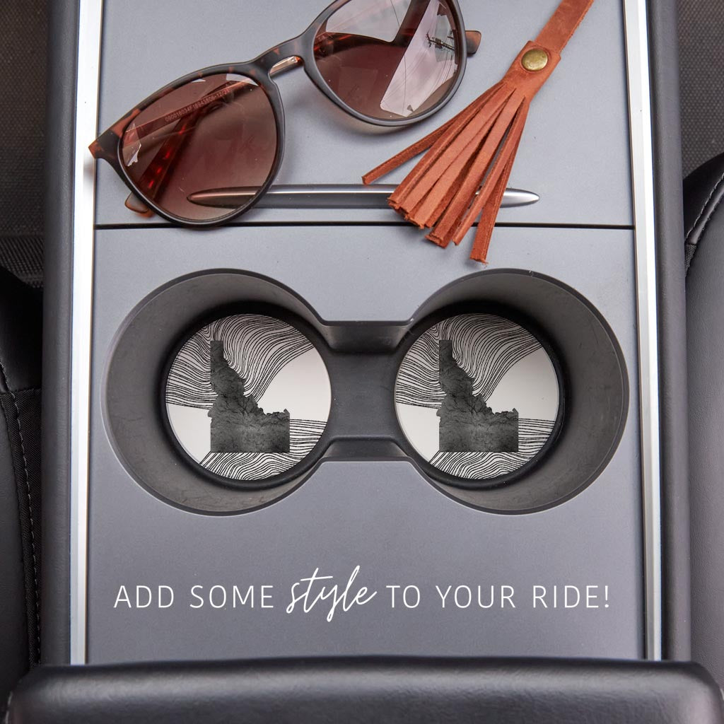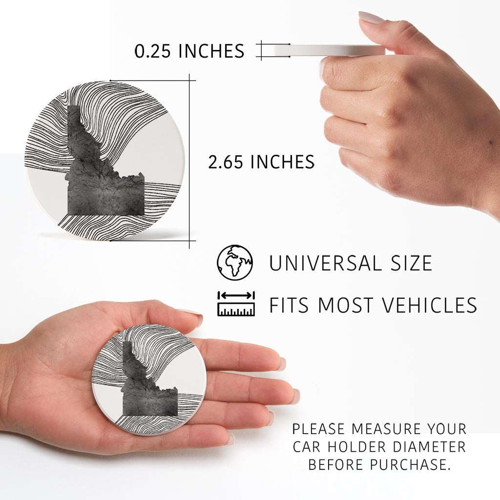 Minimalist B&W Idaho State With Fluid Lines | Absorbent Car Coasters | Set of 2 | Min 4