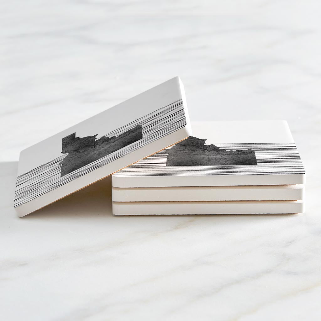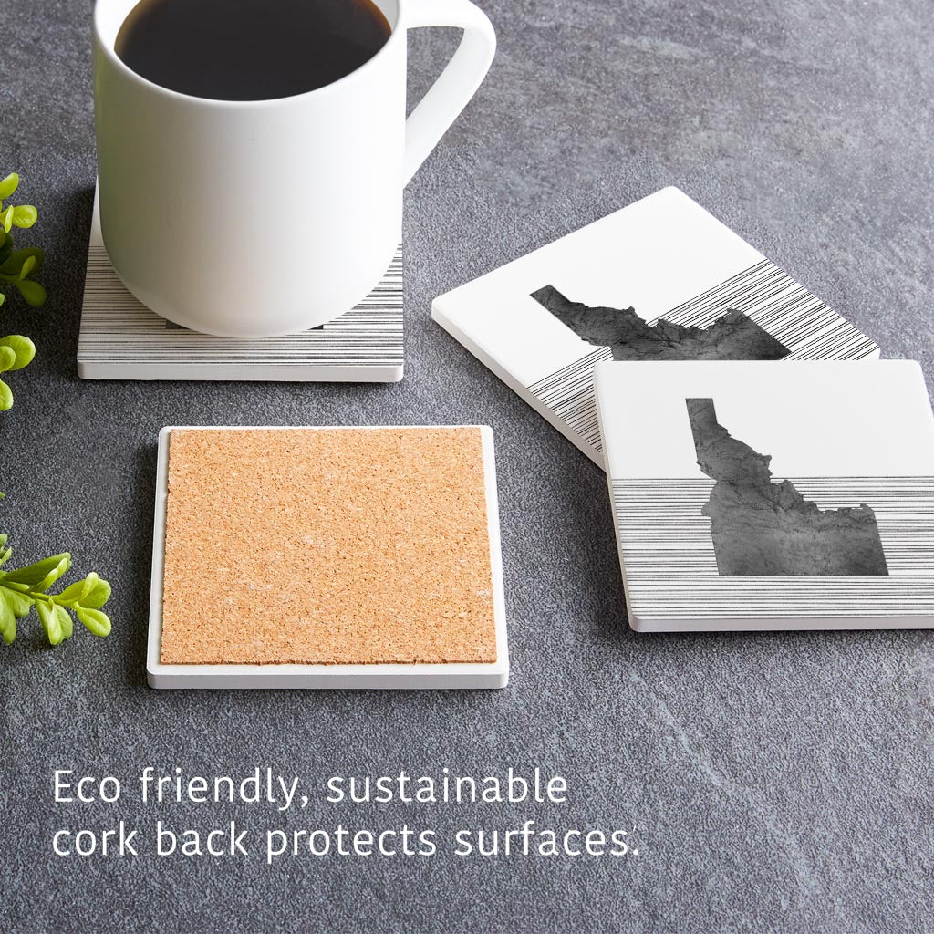 Minimalist B&W Idaho State With Straight Lines | Absorbent Coasters | Set of 4 | Min 2