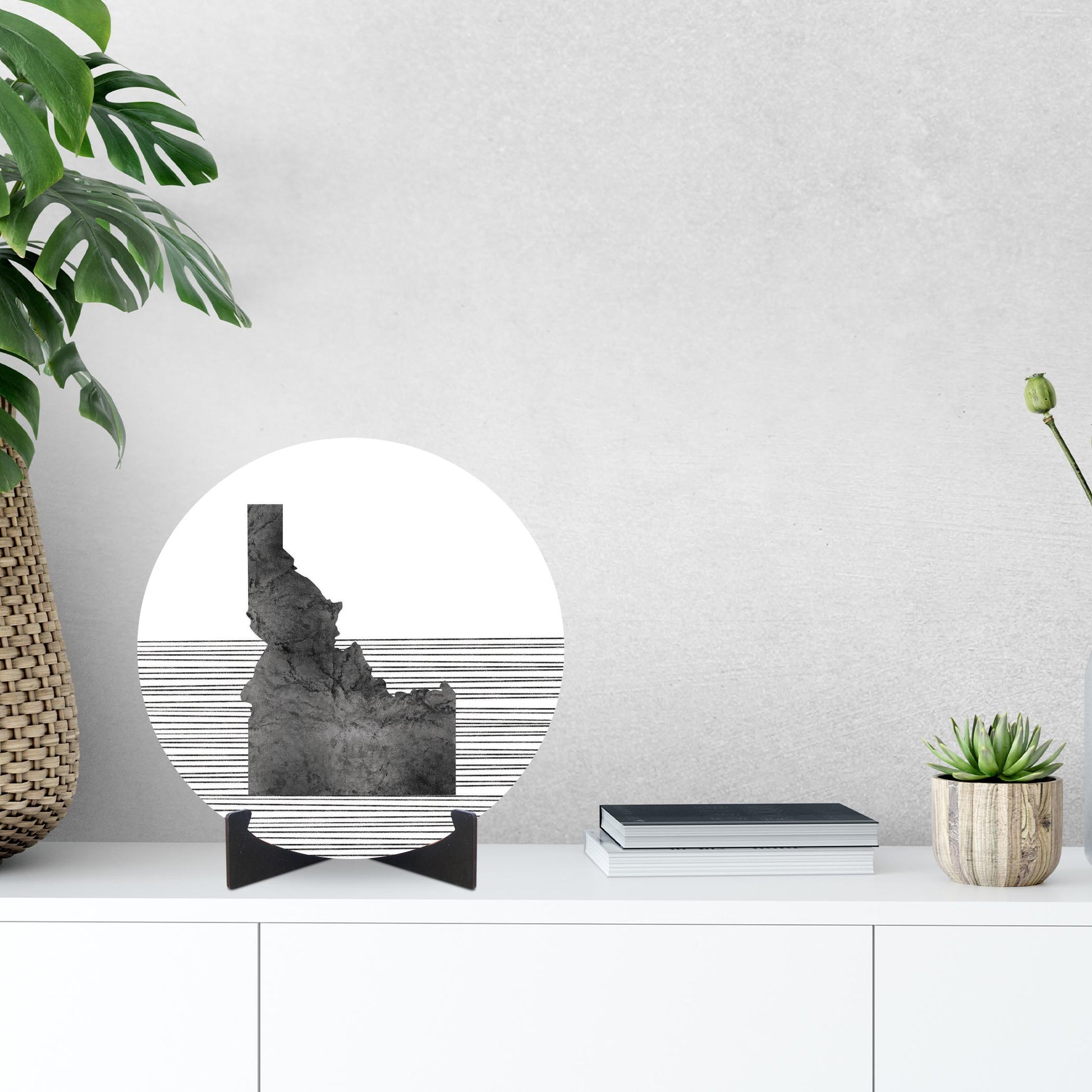 Minimalist B&W Idaho State With Straight Lines | Wood Sign | Eaches | Min 1