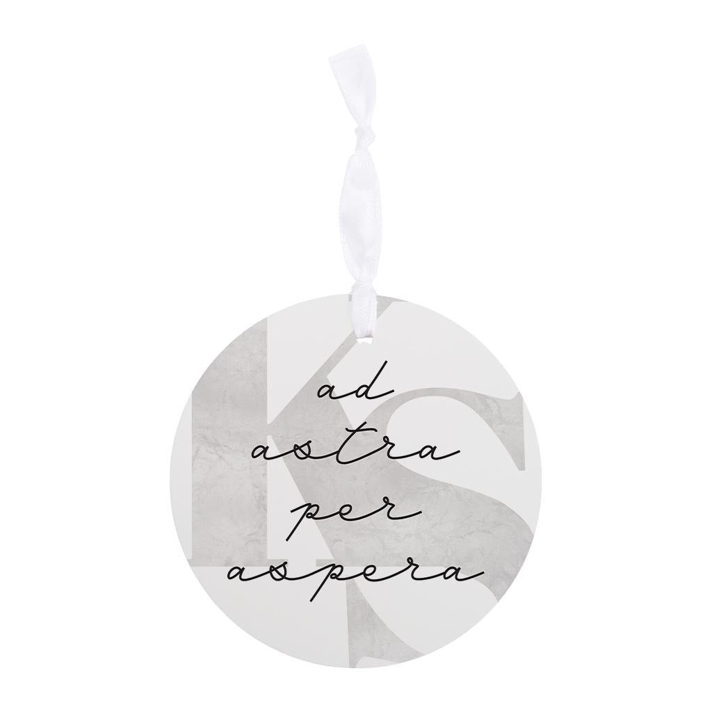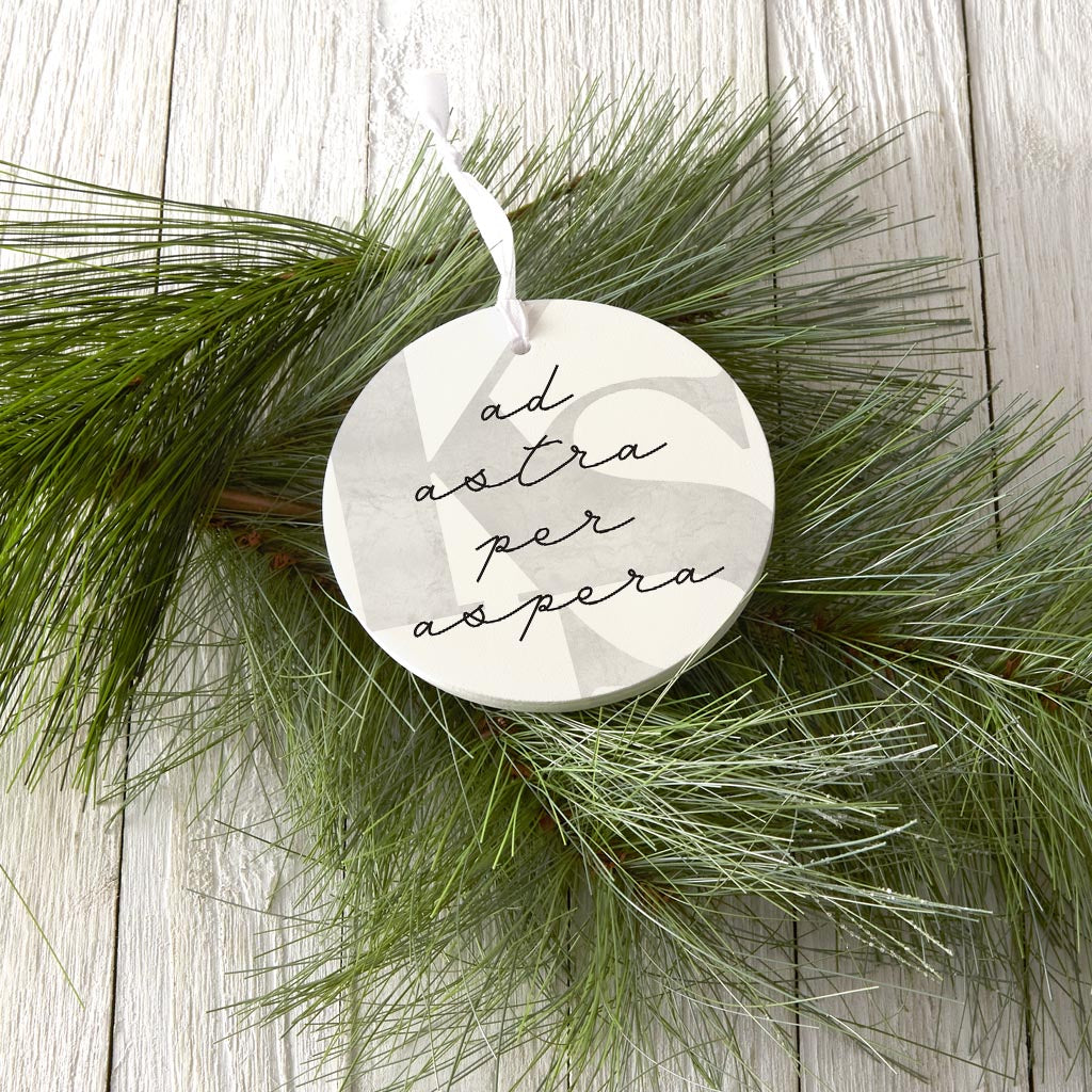Minimalist B&W Kansas Ad Astra Per Aspera | Wood Ornament | Eaches | Min 6