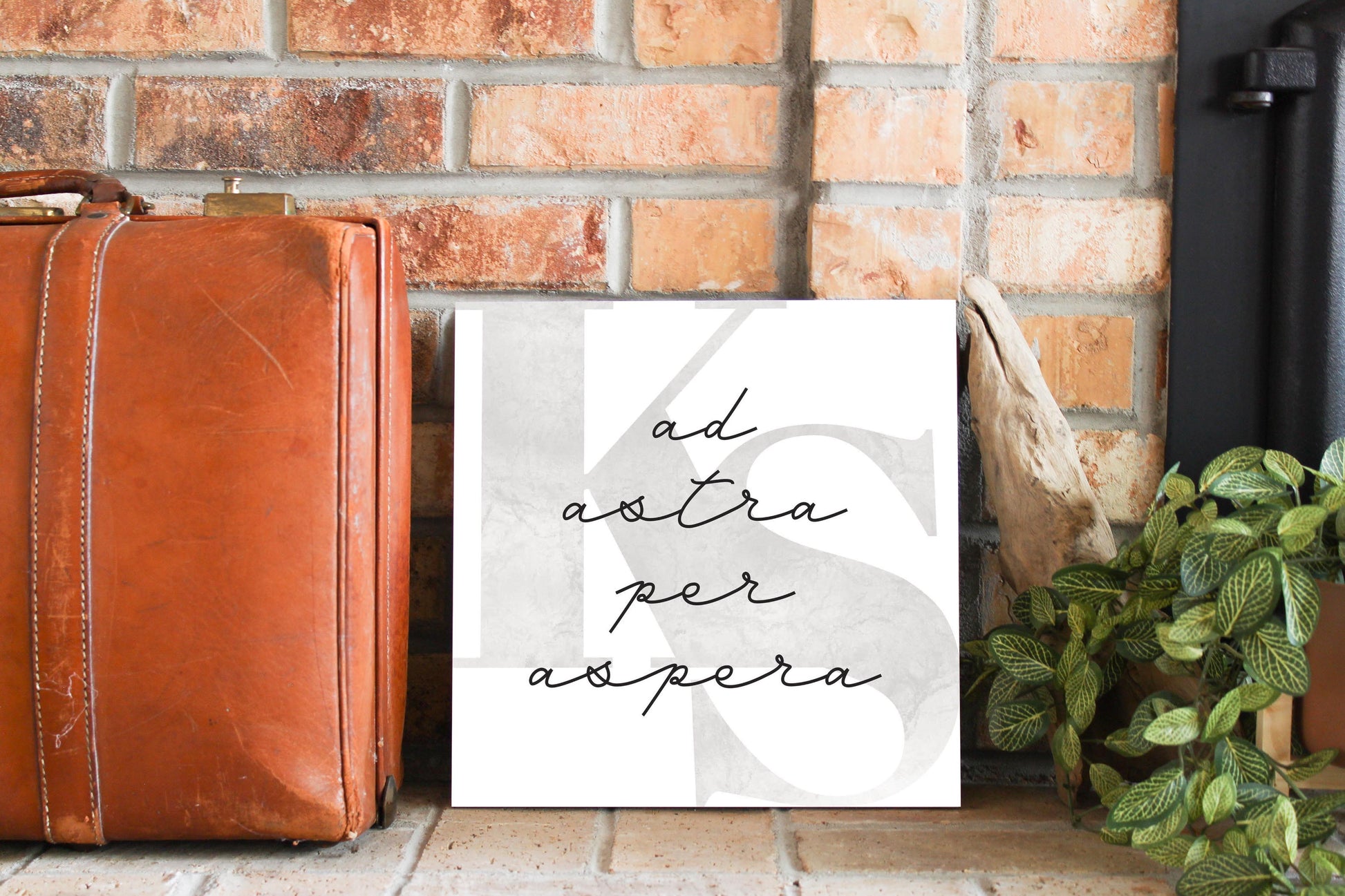 Minimalist B&W Kansas Ad Astra Per Aspera | Wood Sign | Eaches | Min 2