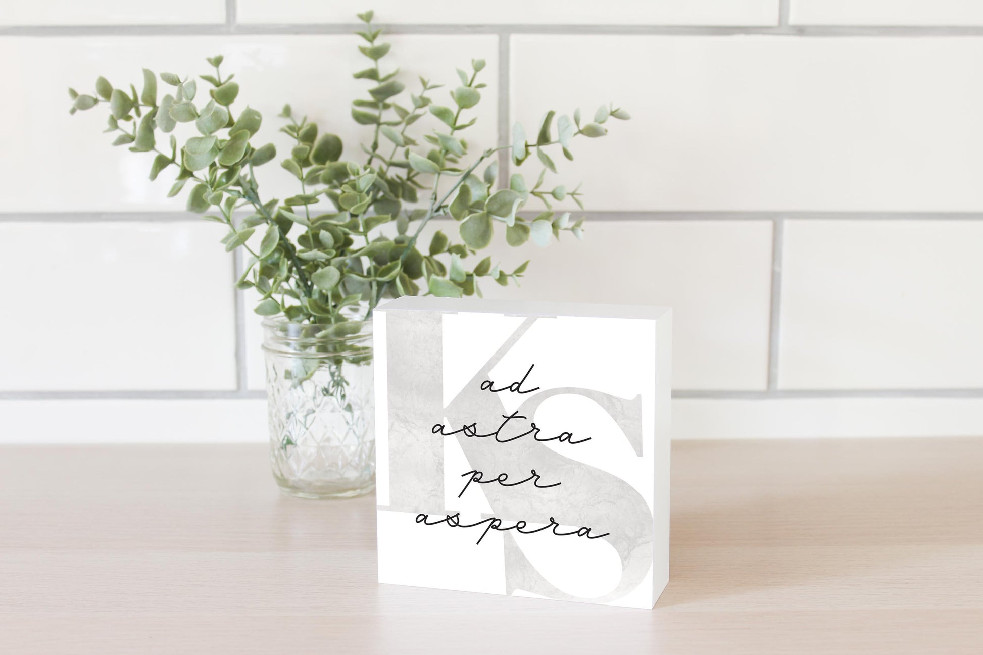 Minimalist B&W Kansas Ad Astra Per Aspera | Wood Block | Eaches | Min 4