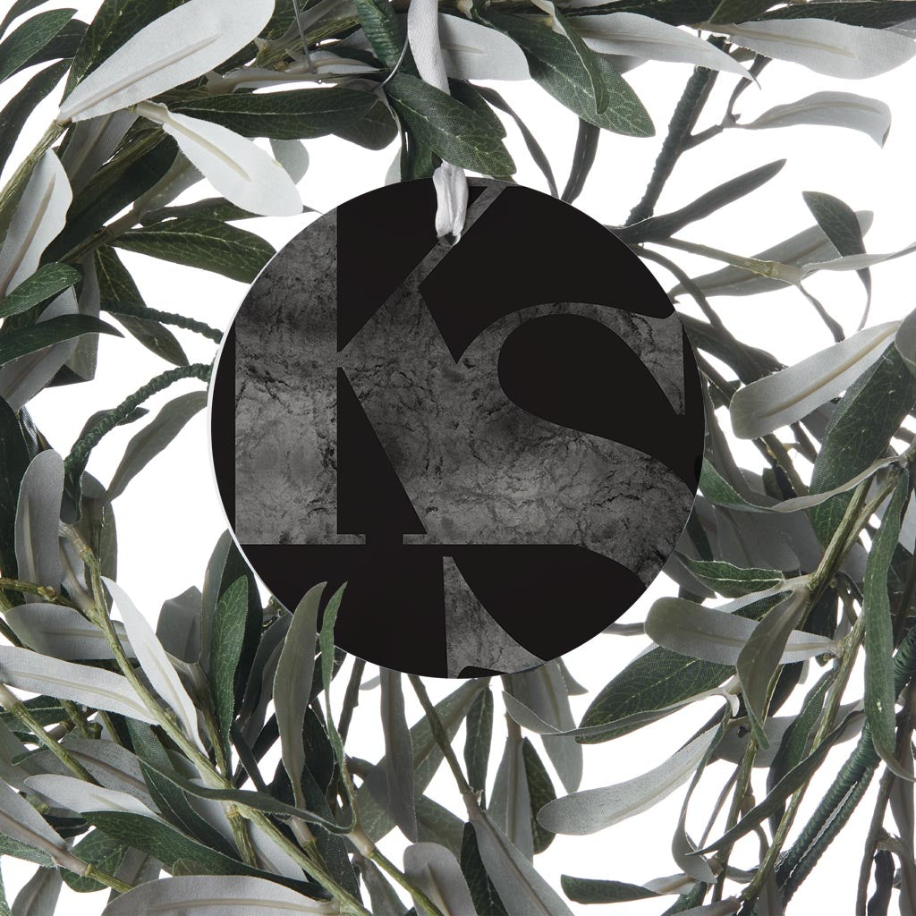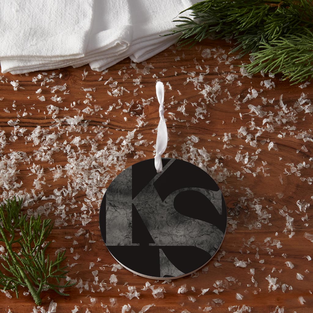 Minimalist B&W Kansas Black Initials | Wood Ornament | Eaches | Min 6