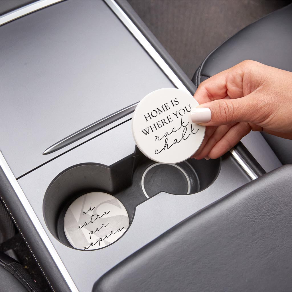 Minimalist B&W Kansas Latin Rock Chalk Quotes| Absorbent Car Coasters | Set of 2 | Min 4