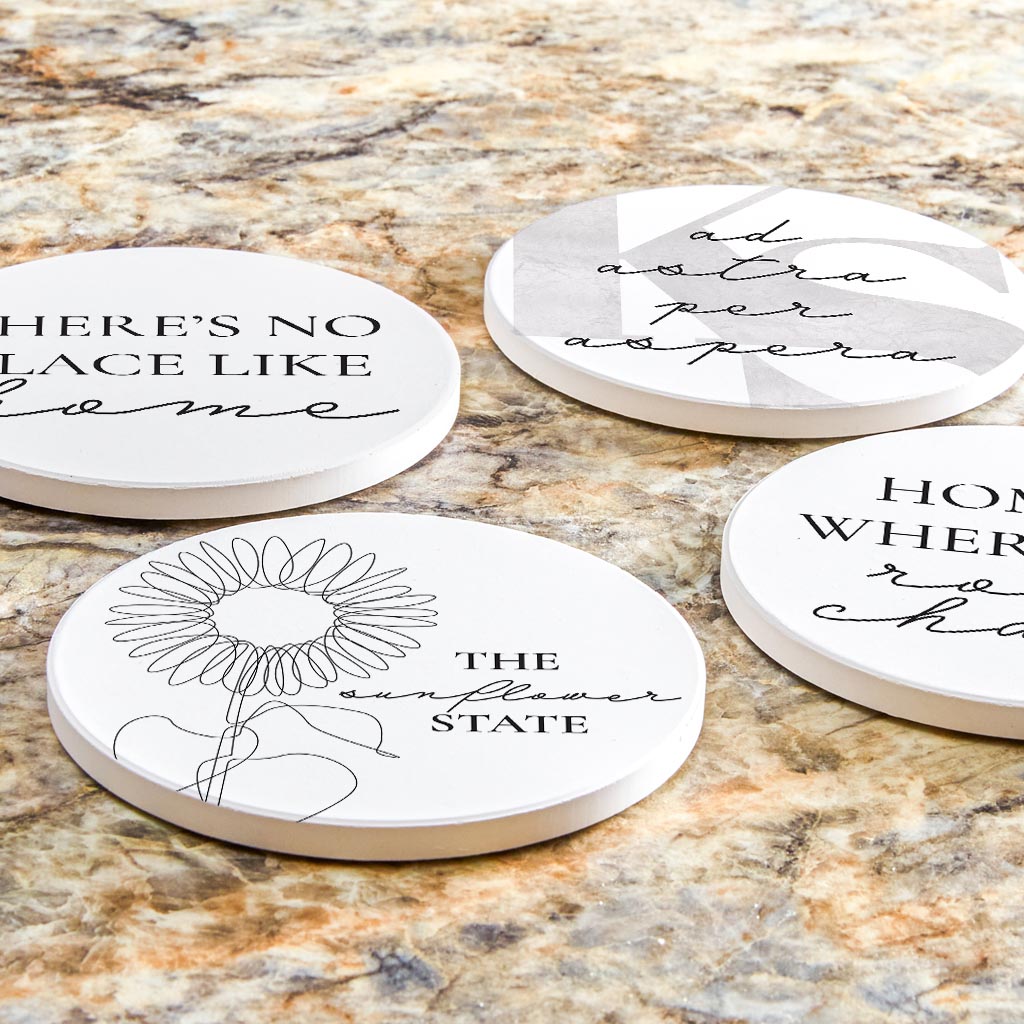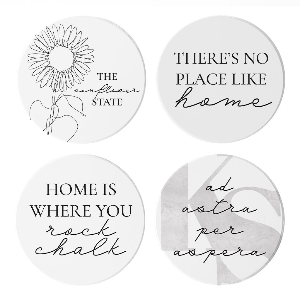 Minimalist B&W Kansas Quotes | Absorbent Coasters | Set of 4 | Min 2