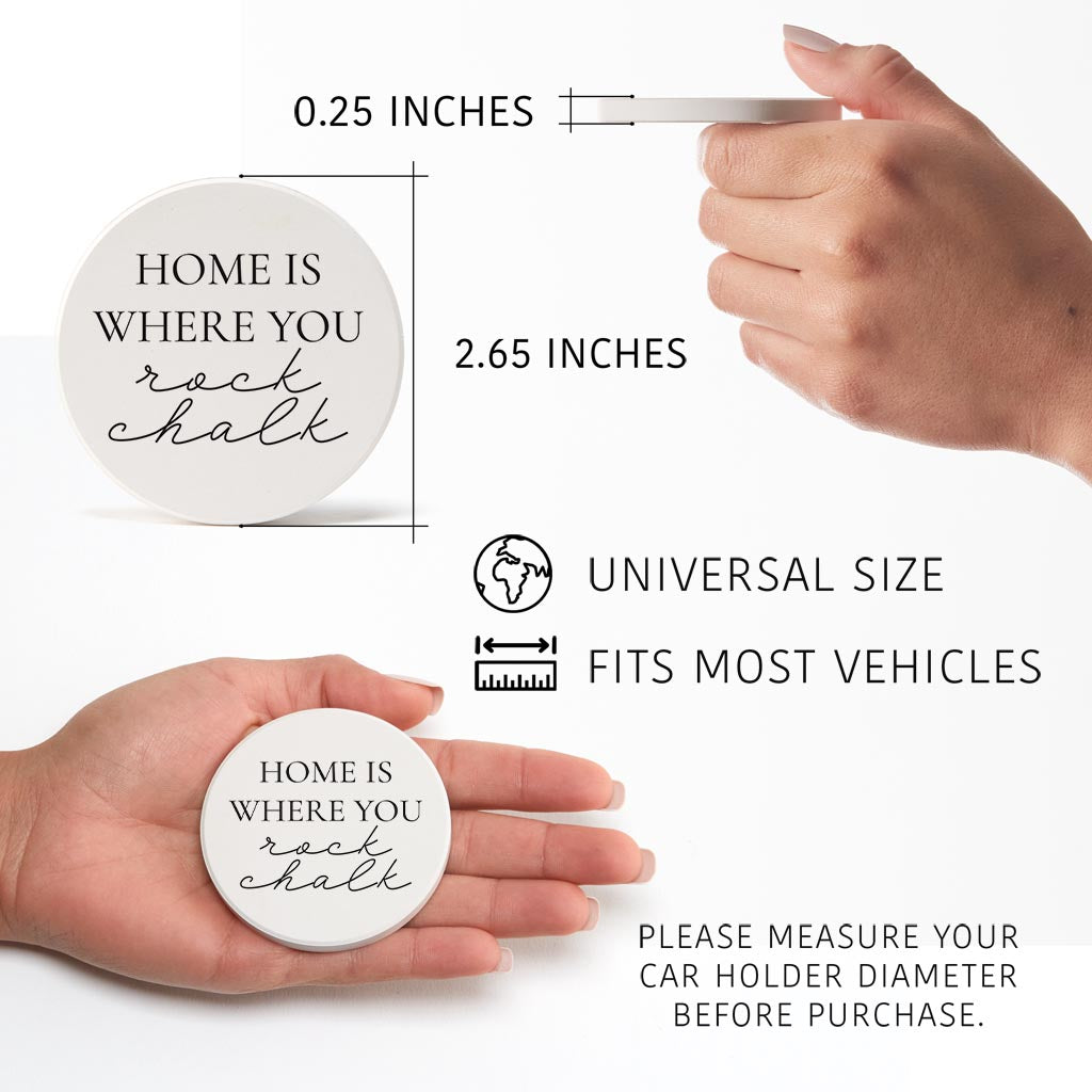 Minimalist B&W Kansas Rock Chalk | Absorbent Car Coasters | Set of 2 | Min 4