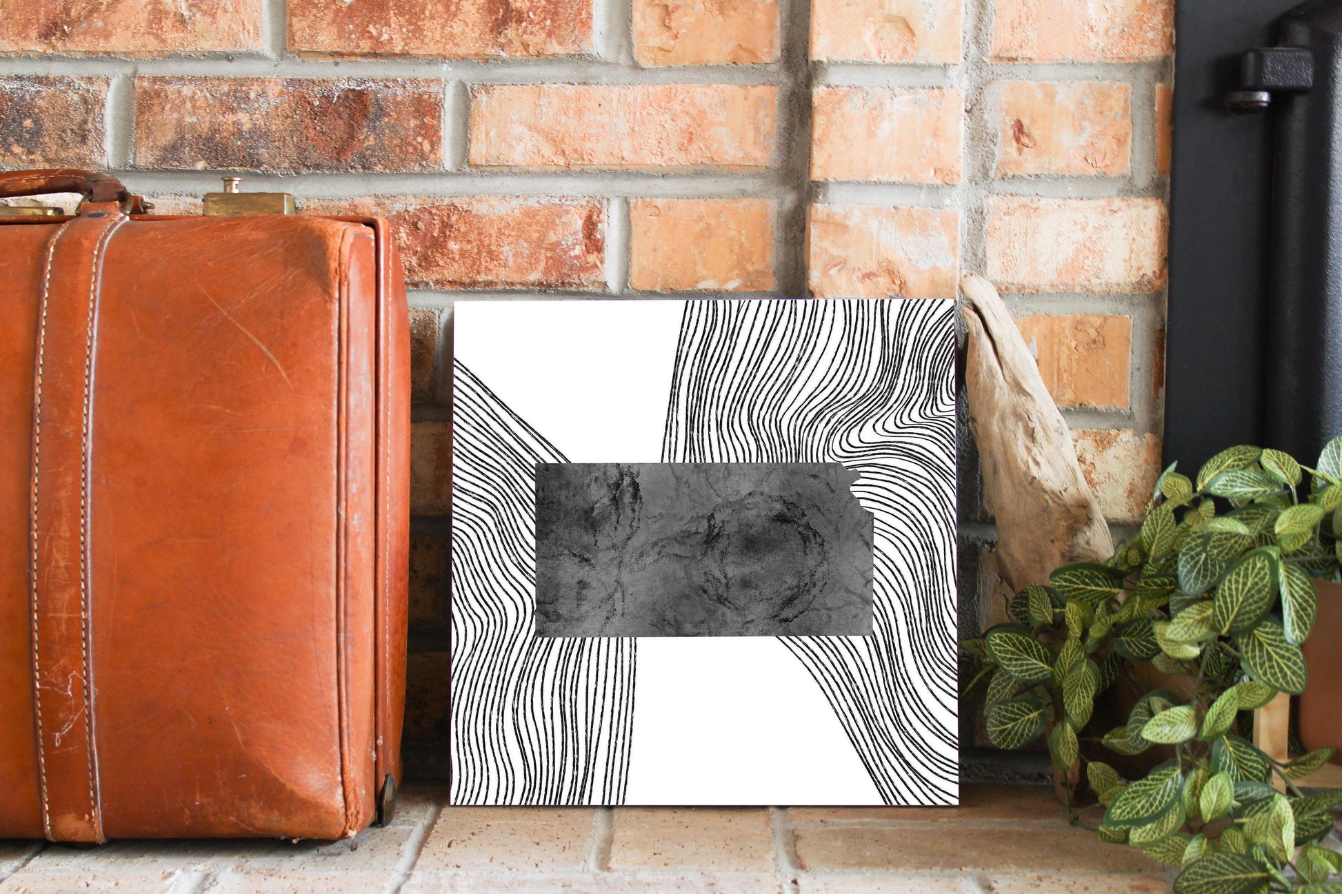 Minimalist B&W Kansas State With Fluid Lines | Wood Sign | Eaches | Min 2