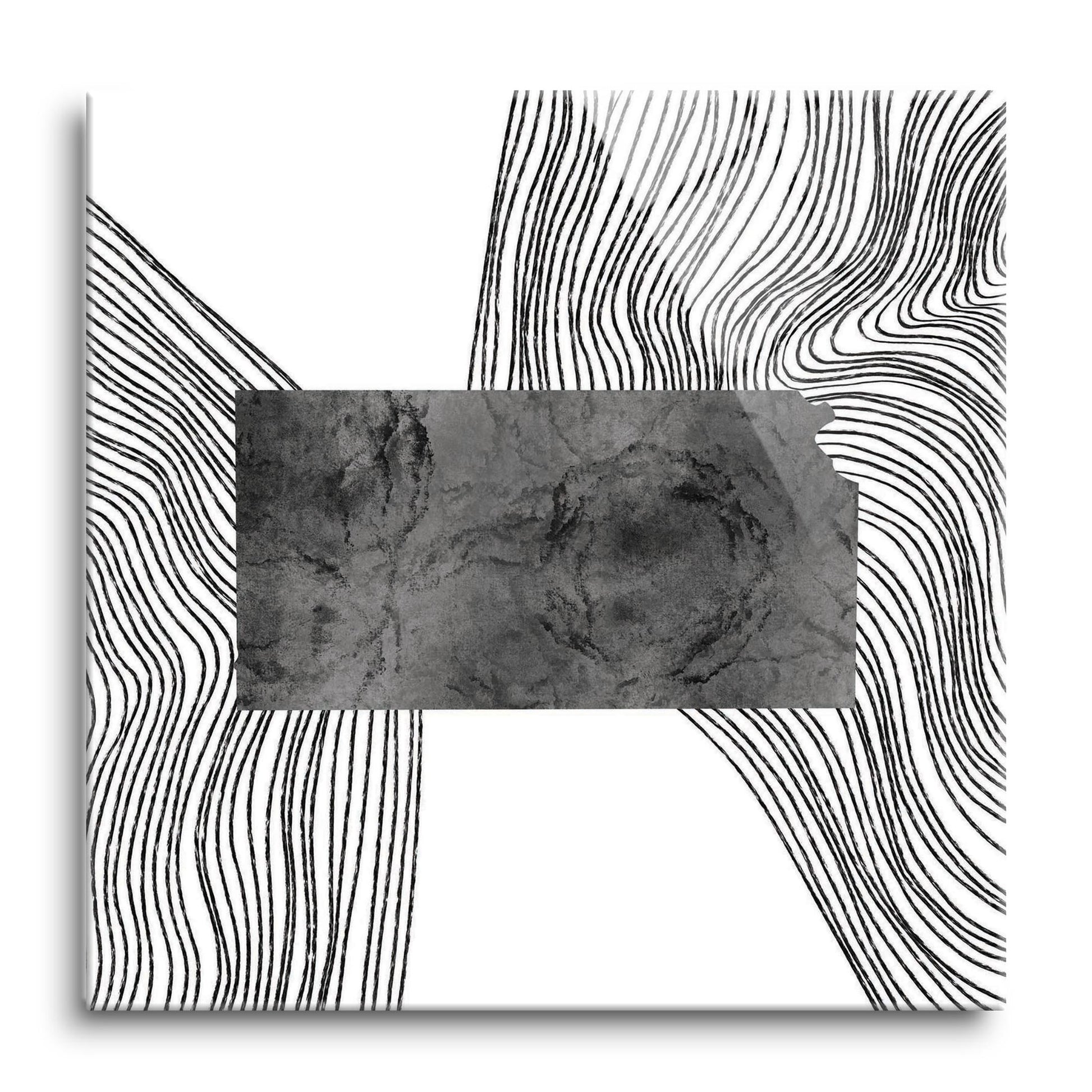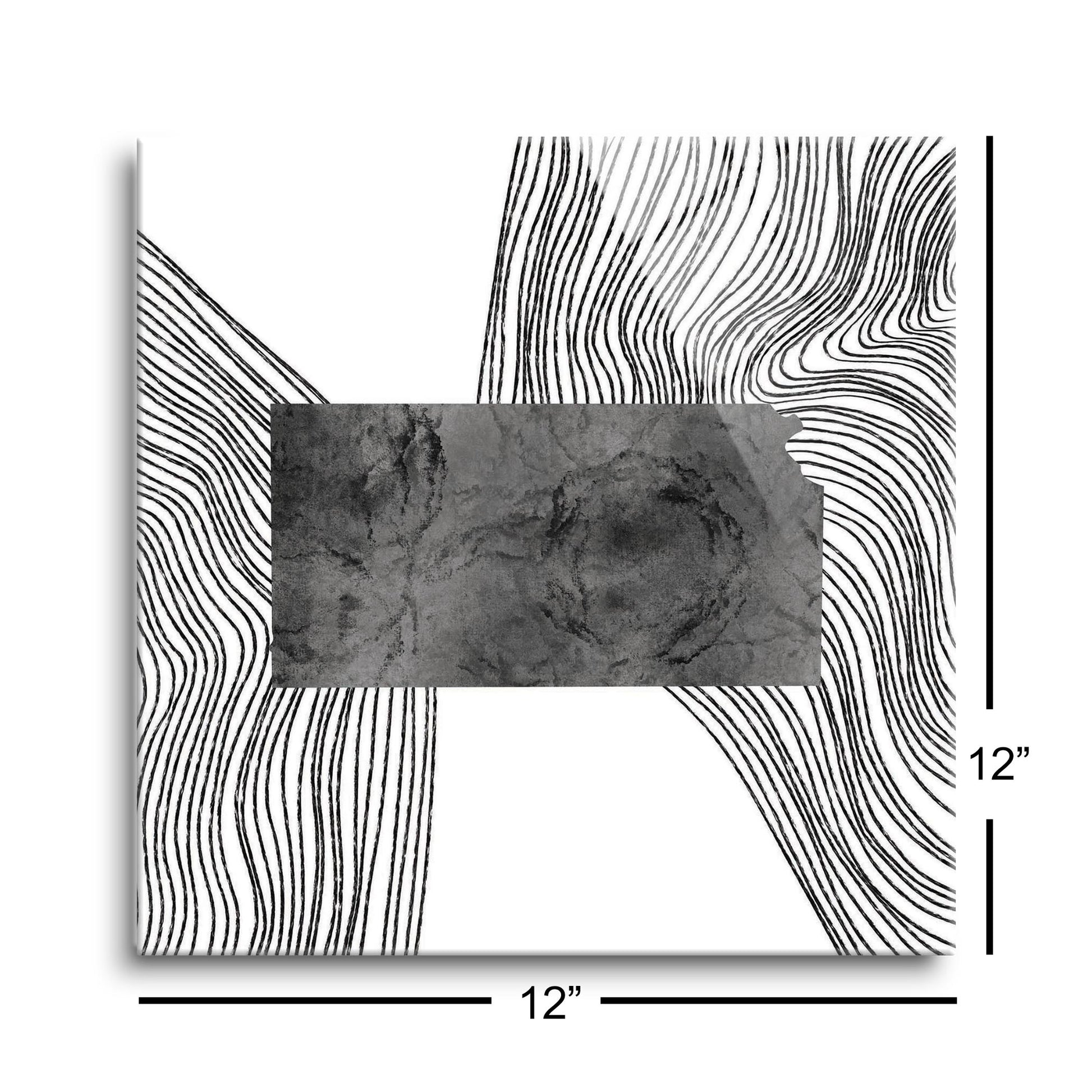 Minimalist B&W Kansas State With Fluid Lines | Hi-Def Glass Art | Eaches | Min 1