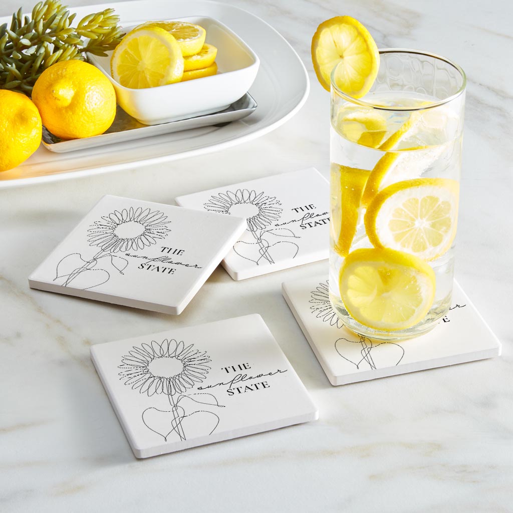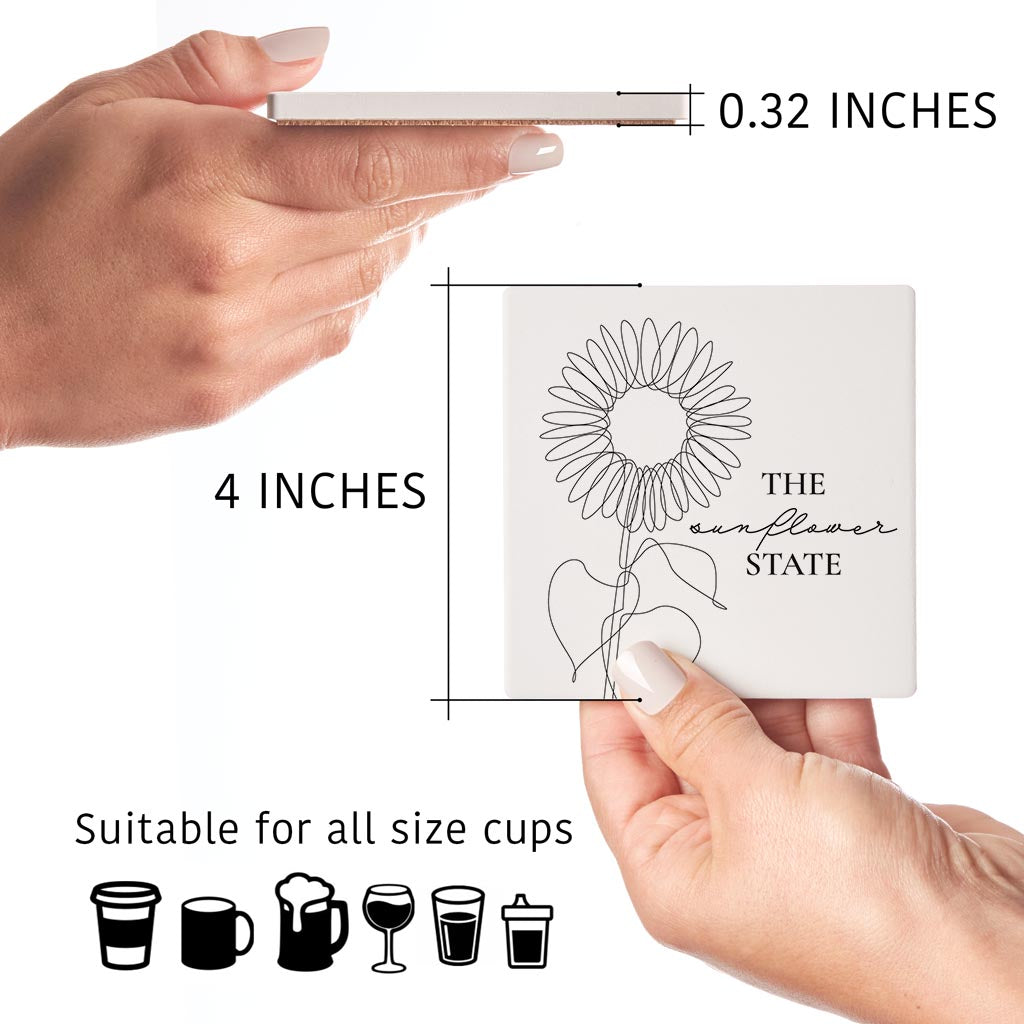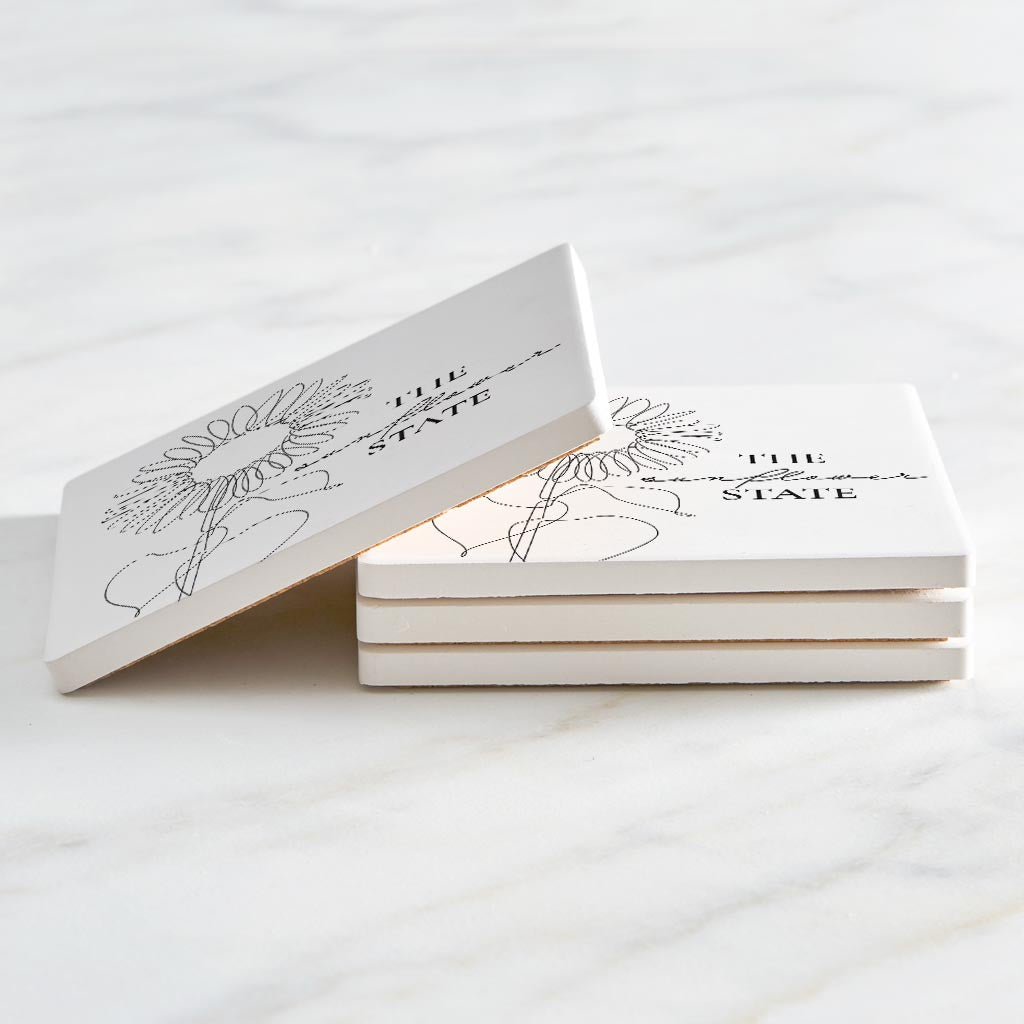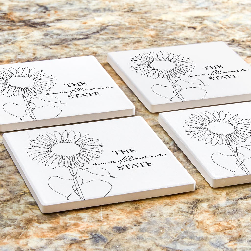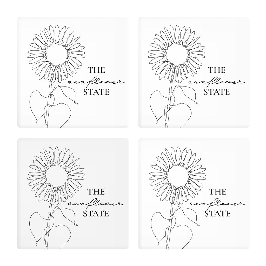 Minimalist B&W Kansas Sunflower Line Drawing | Absorbent Coasters | Set of 4 | Min 2