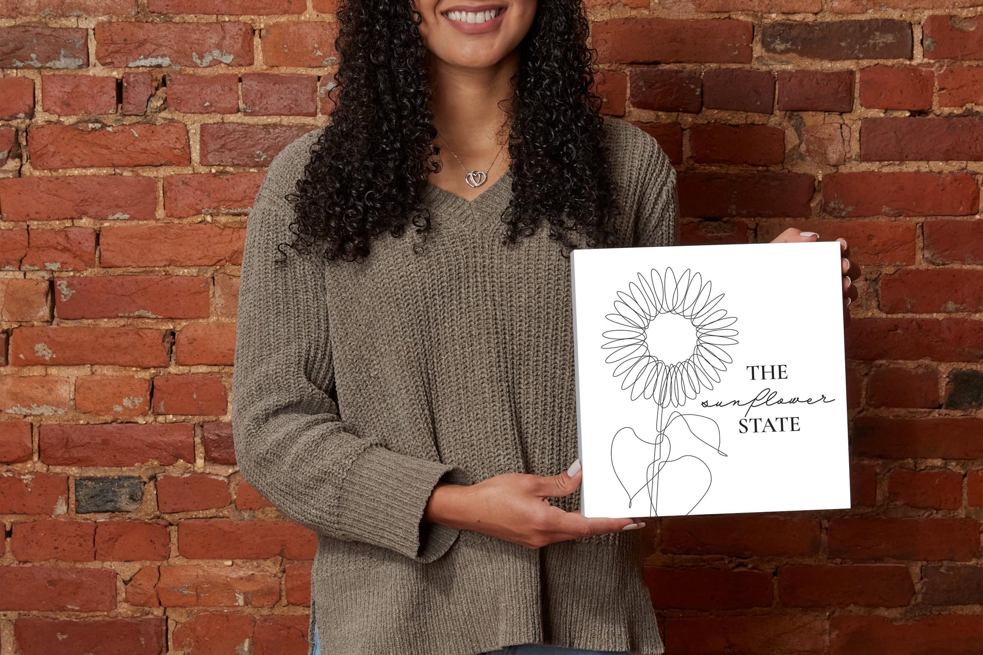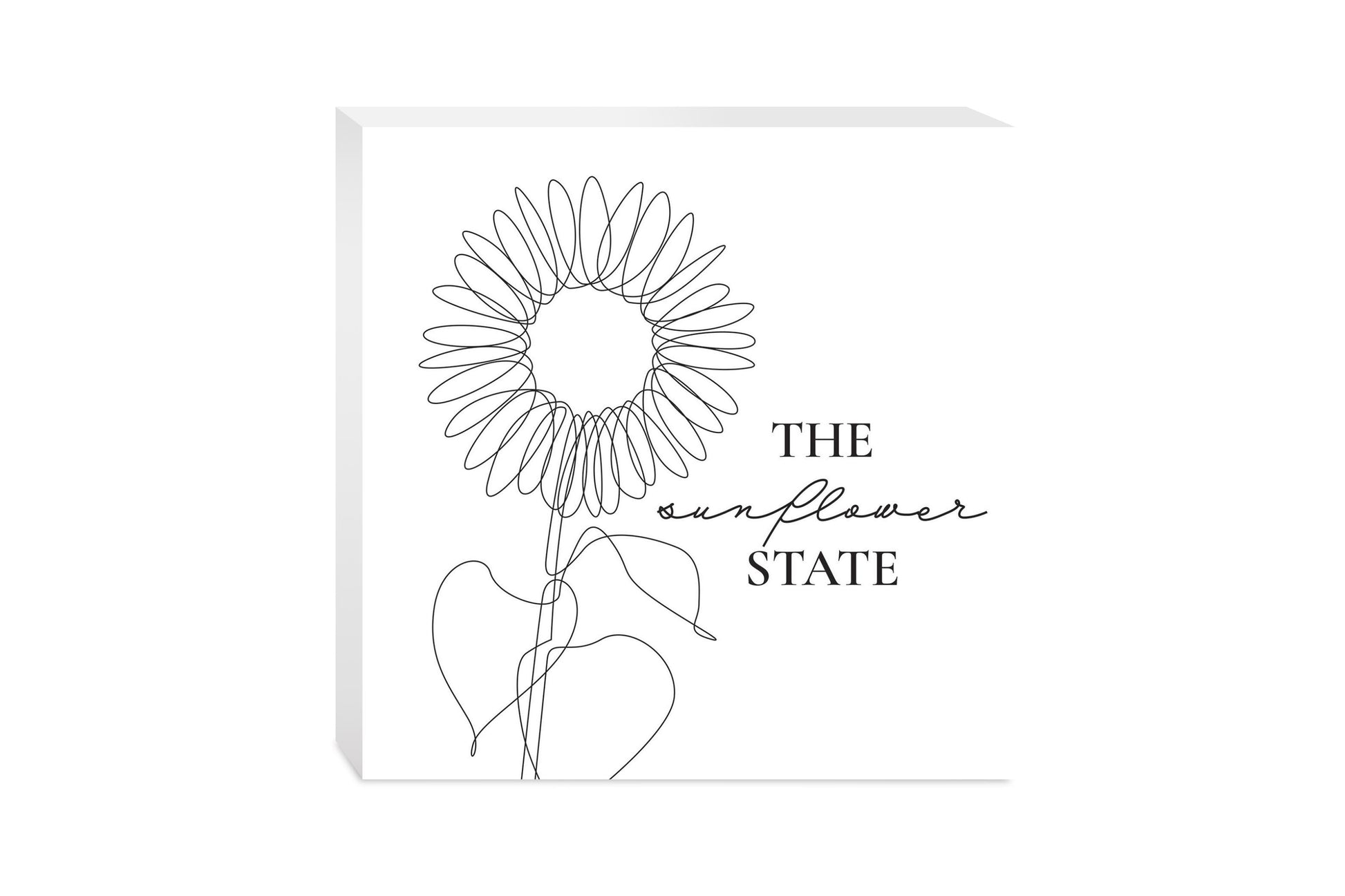 Minimalist B&W Kansas Sunflower Line Drawing | Wood Block | Eaches | Min 2