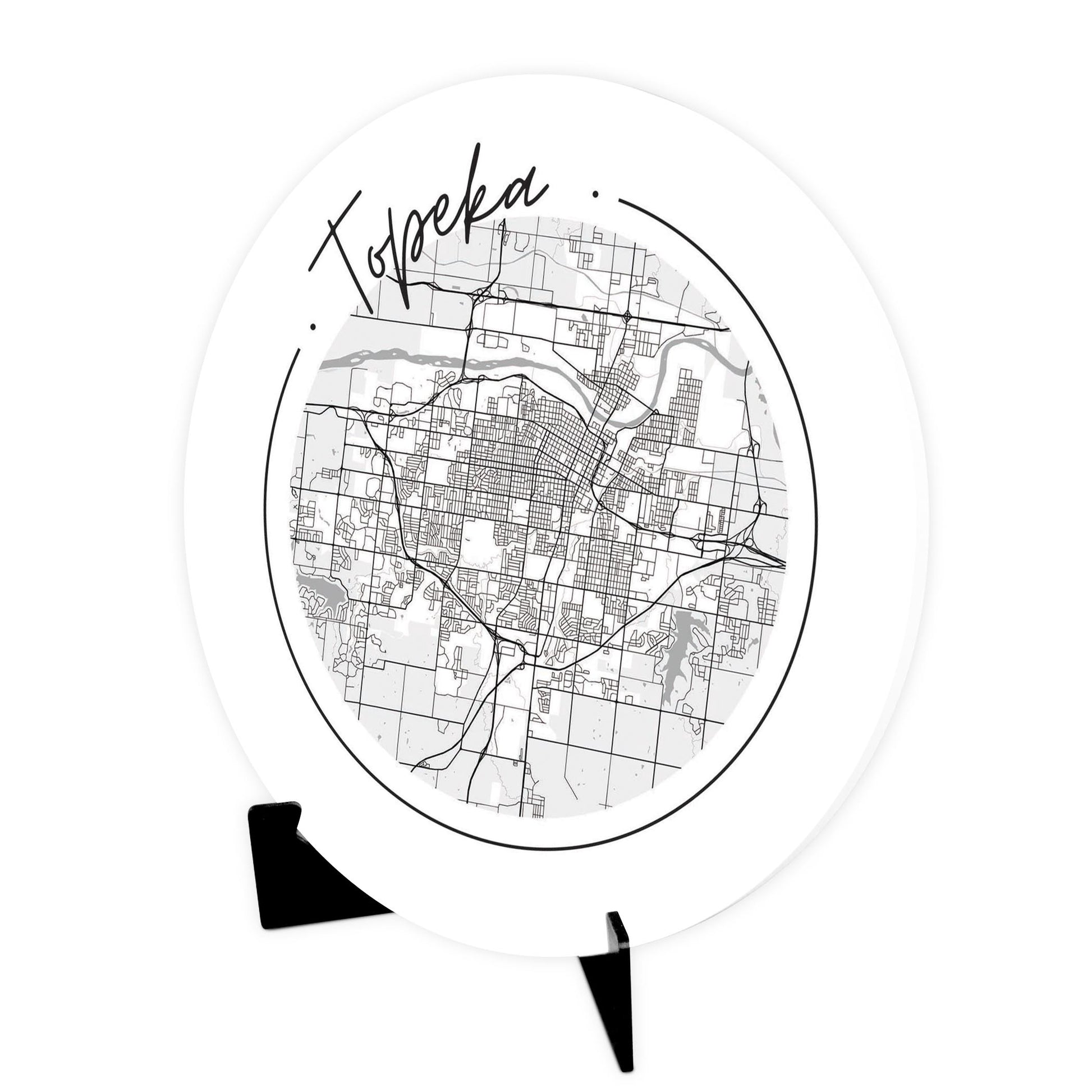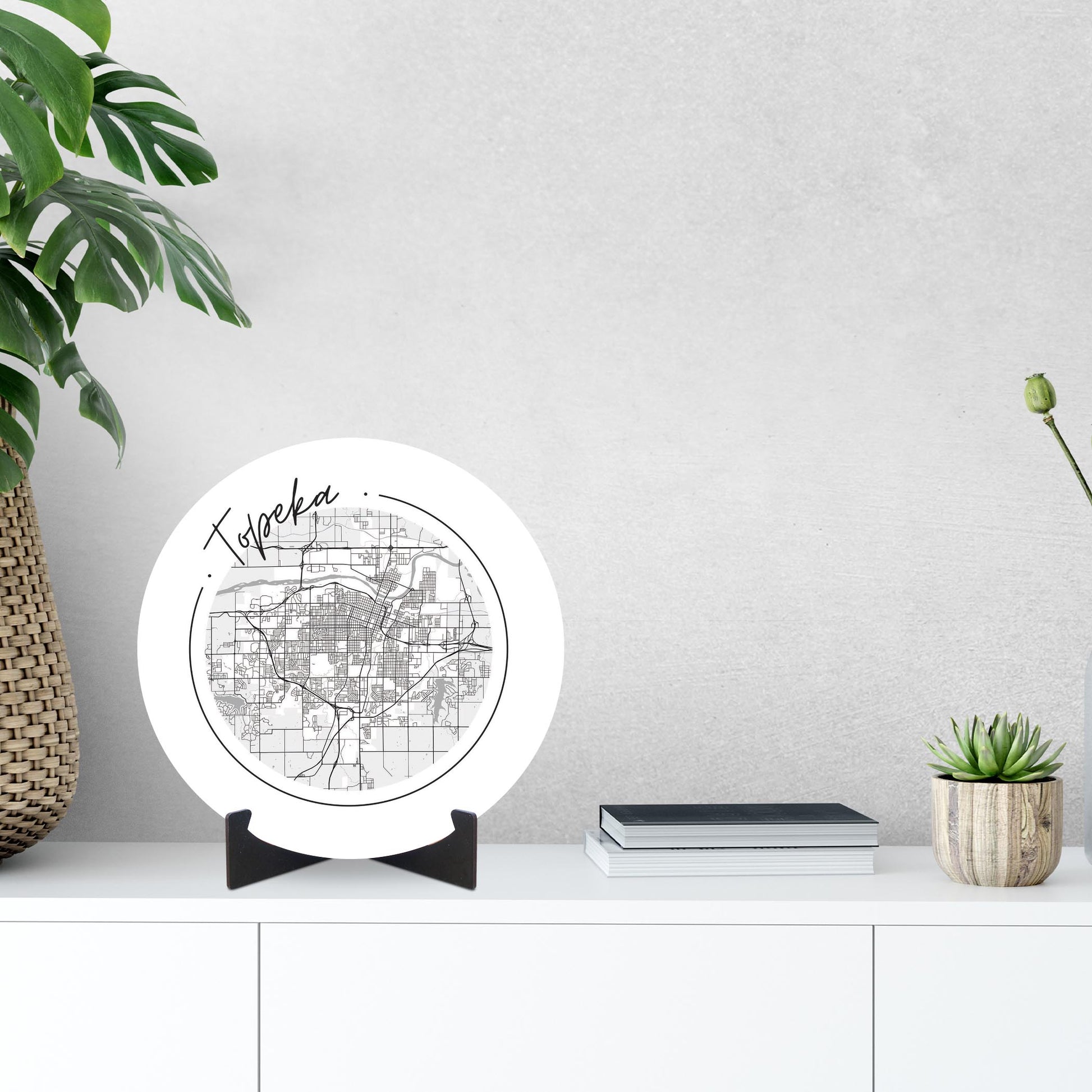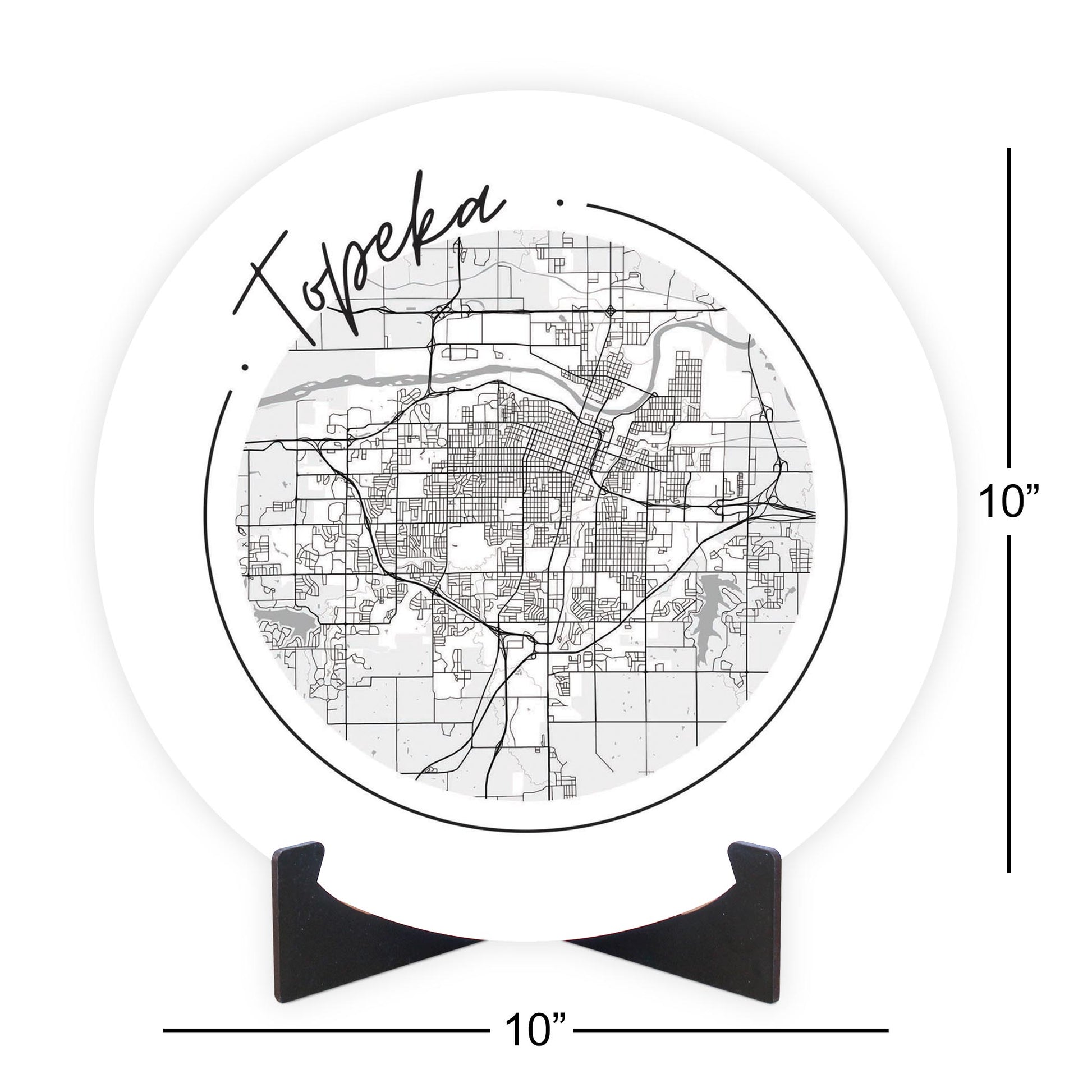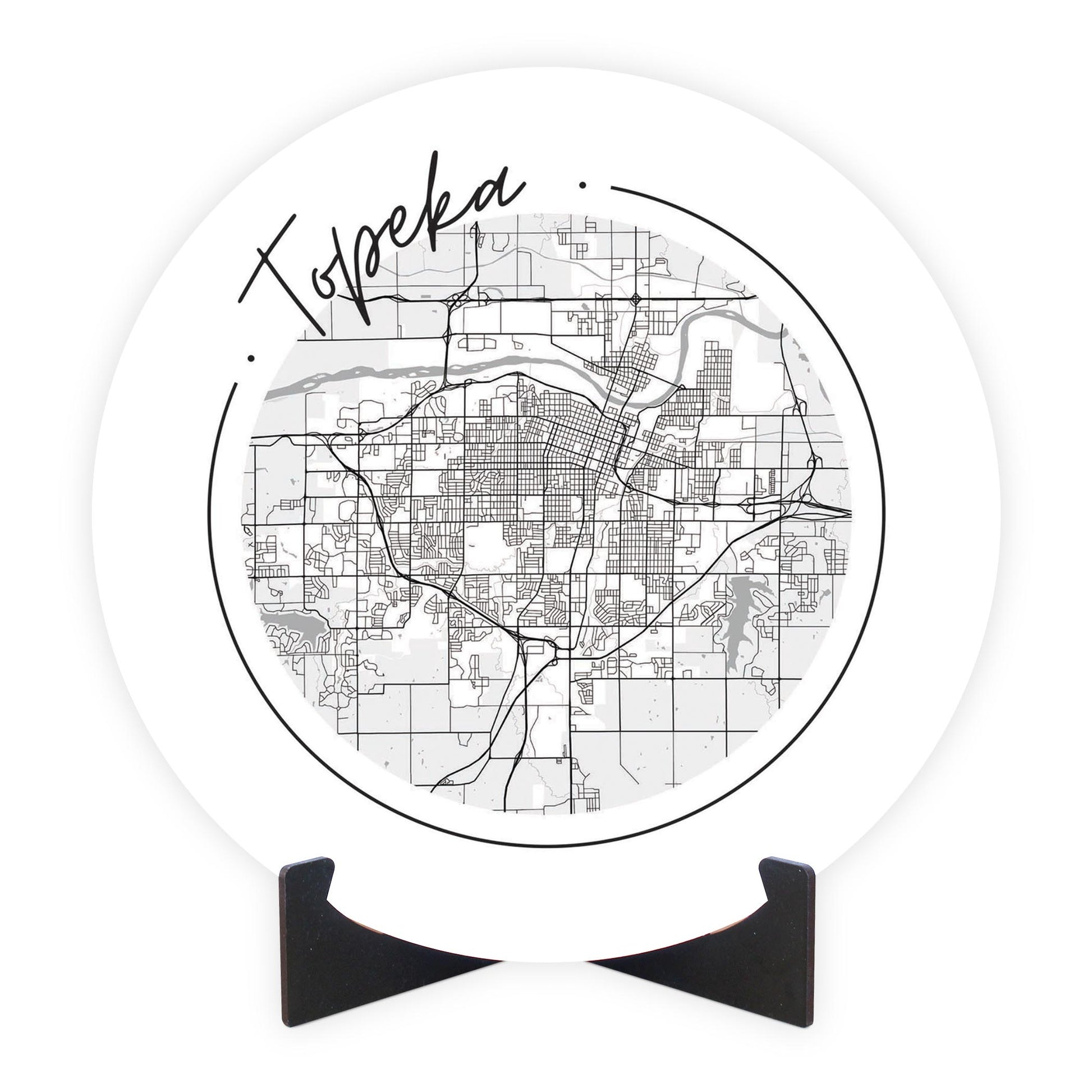 Minimalist B&W Kansas Topeka Circle Map | Wood Sign | Eaches | Min 1
