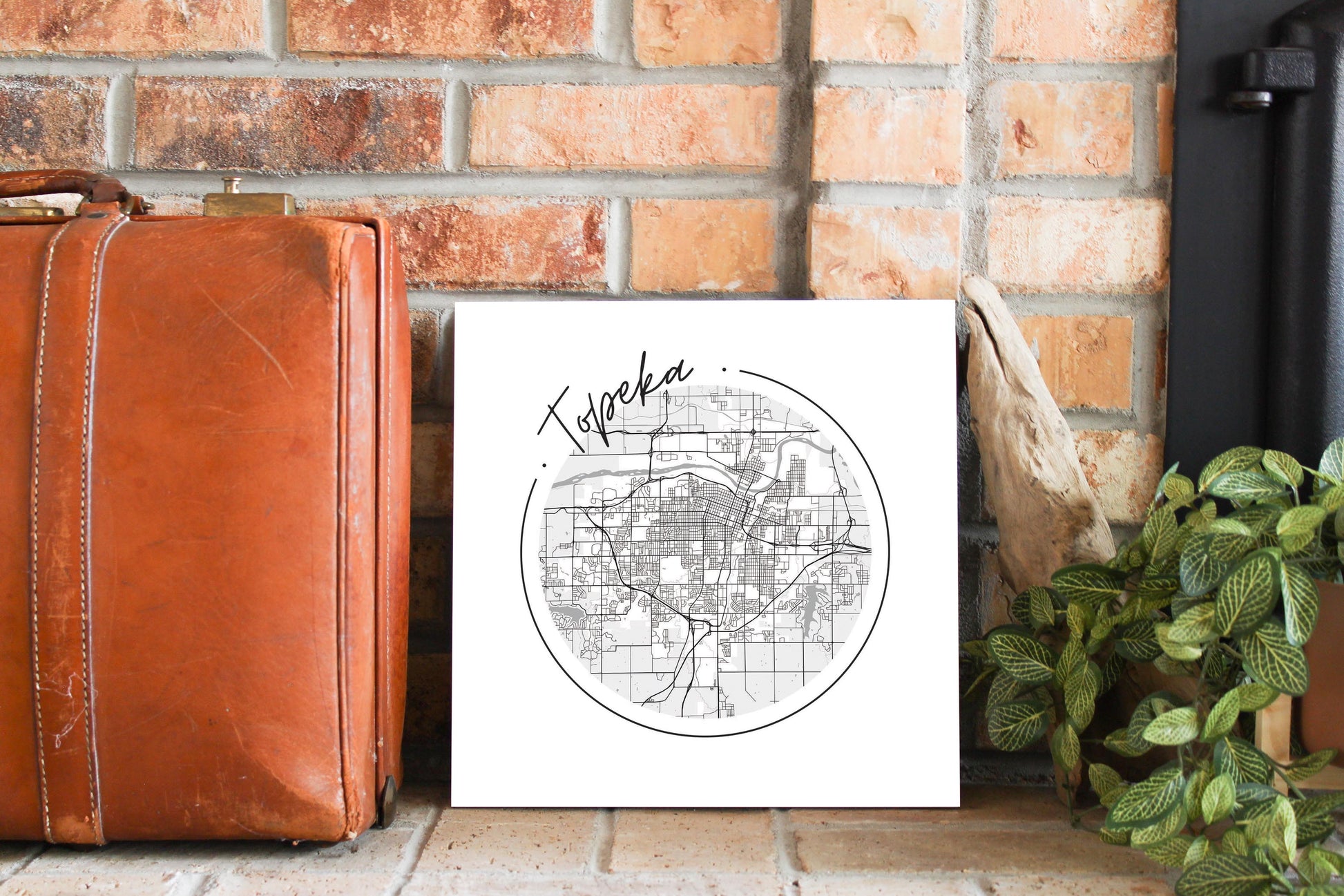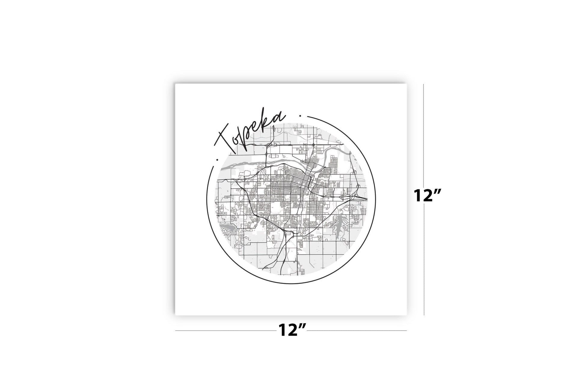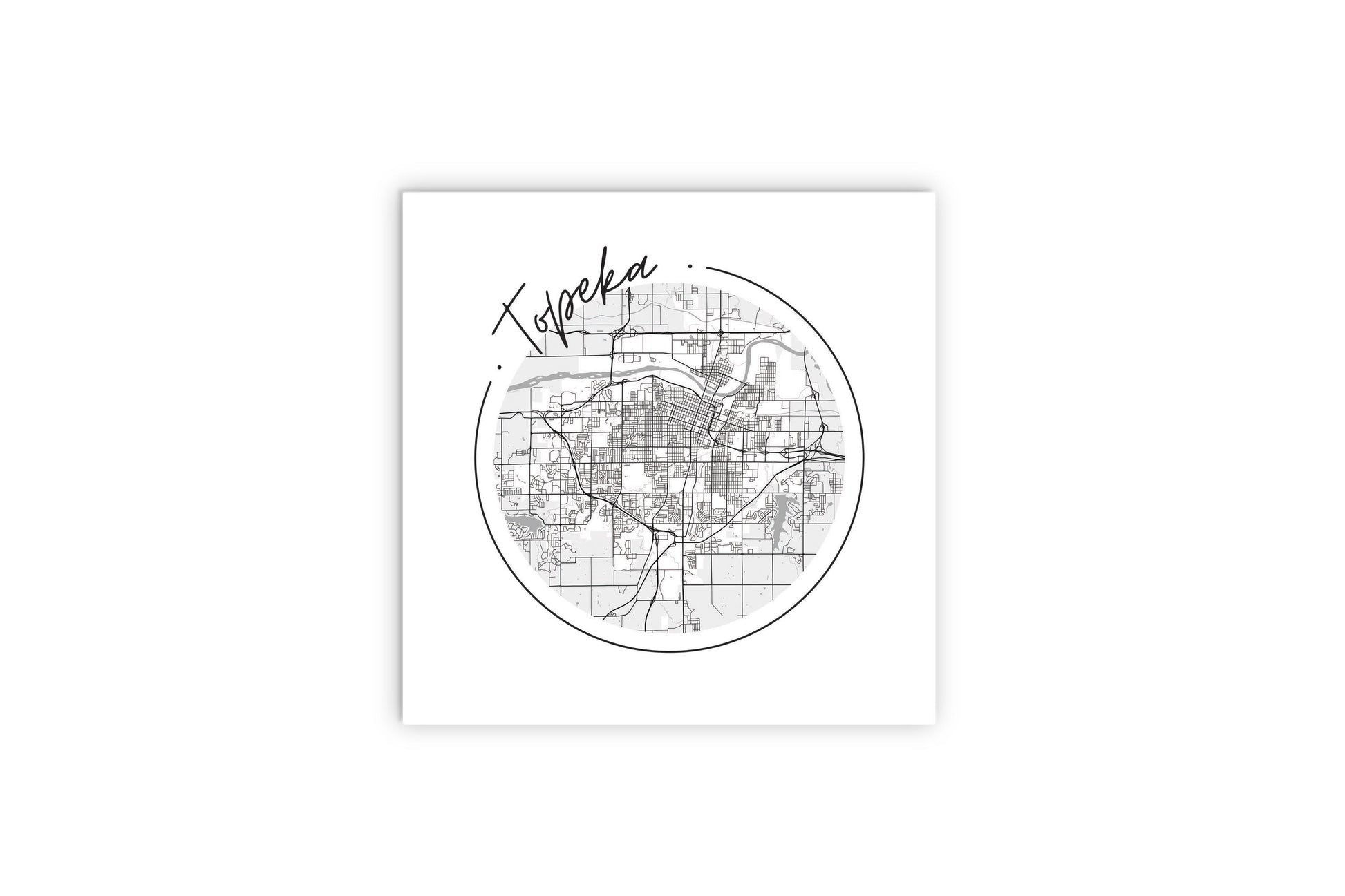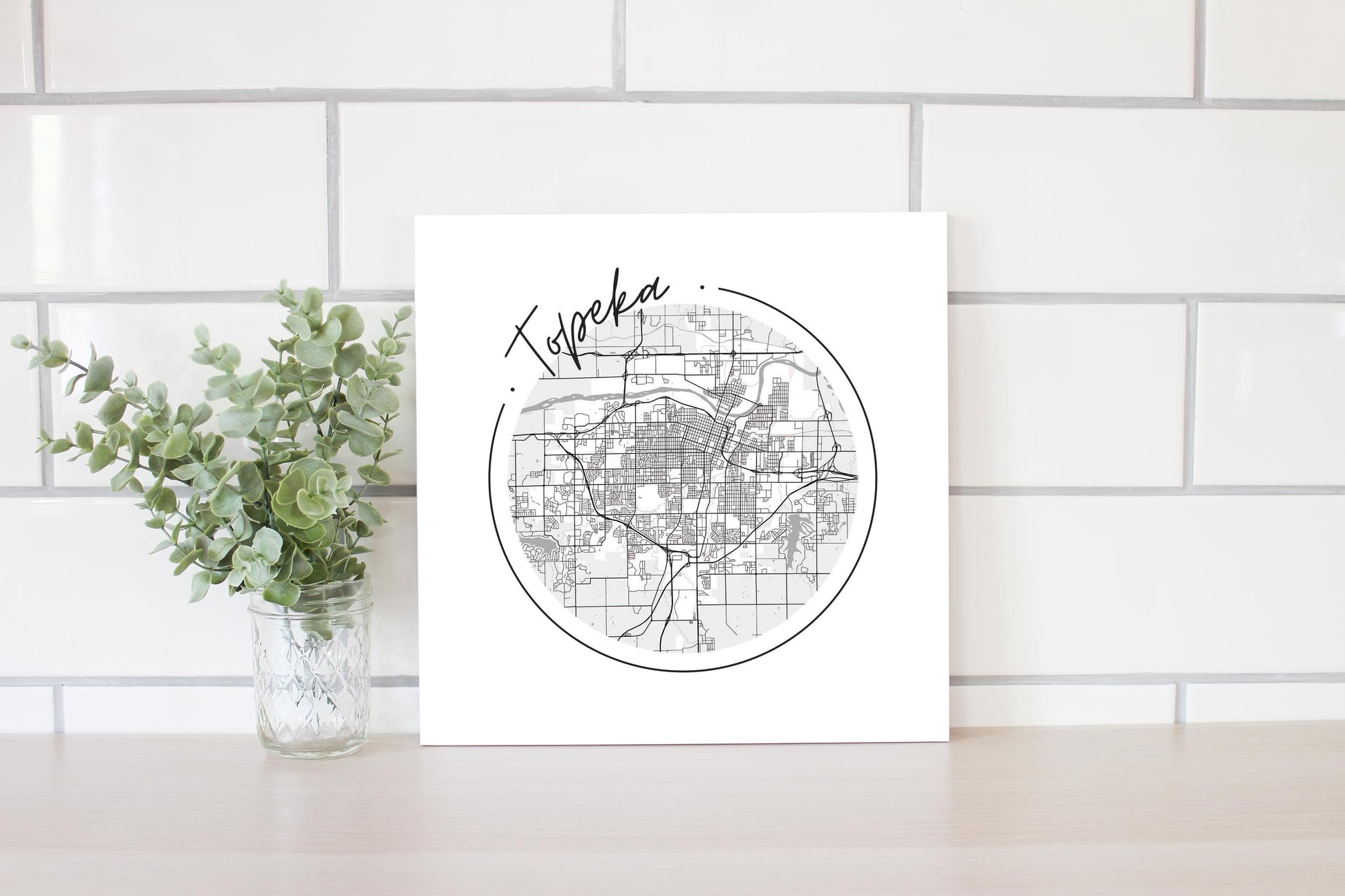Minimalist B&W Kansas Topeka Circle Map | Wood Sign | Eaches | Min 2
