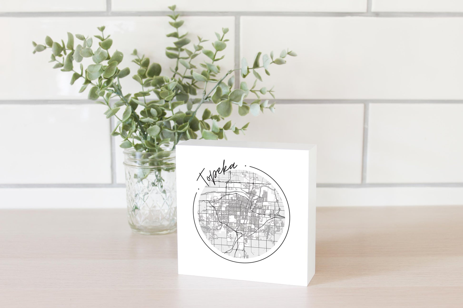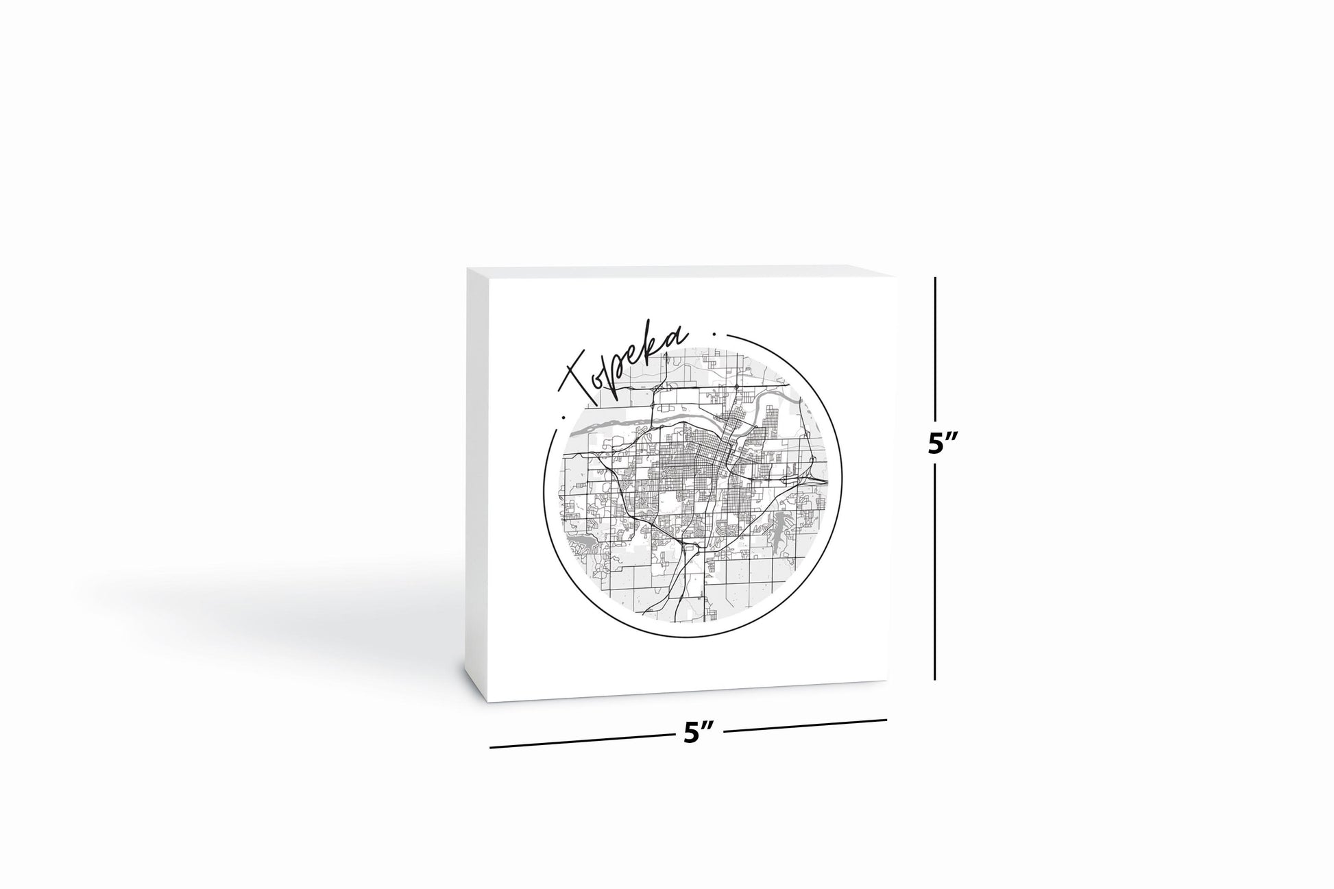 Minimalist B&W Kansas Topeka Circle Map | Wood Block | Eaches | Min 4