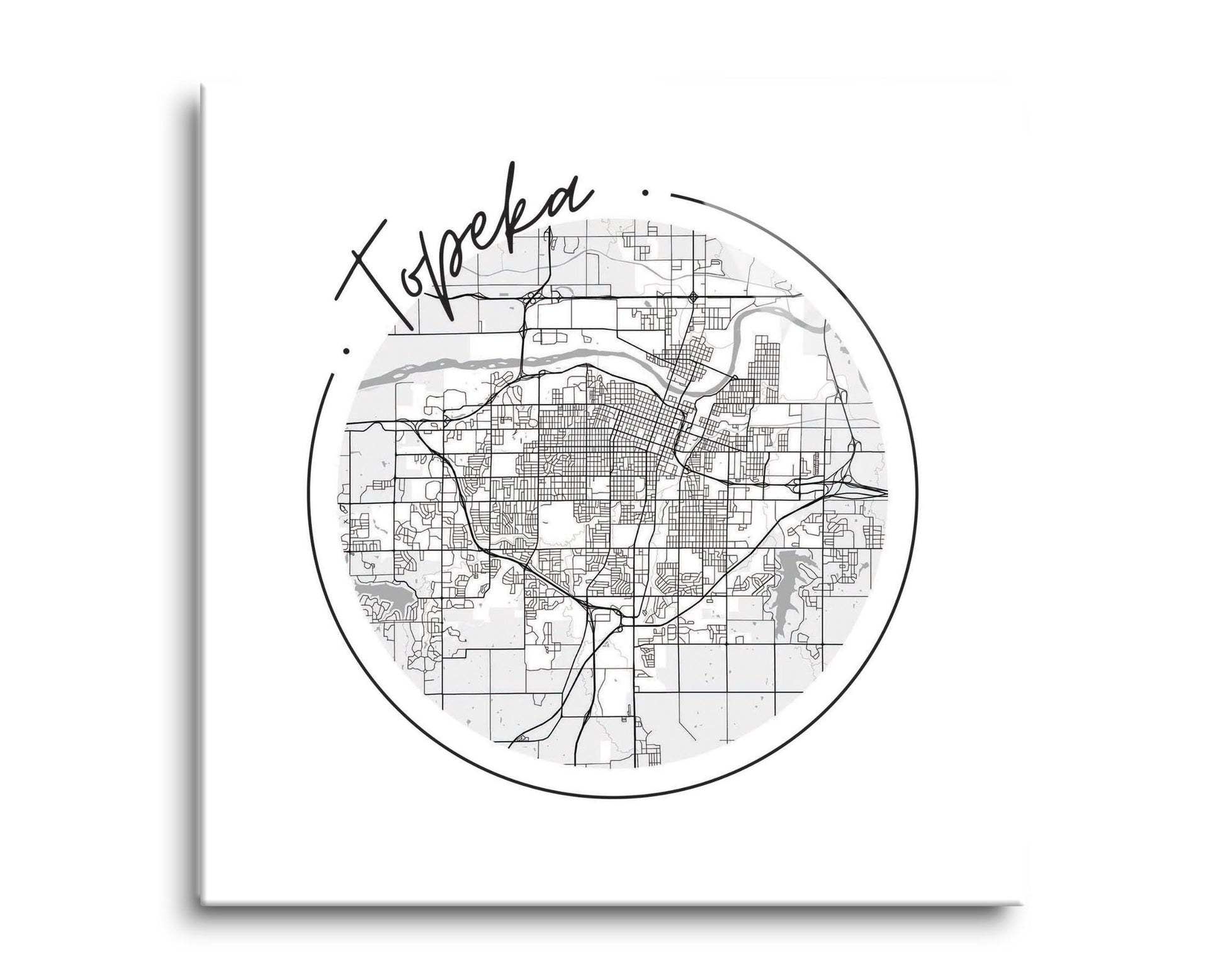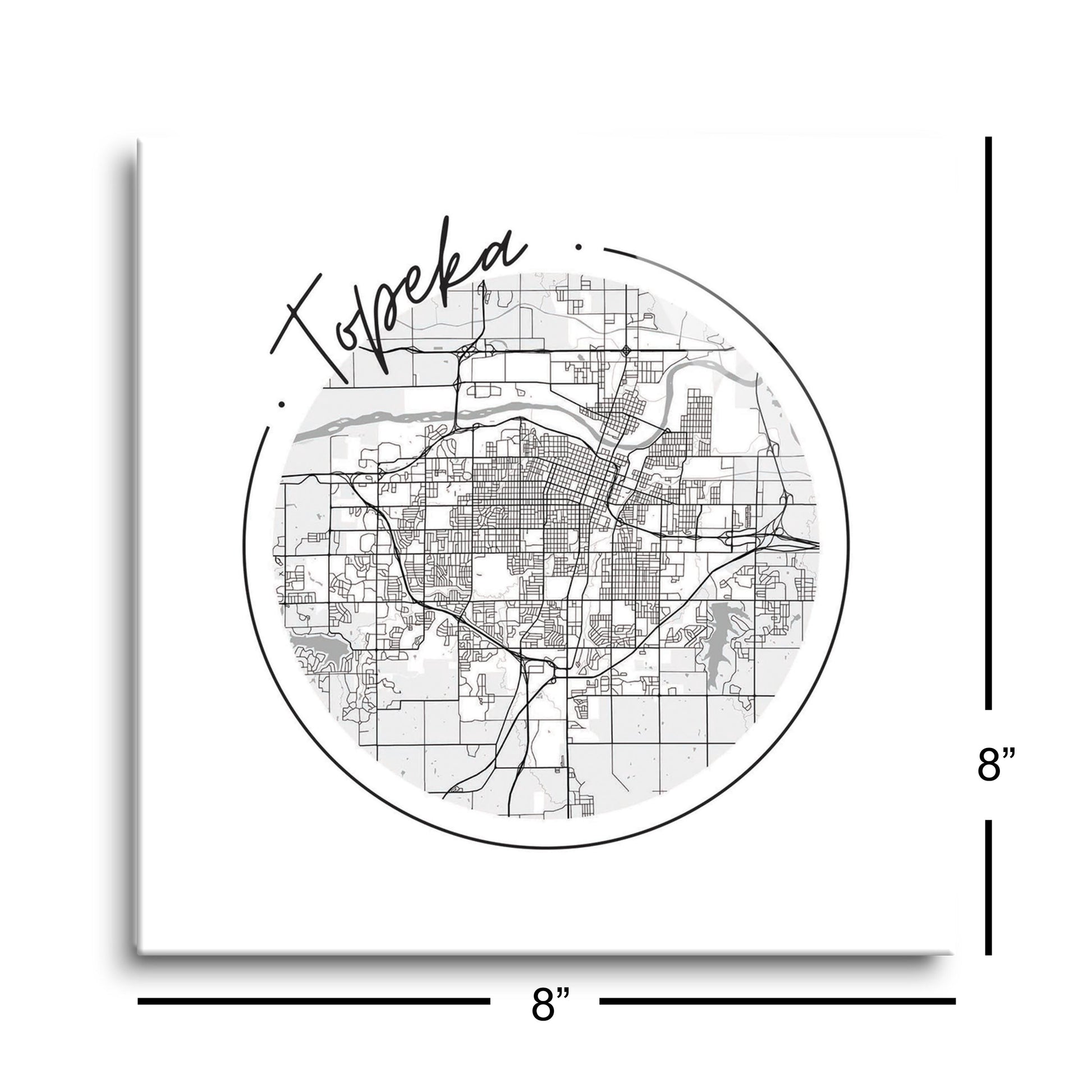 Minimalist B&W Kansas Topeka Circle Map | Hi-Def Glass Art | Eaches | Min 2