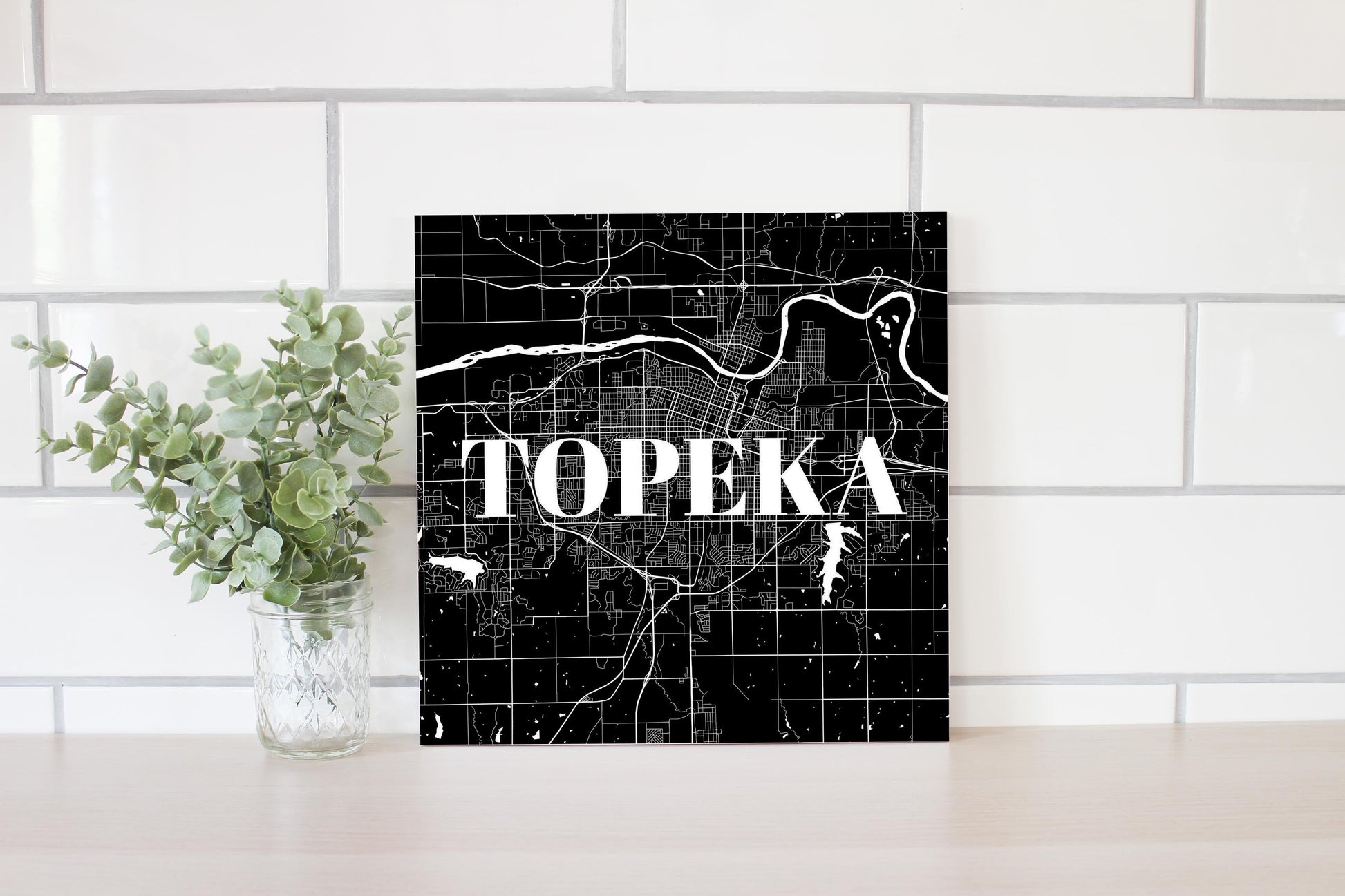 Minimalist B&W Kansas Topeka Map | Wood Sign | Eaches | Min 2