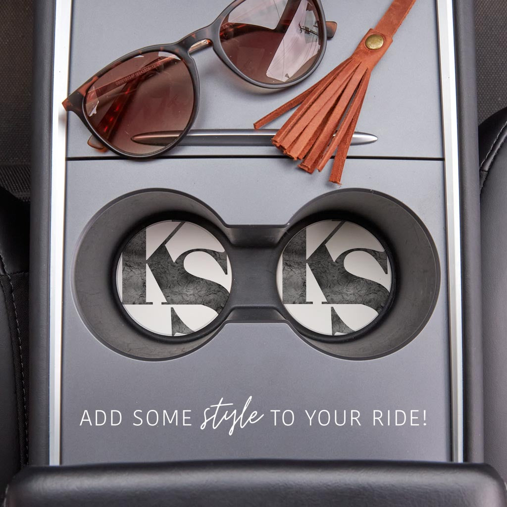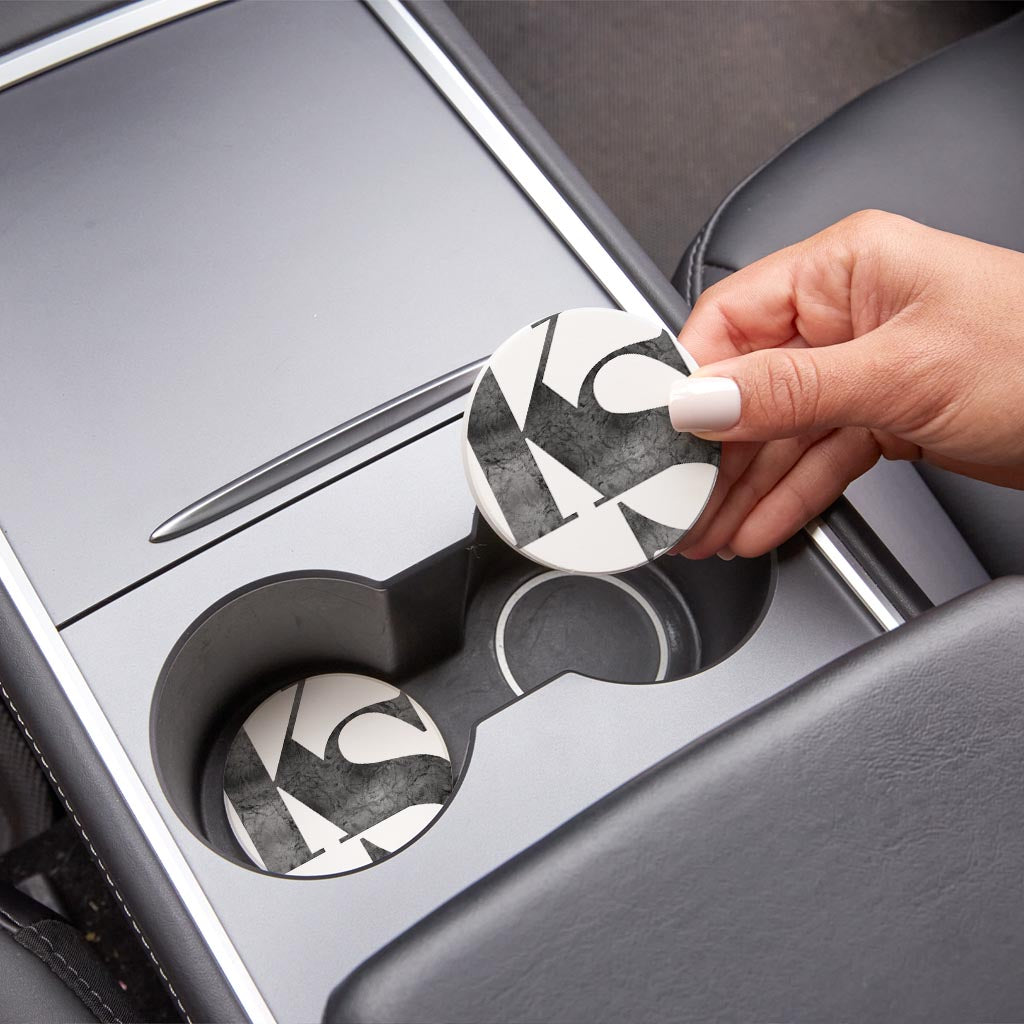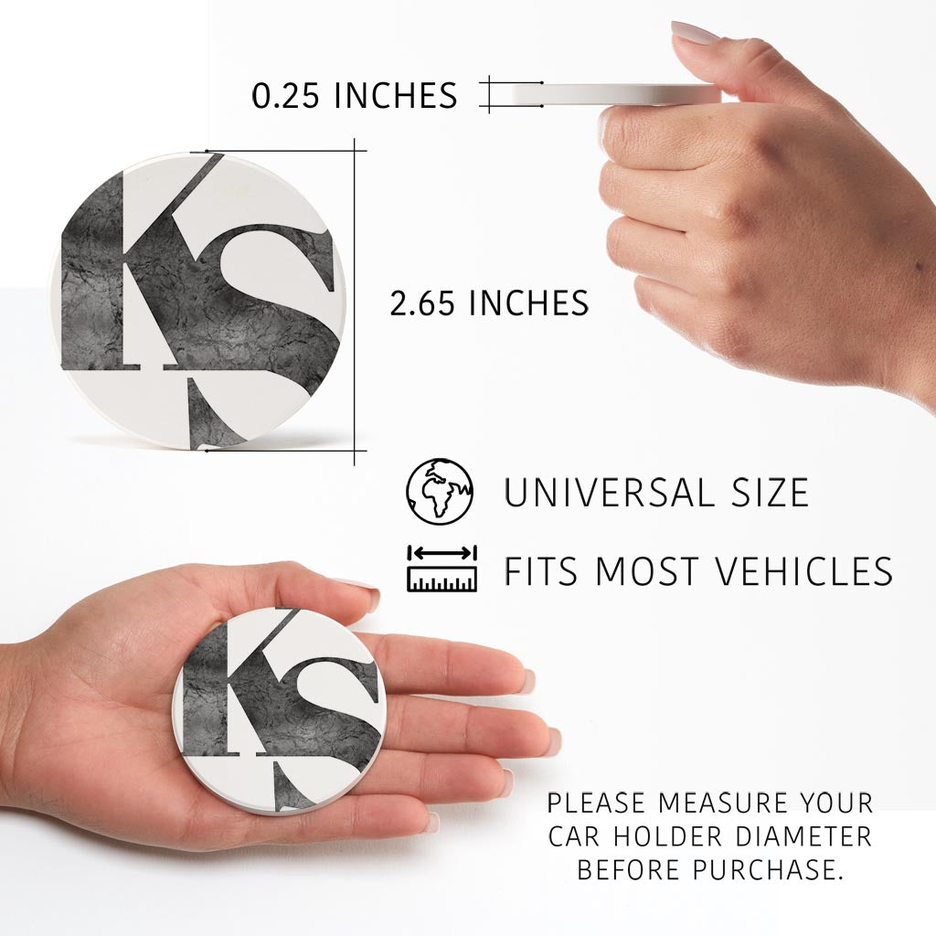 Minimalist B&W Kansas White Initials| Absorbent Car Coasters | Set of 2 | Min 4