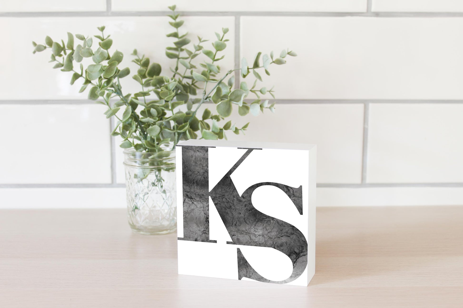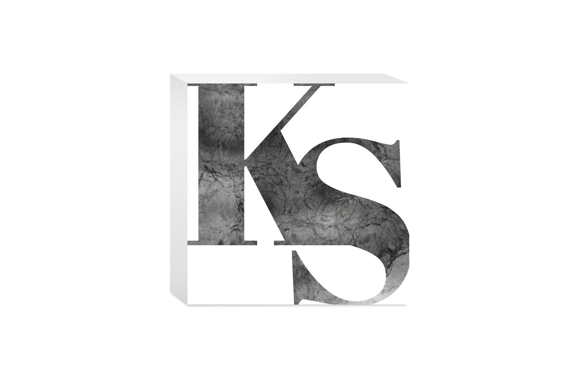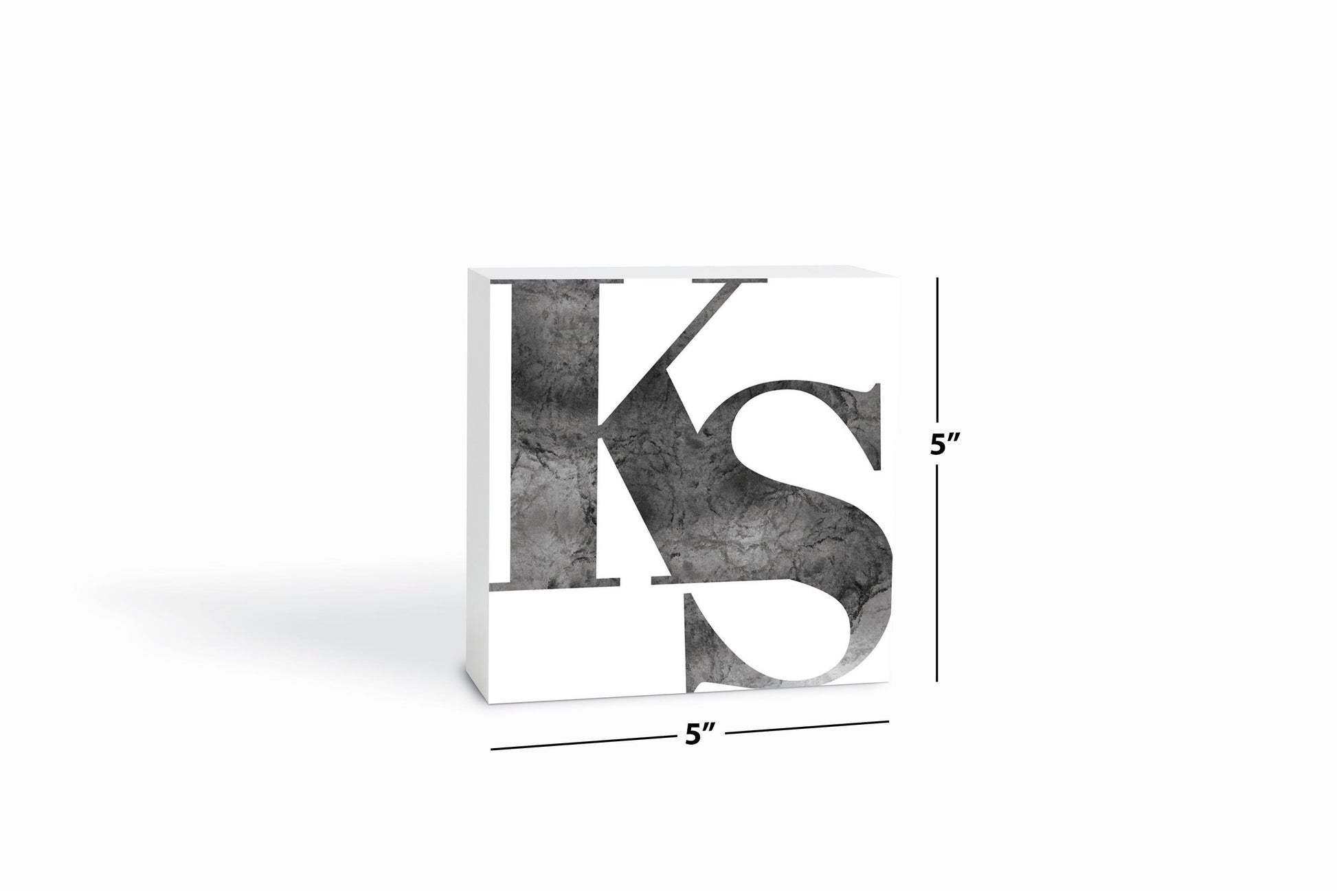 Minimalist B&W Kansas White Initials | Wood Block | Eaches | Min 4