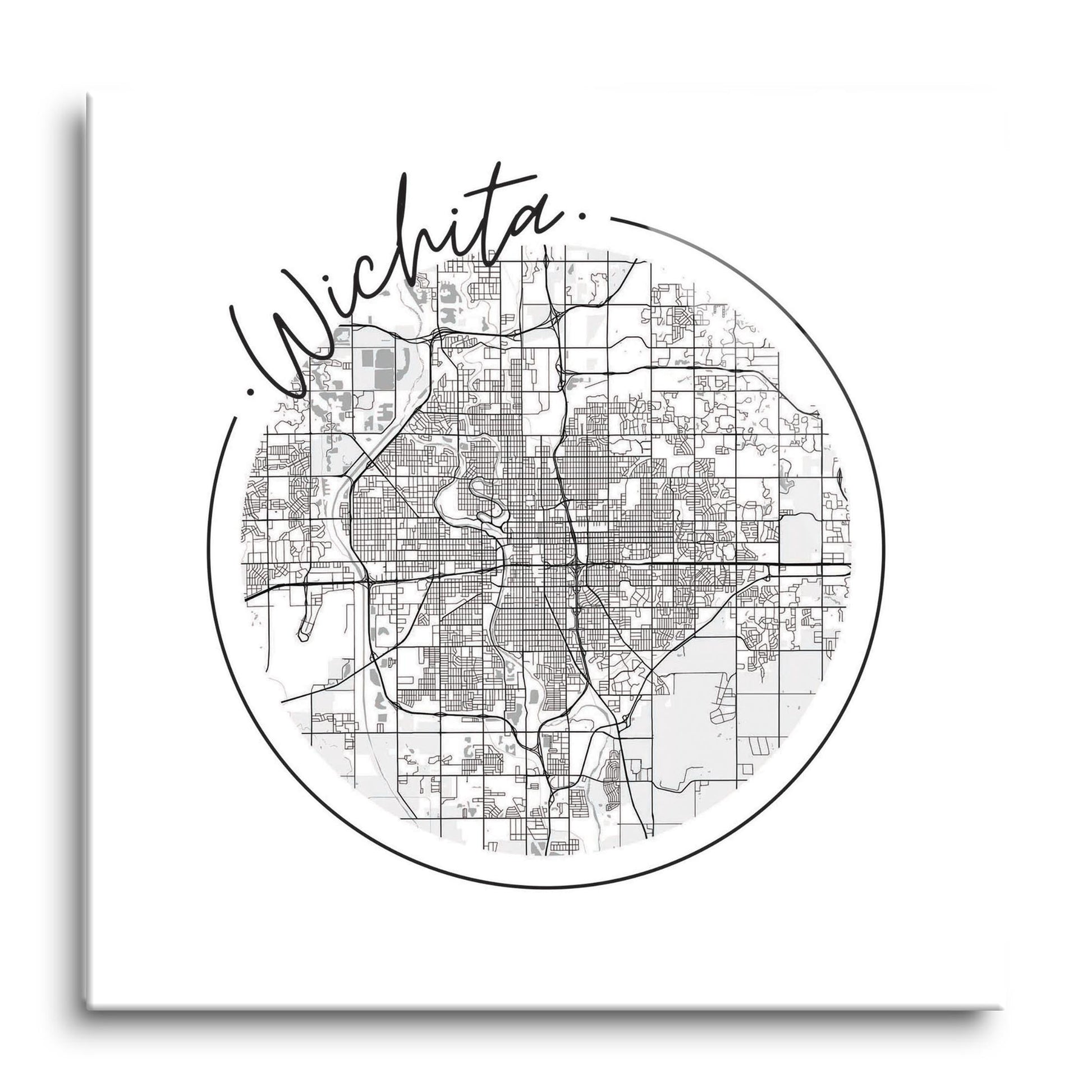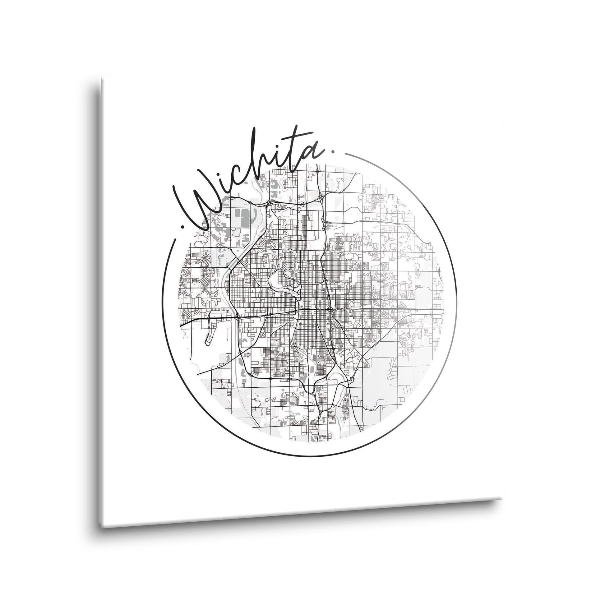 Minimalist B&W Kansas Wichita Circle Map | Hi-Def Glass Art | Eaches | Min 1