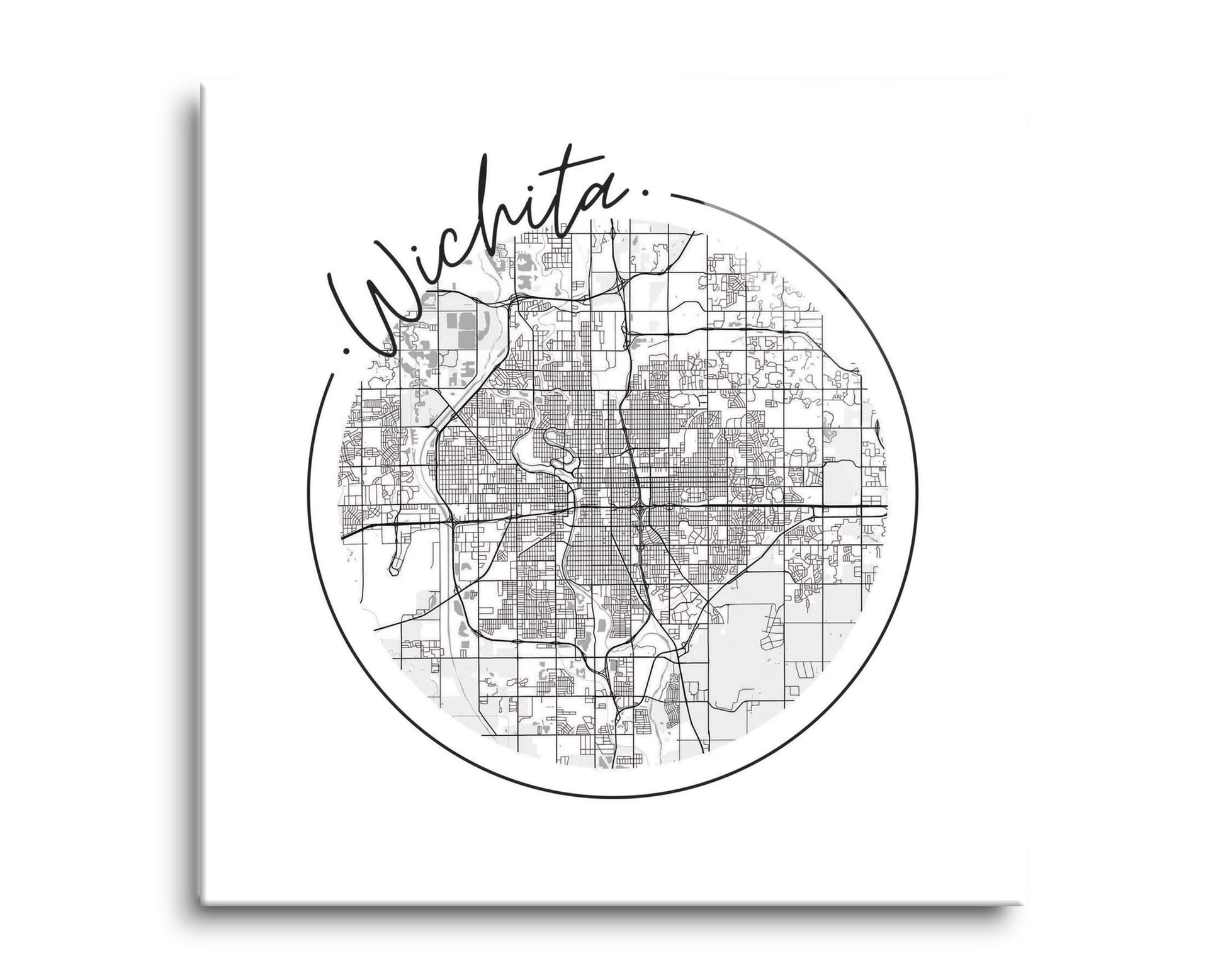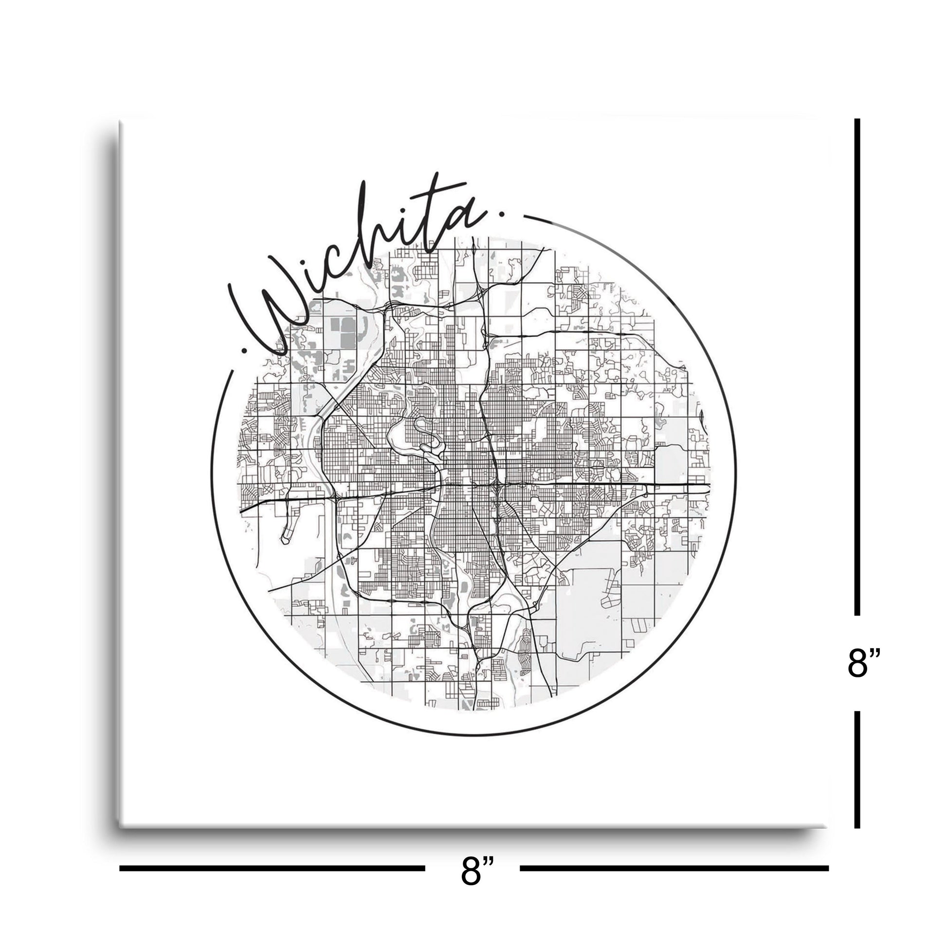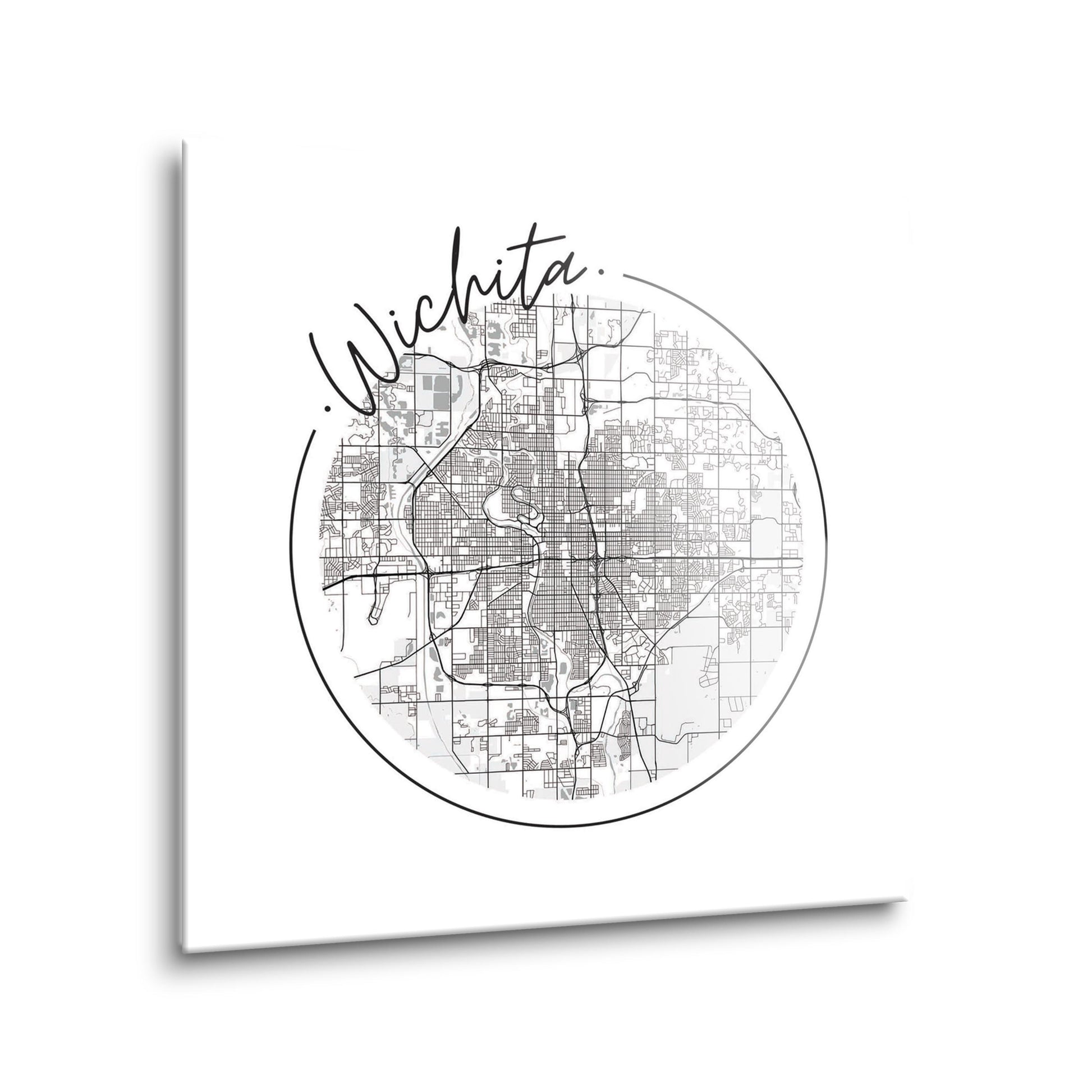 Minimalist B&W Kansas Wichita Circle Map | Hi-Def Glass Art | Eaches | Min 2