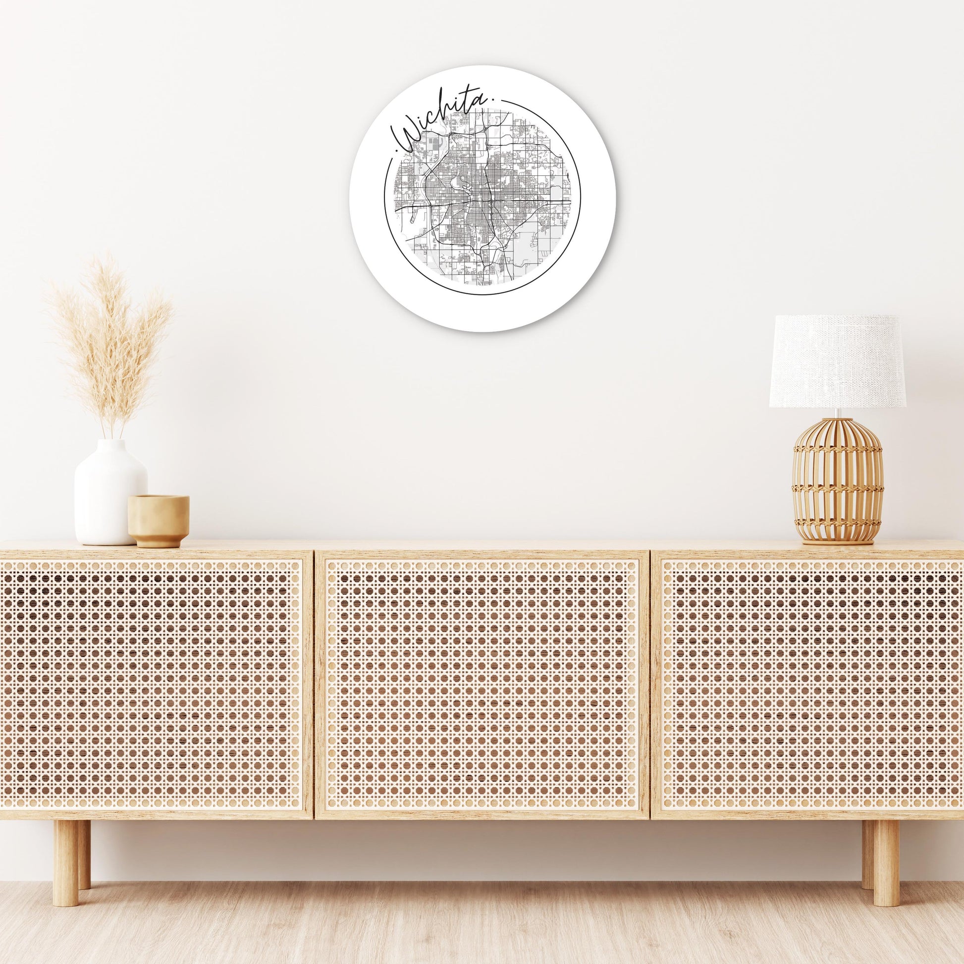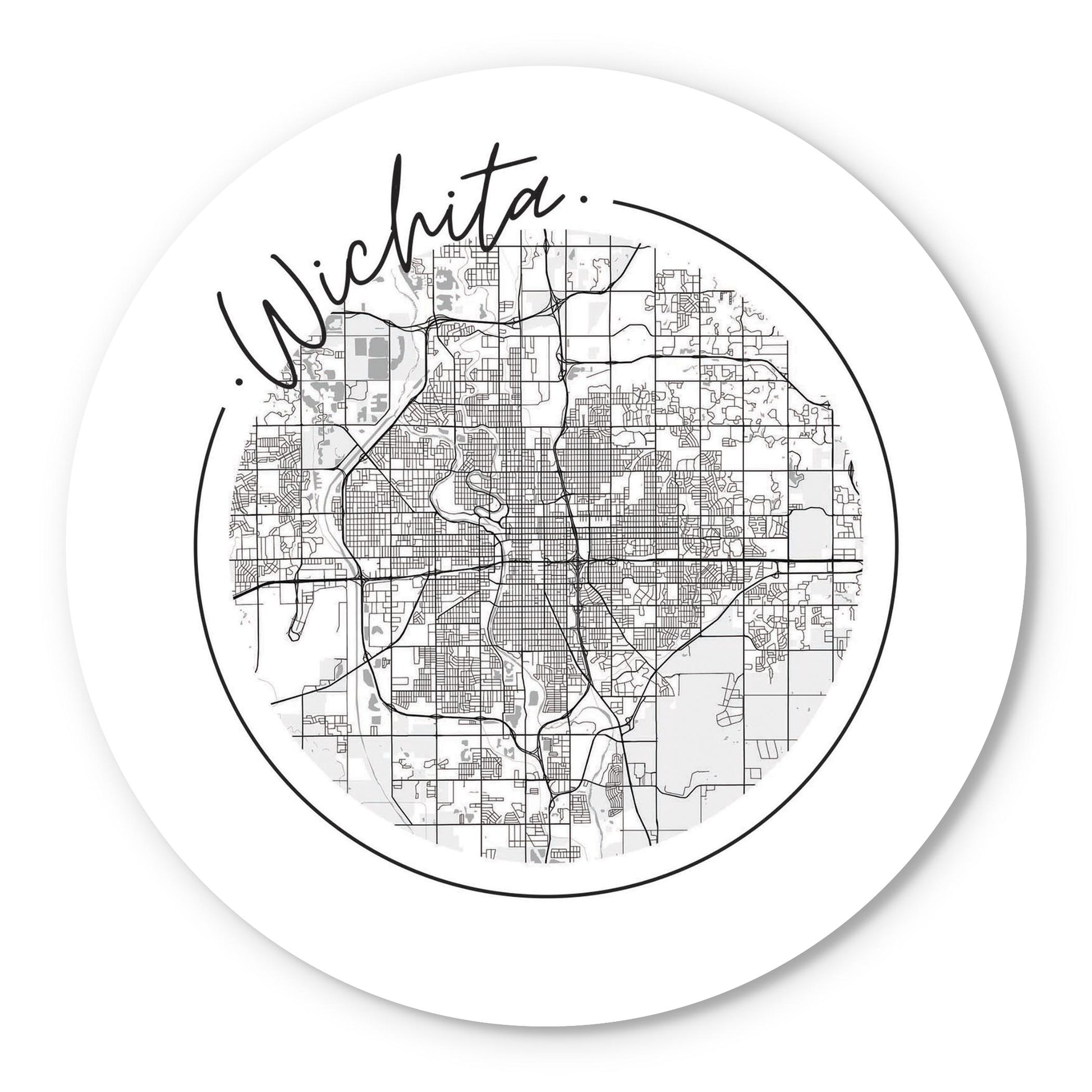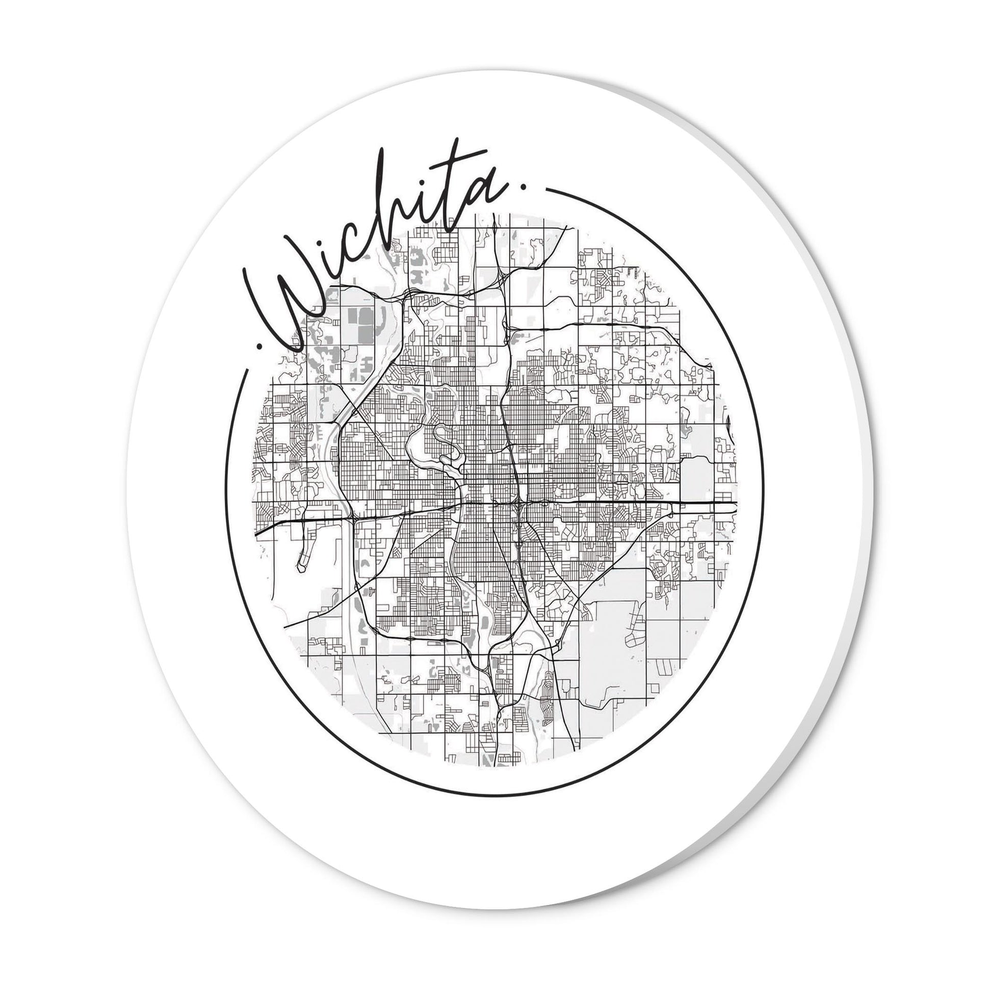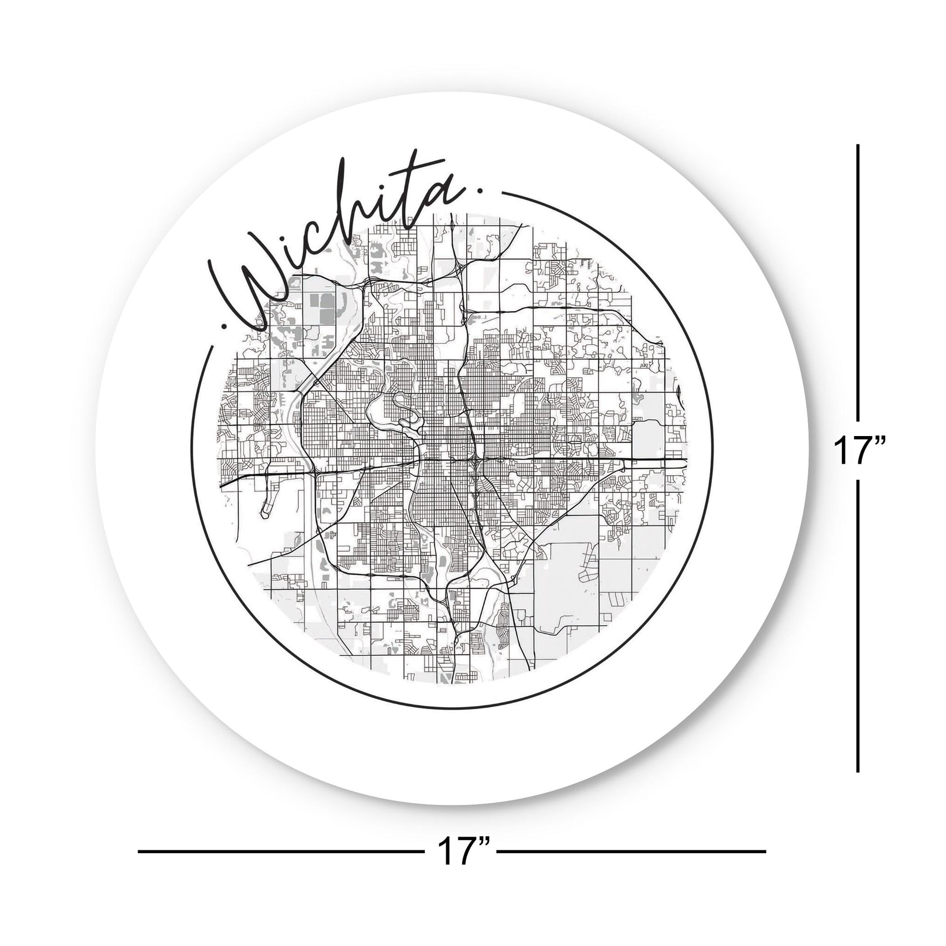 Minimalist B&W Kansas Wichita Circle Map | Wood Sign | Eaches | Min 1