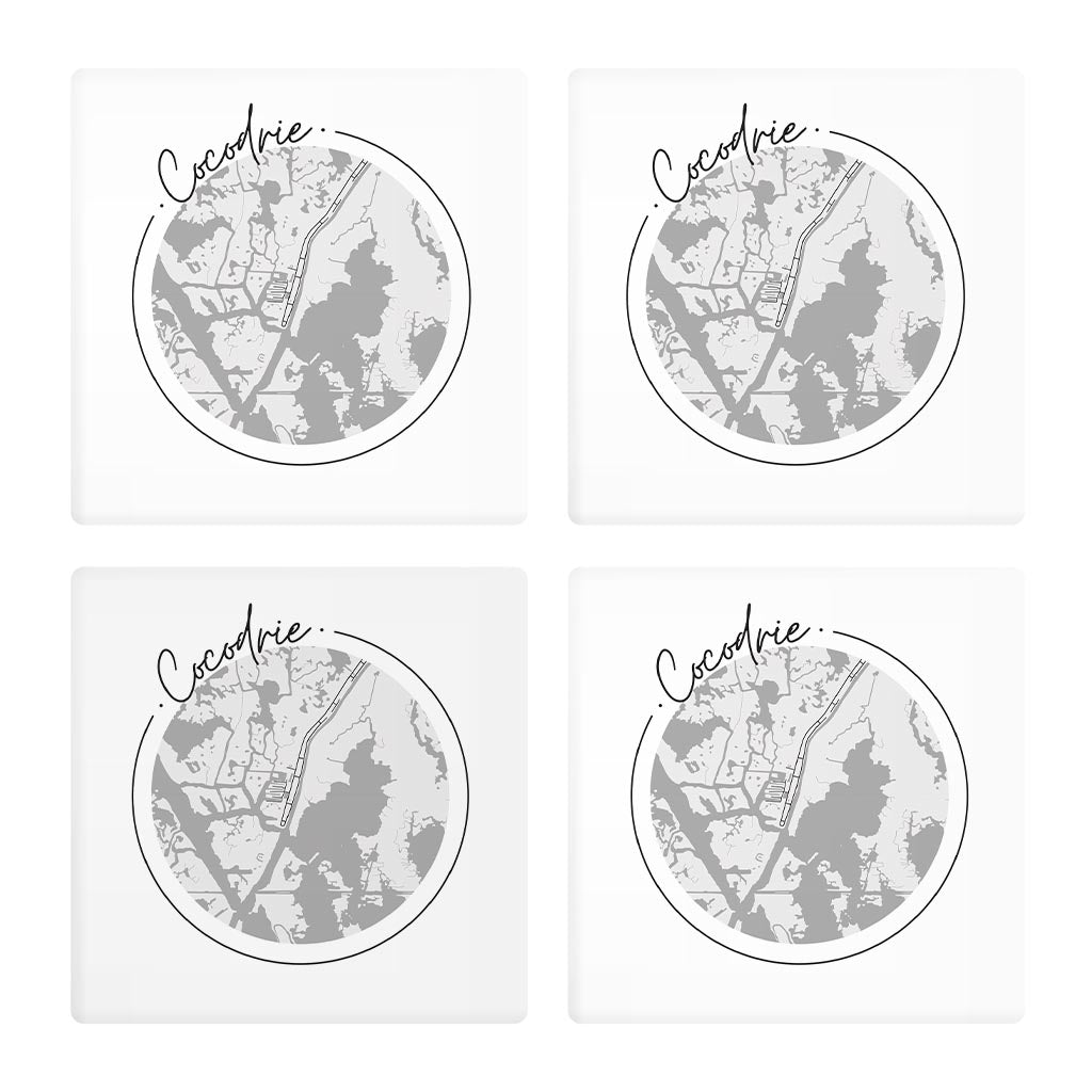 Minimalist B&W Louisiana Cocodrie Circle Map | Absorbent Coasters | Set of 4 | Min 2