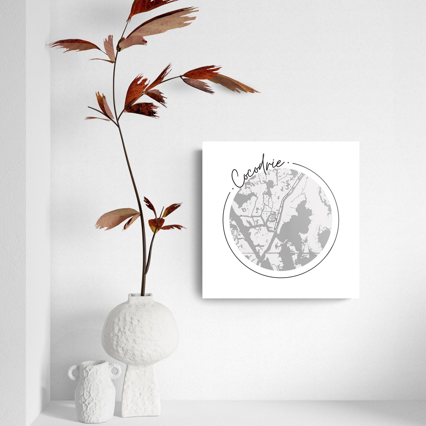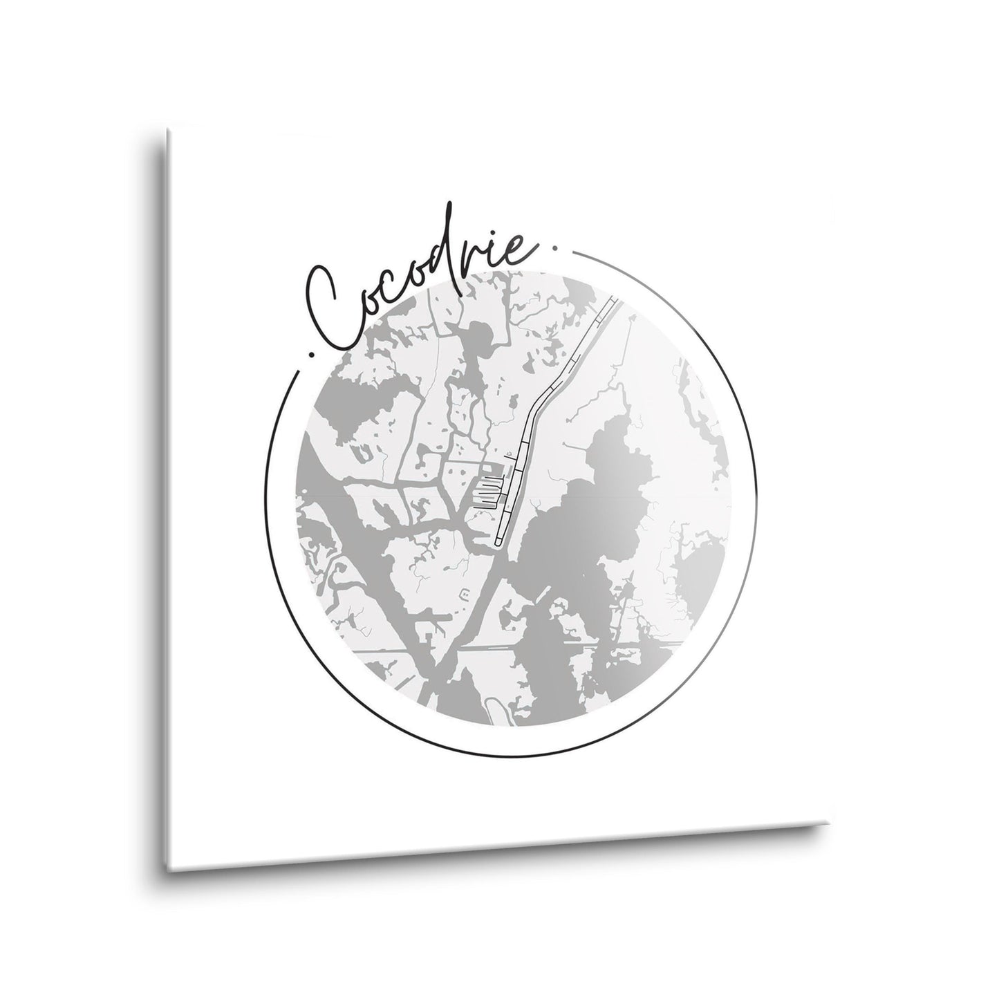 Minimalist B&W Louisiana Cocodrie Circle Map | Hi-Def Glass Art | Eaches | Min 2