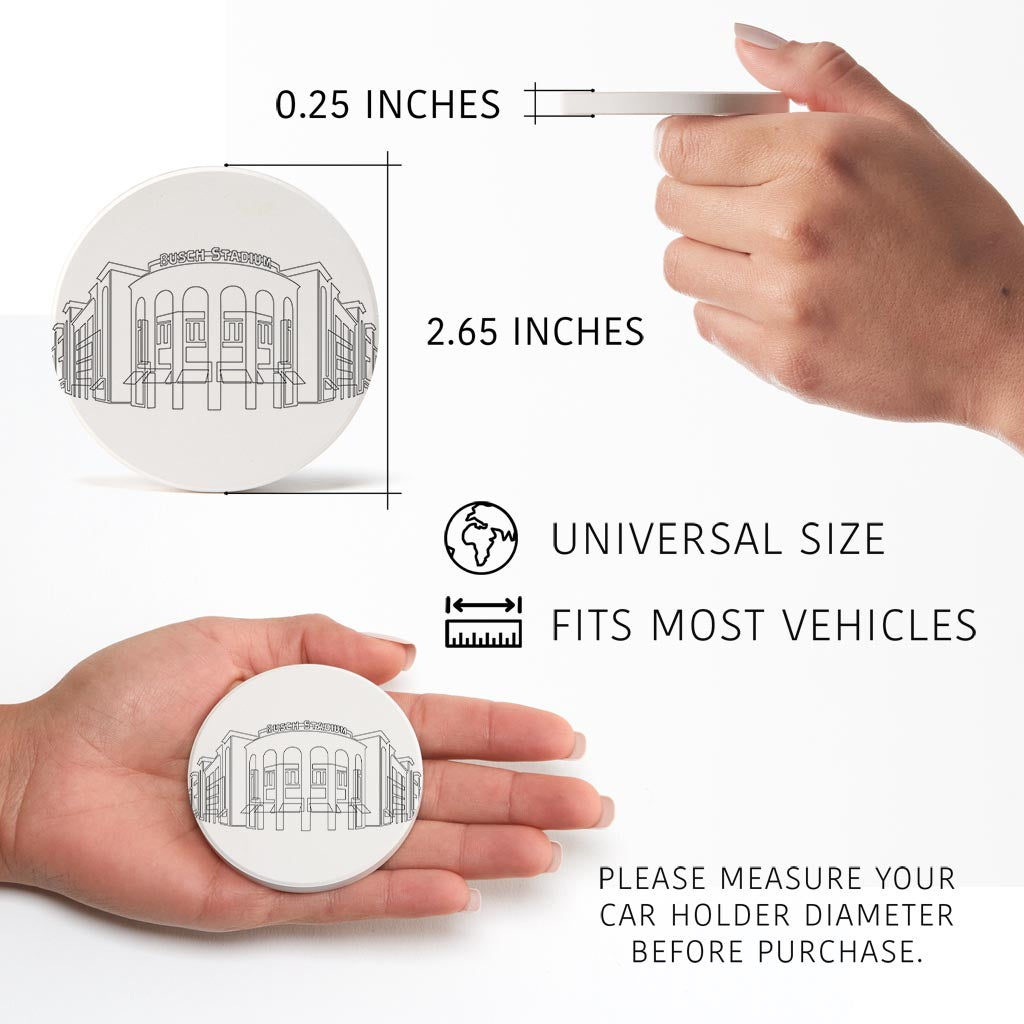 Minimalist B&W Missouri Busch Stadium Line Drawing | Absorbent Car Coasters | Set of 2 | Min 4
