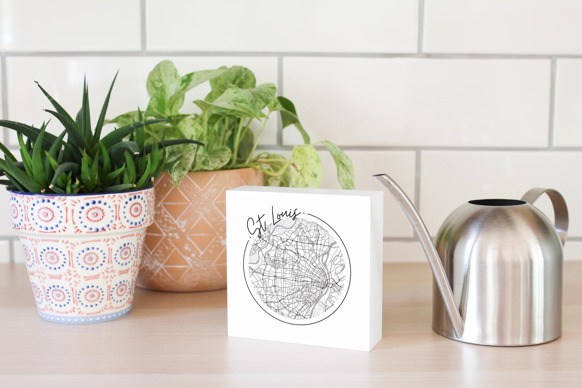 Minimalist B&W Missouri St Louis Circle Map | Wood Block | Eaches | Min 4
