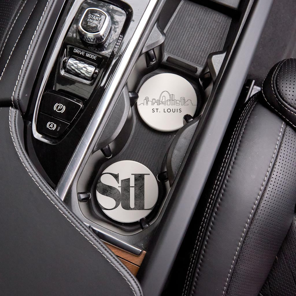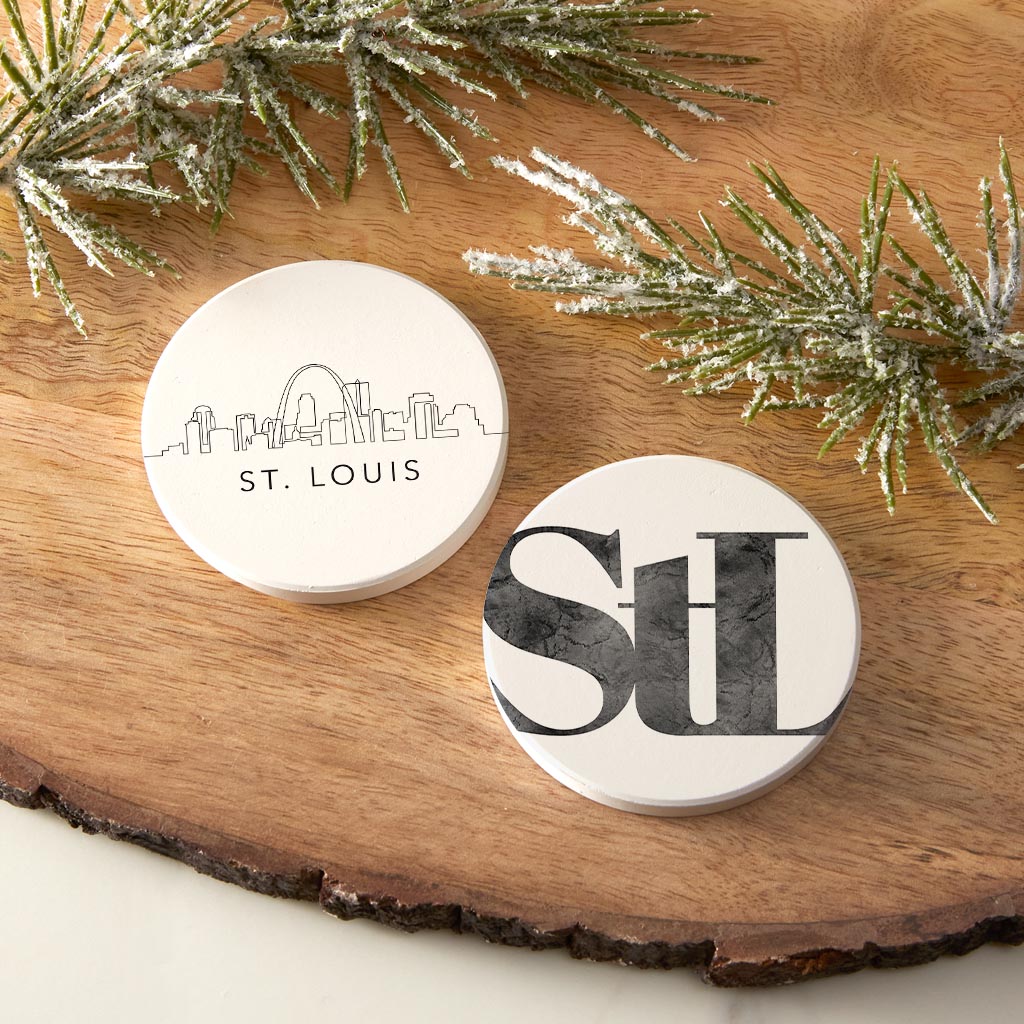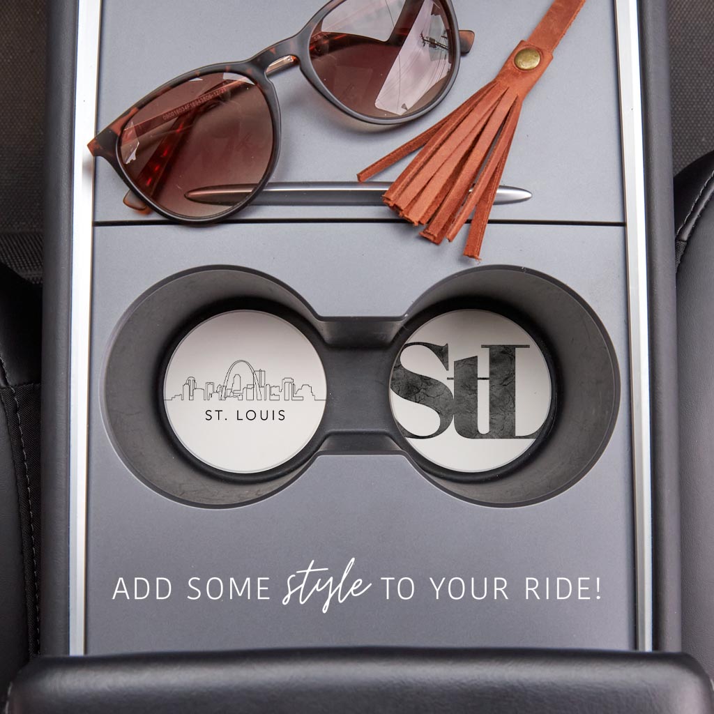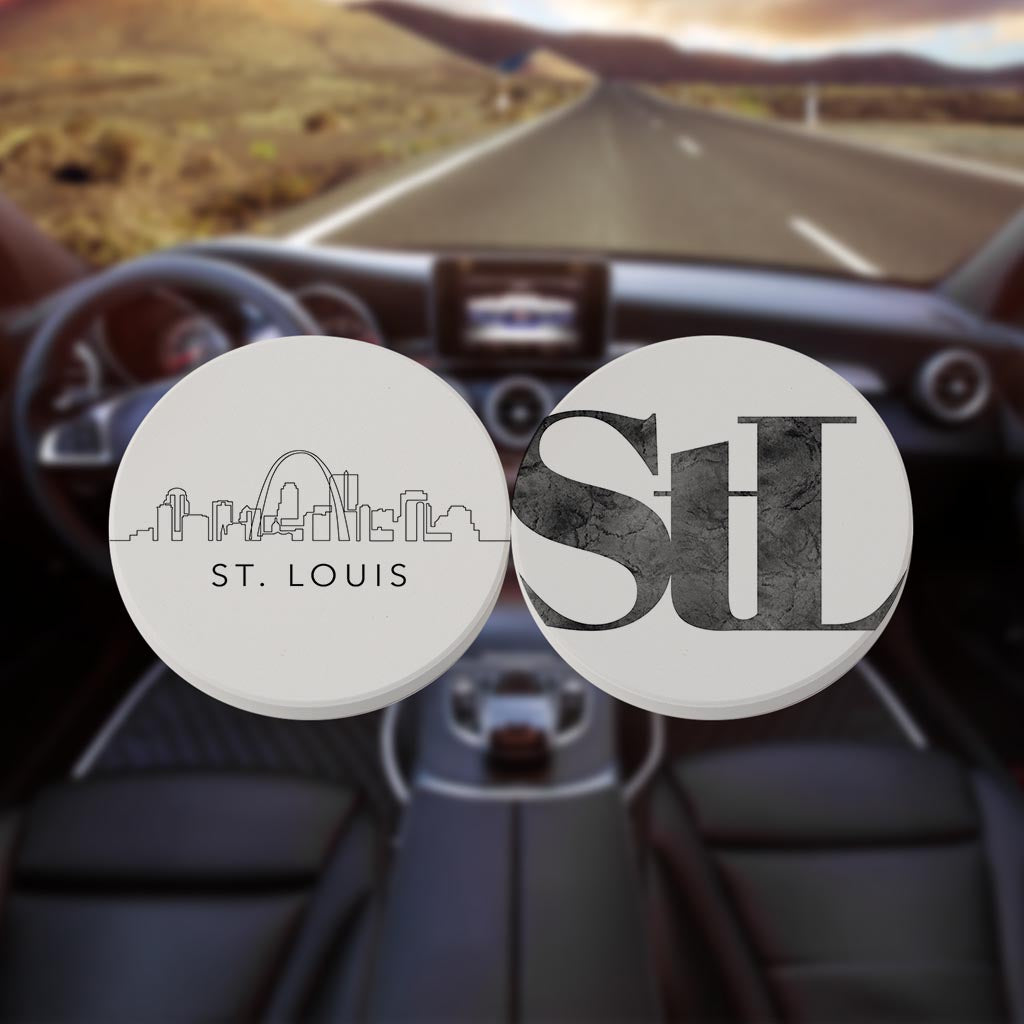 Minimalist B&W Missouri St Louis Skyline Line Stl| Absorbent Car Coasters | Set of 2 | Min 4