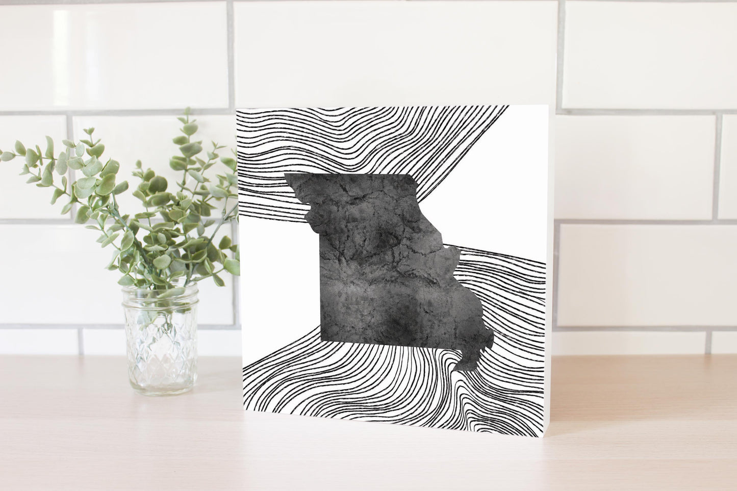 Minimalist B&W Missouri State With Fluid Lines | Wood Block | Eaches | Min 2