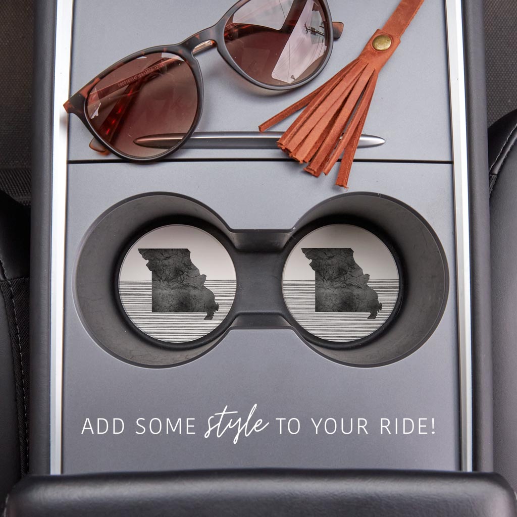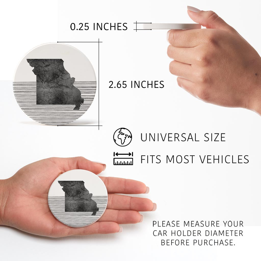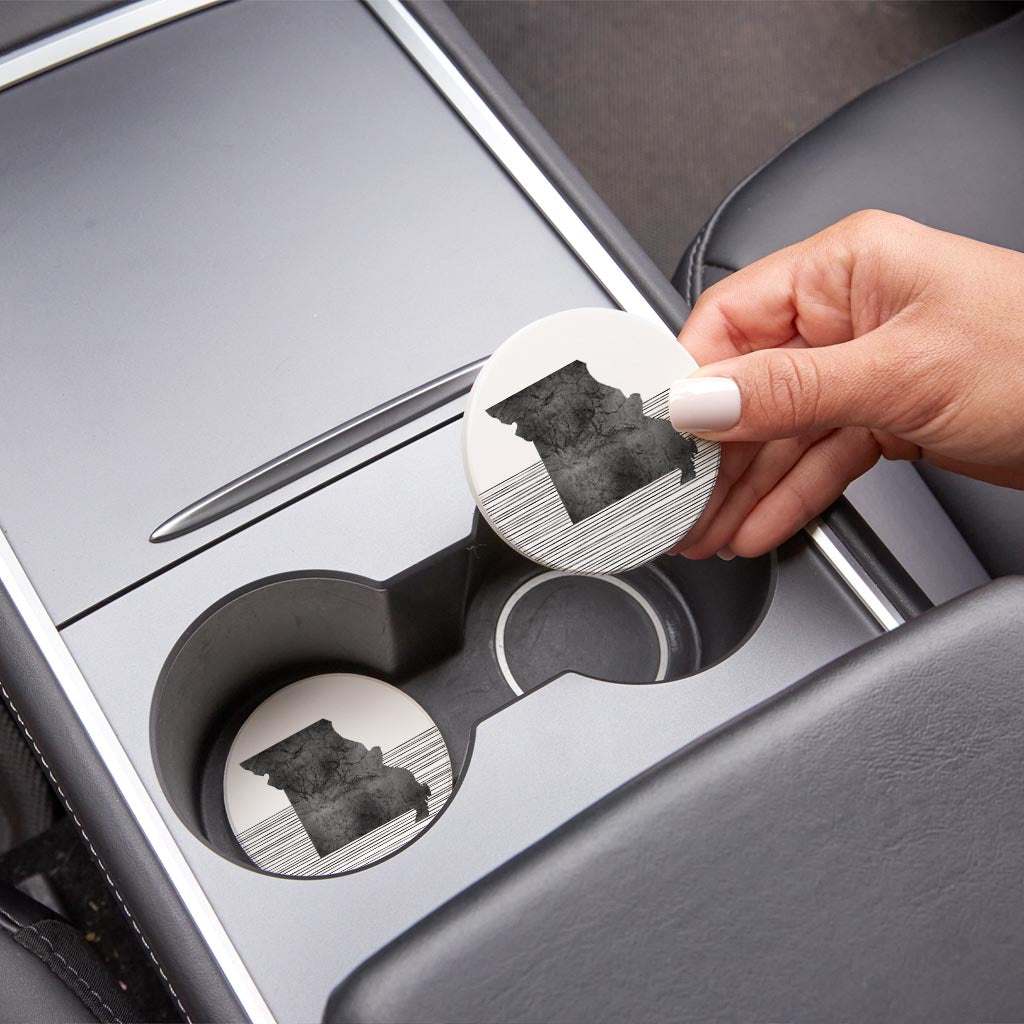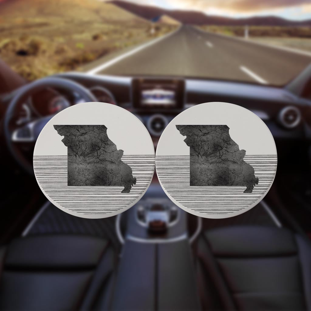 Minimalist B&W Missouri State With Straight Lines | Absorbent Car Coasters | Set of 2 | Min 4