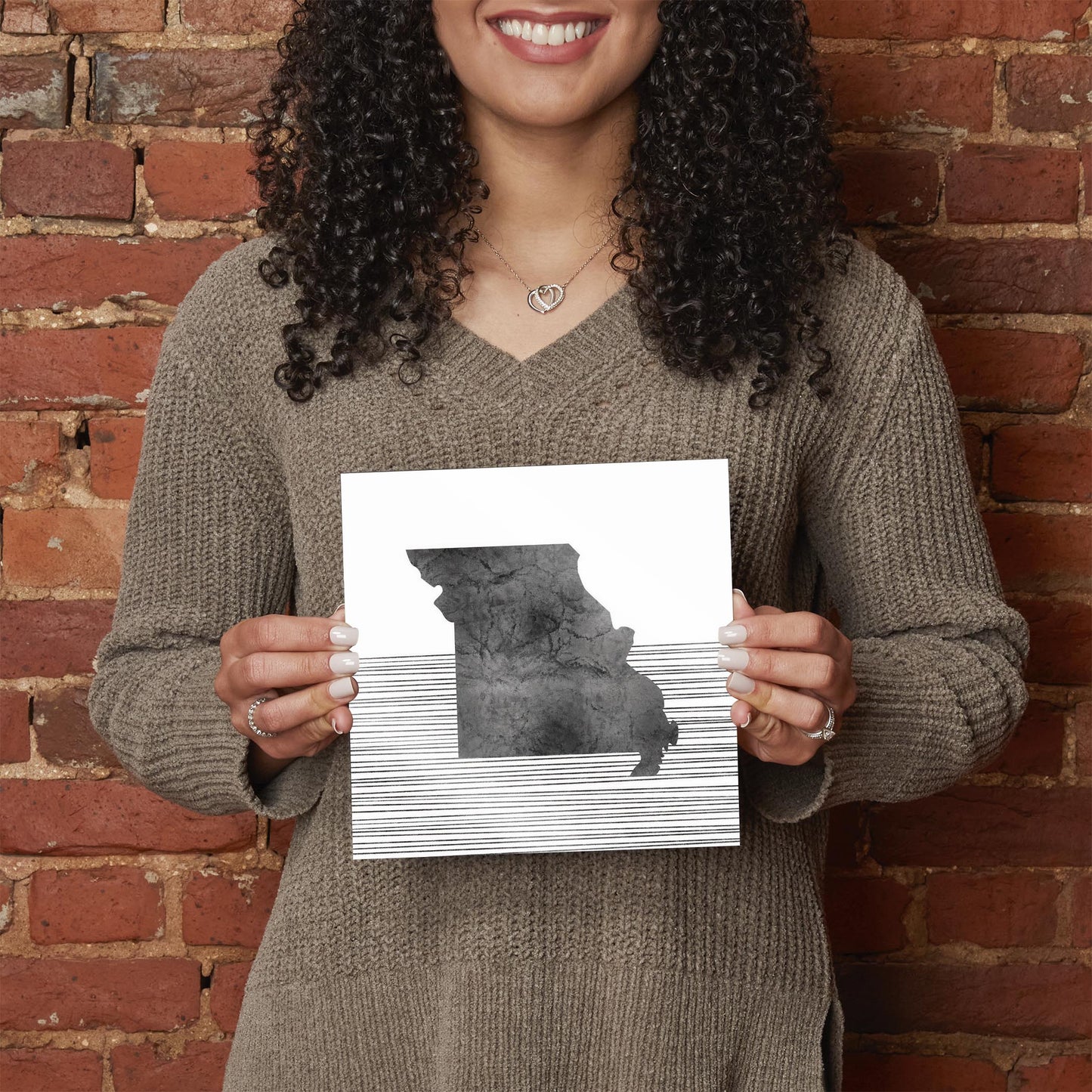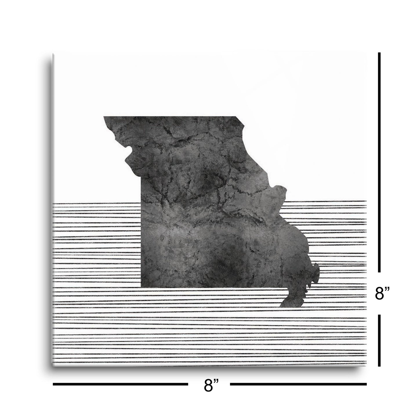 Minimalist B&W Missouri State With Straight Lines | Hi-Def Glass Art | Eaches | Min 2