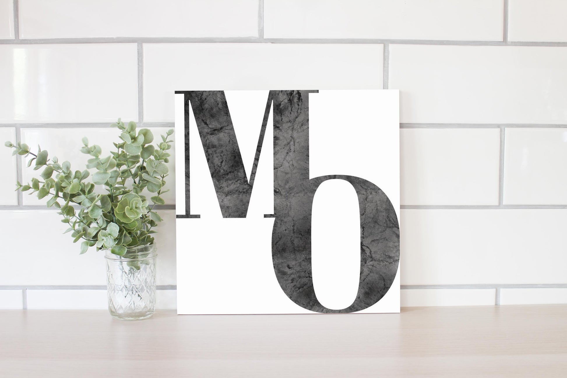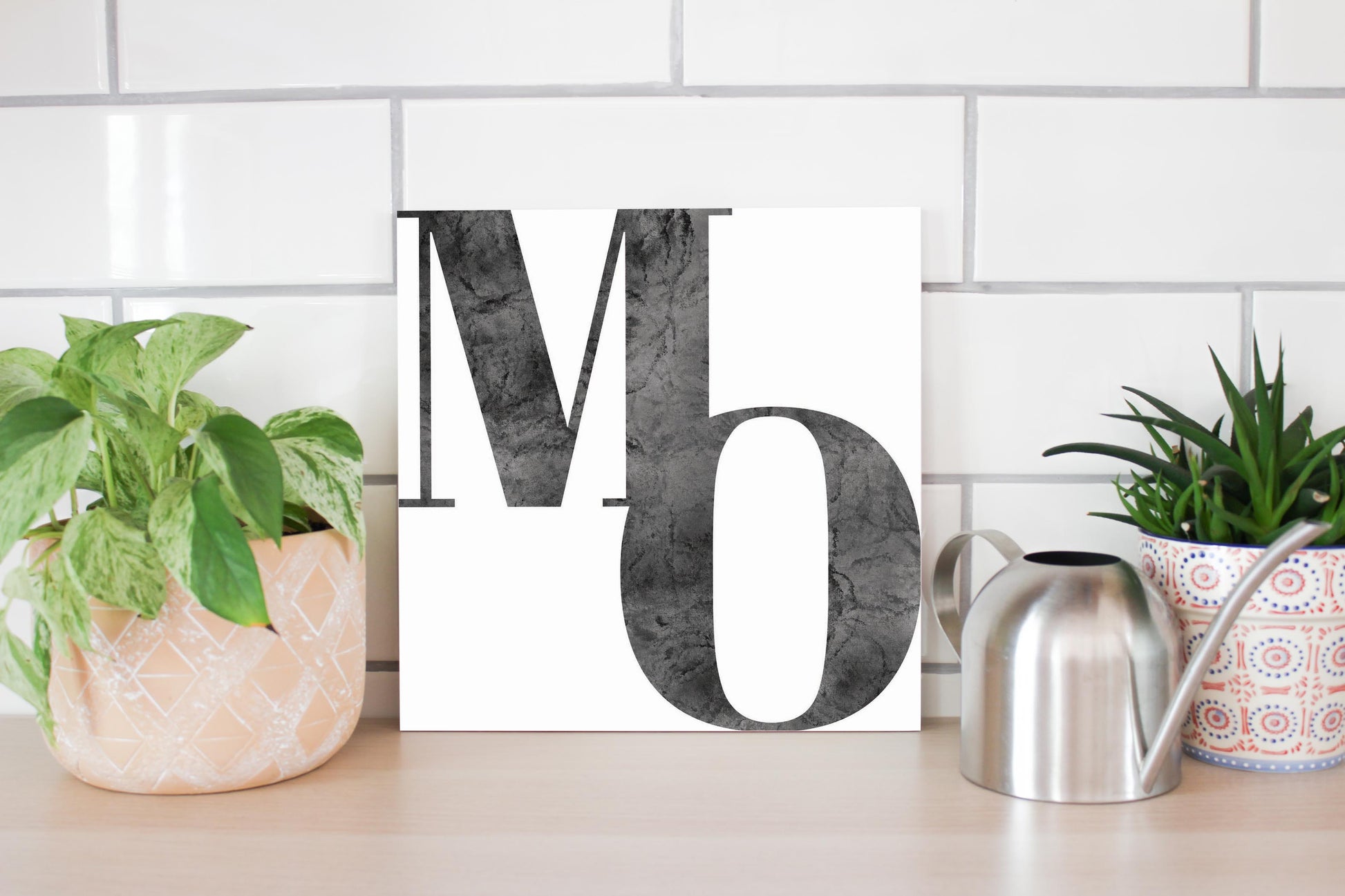 Minimalist B&W Missouri White Initials | Wood Sign | Eaches | Min 2