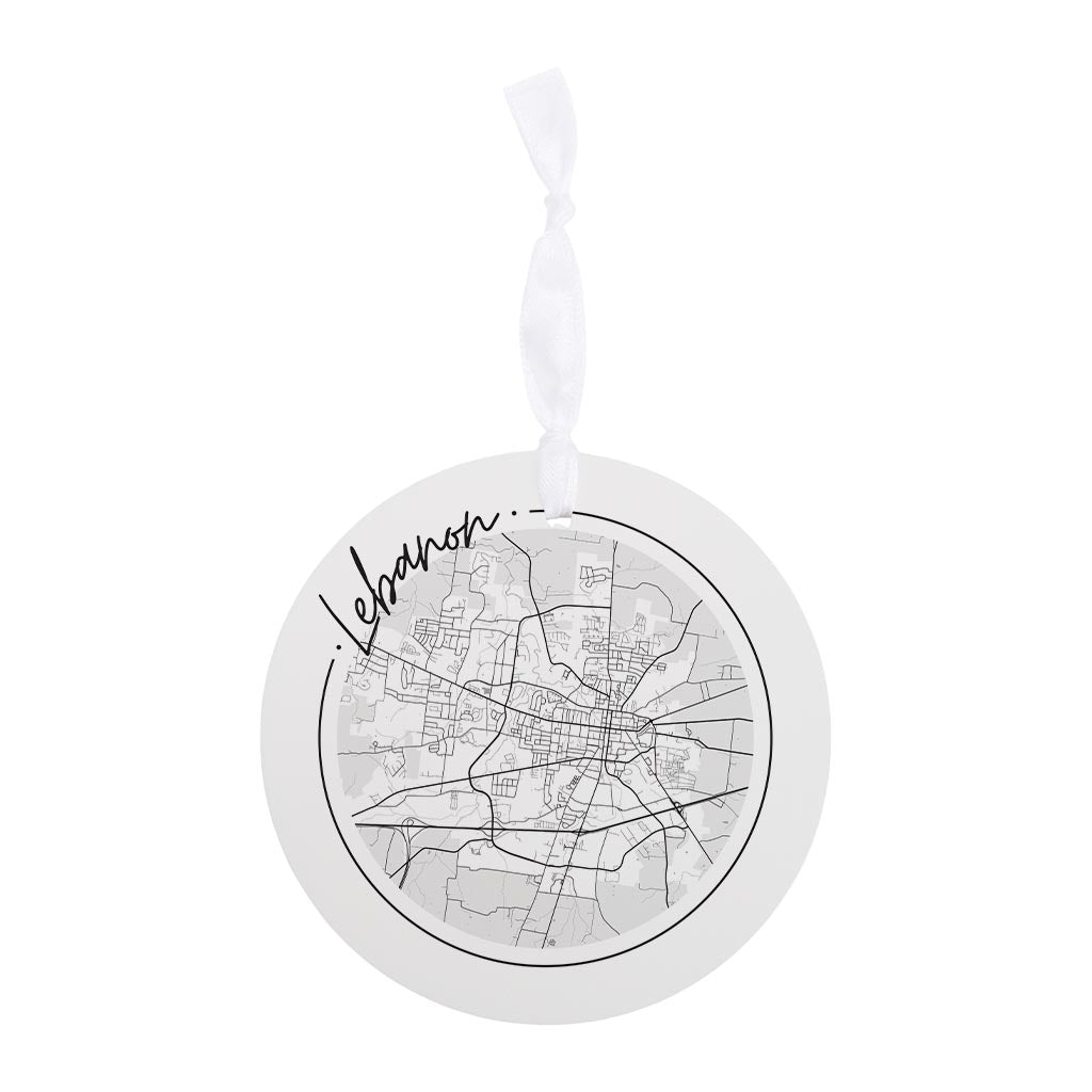 Minimalist B&W Tennessee Lebanon Circle Map| Wood Ornament | Eaches | Min 6