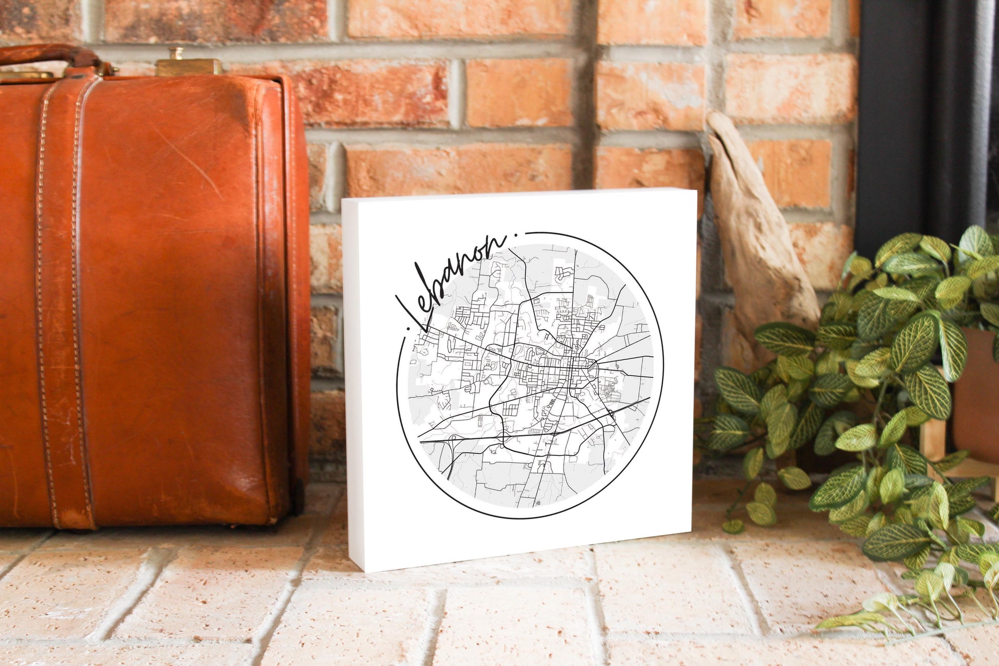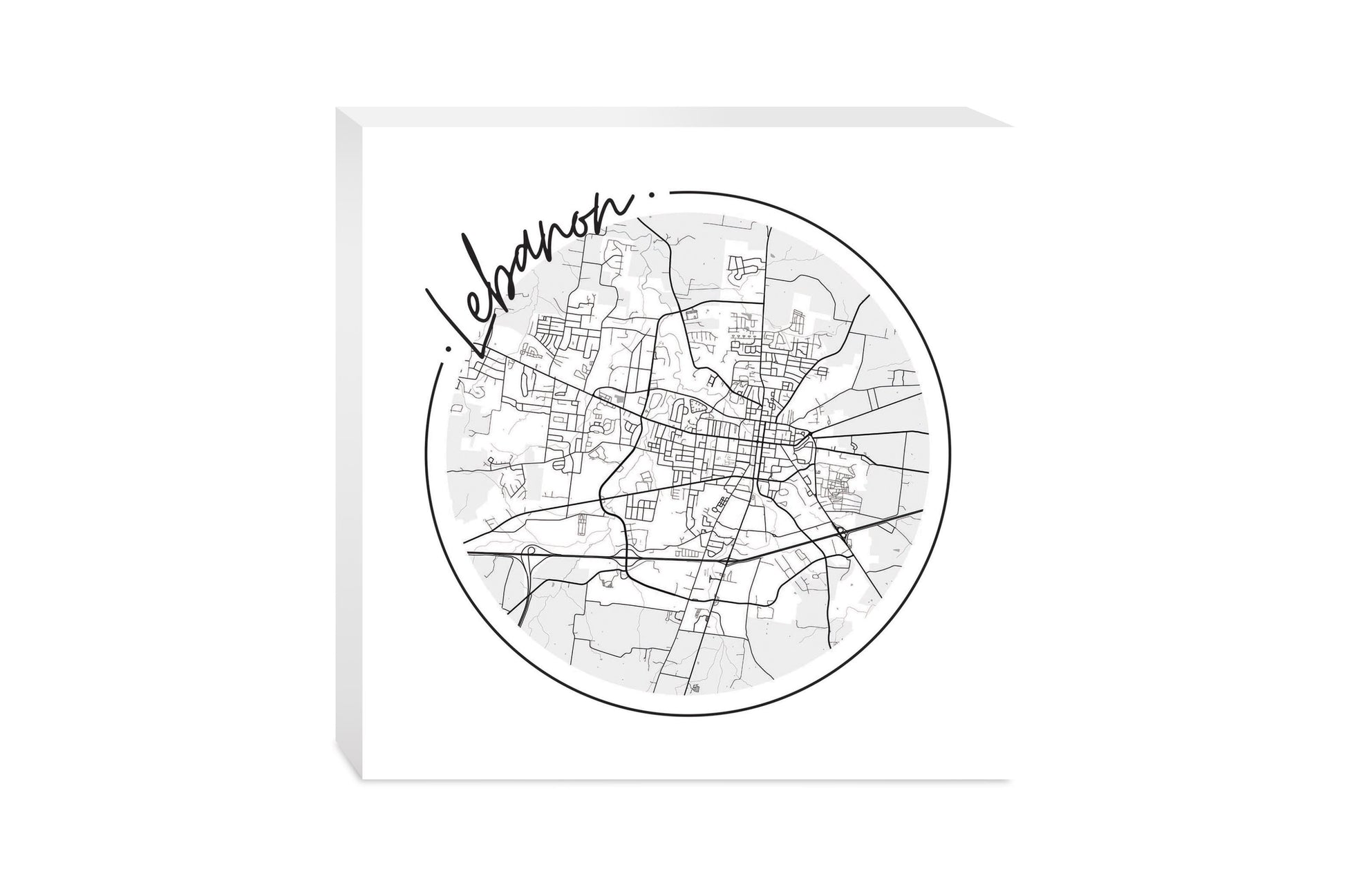 Minimalist B&W Tennessee Lebanon Circle Map | Wood Block | Eaches | Min 2
