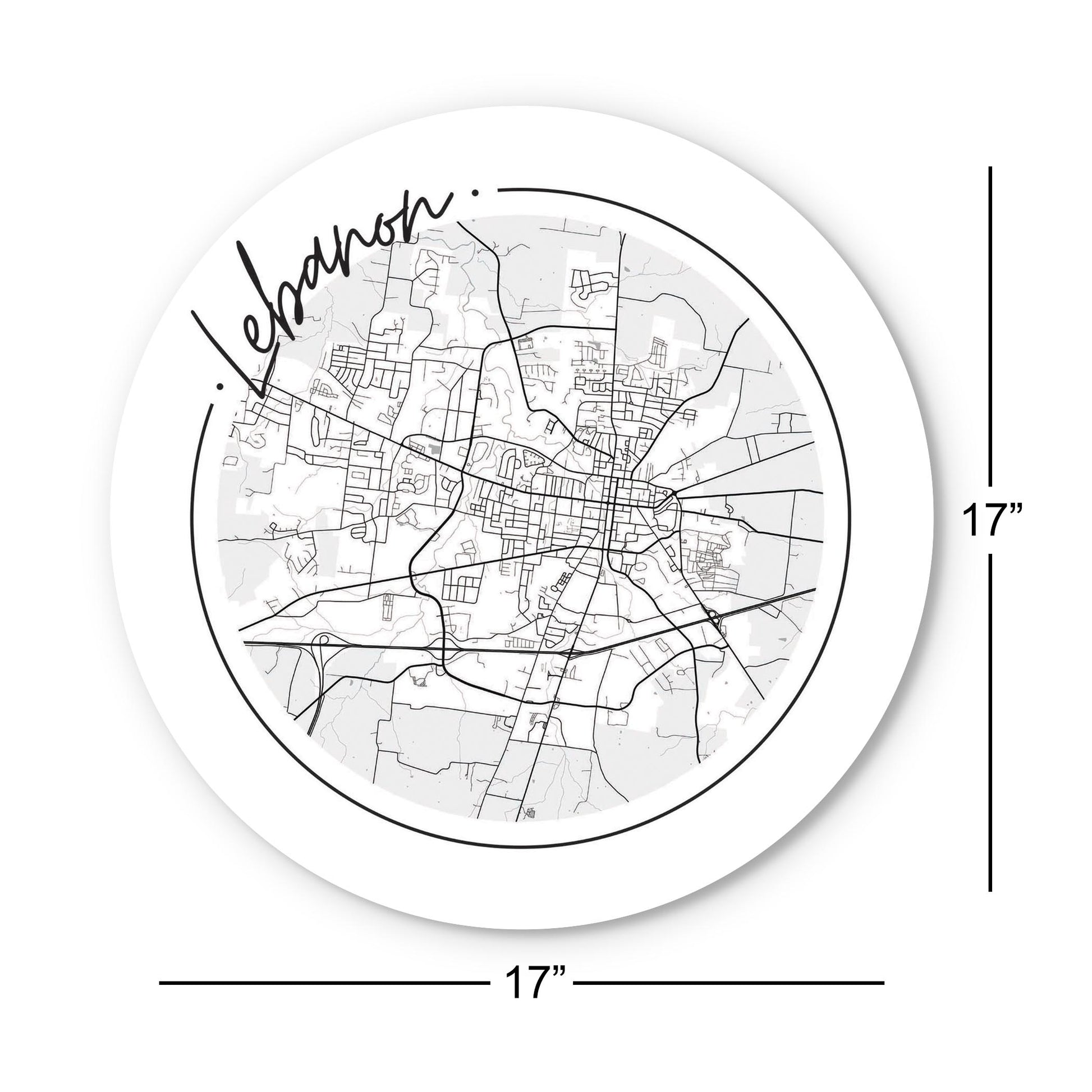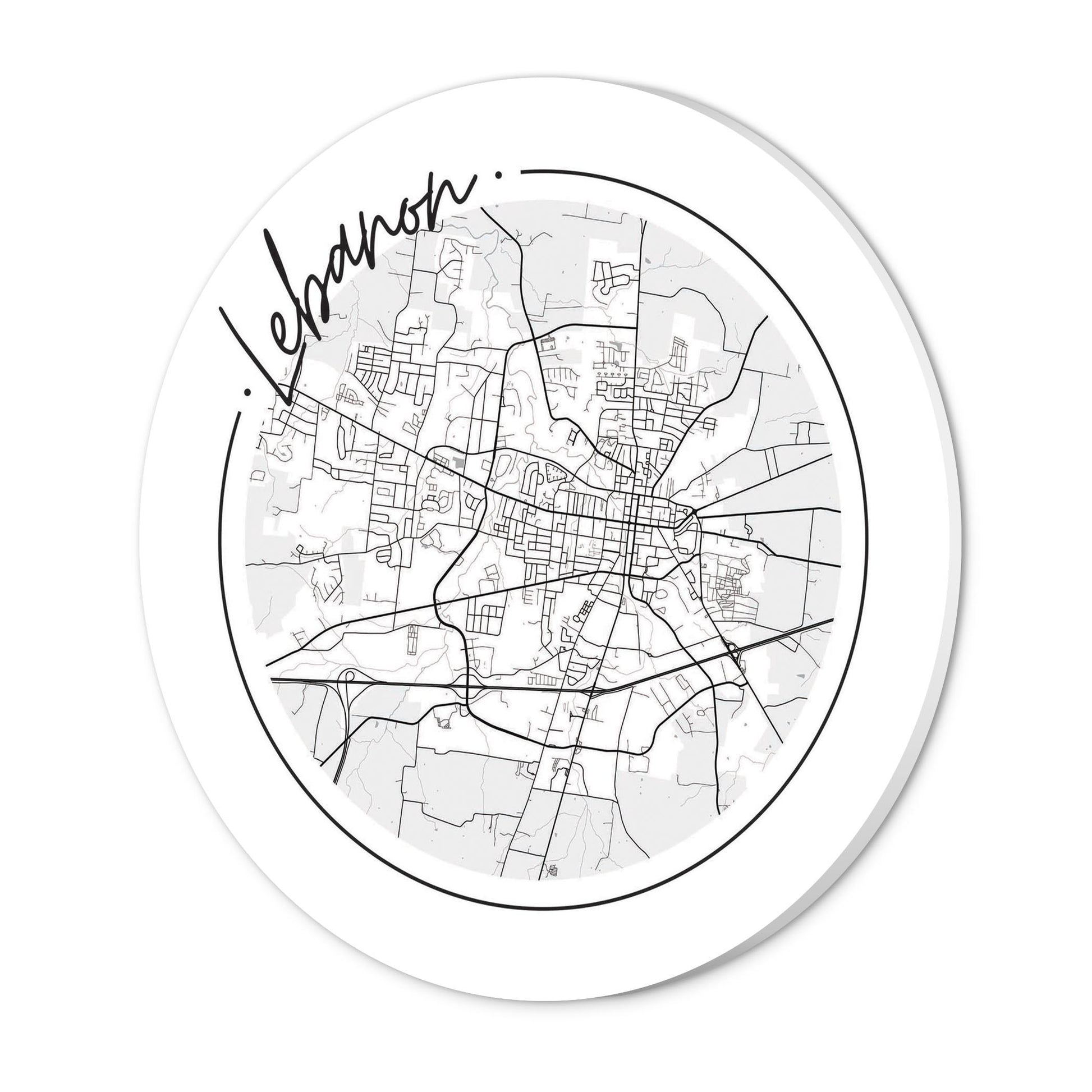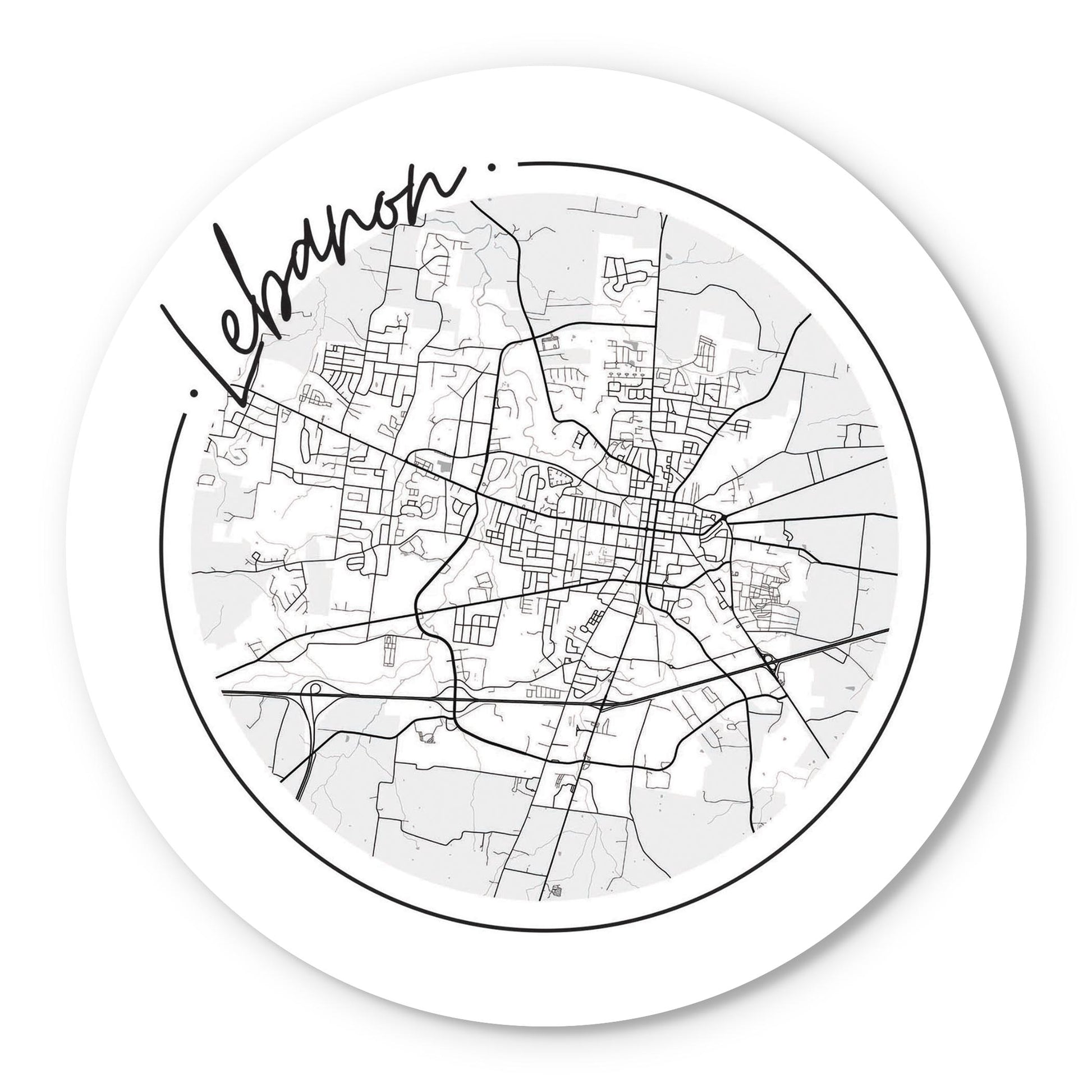 Minimalist B&W Tennessee Lebanon Circle Map | Wood Sign | Eaches | Min 1