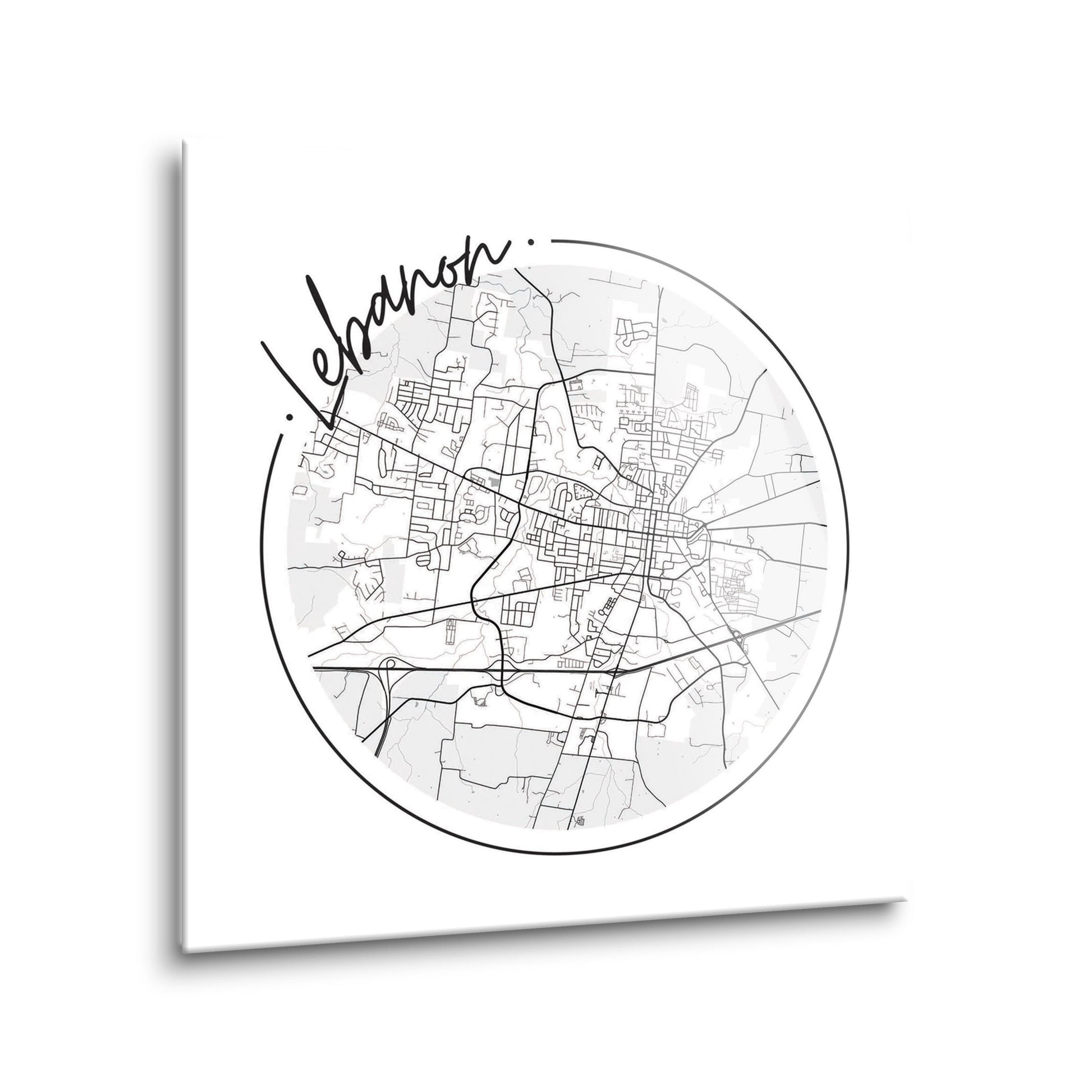 Minimalist B&W Tennessee Lebanon Circle Map | Hi-Def Glass Art | Eaches | Min 2
