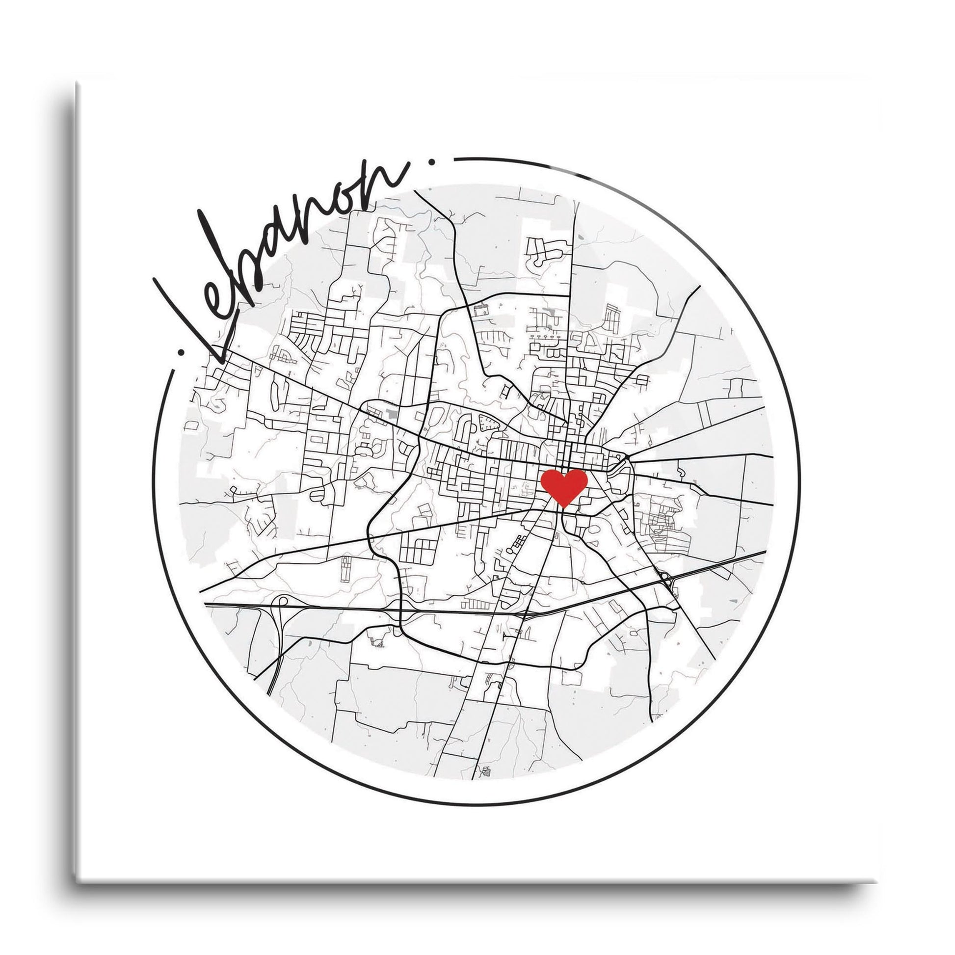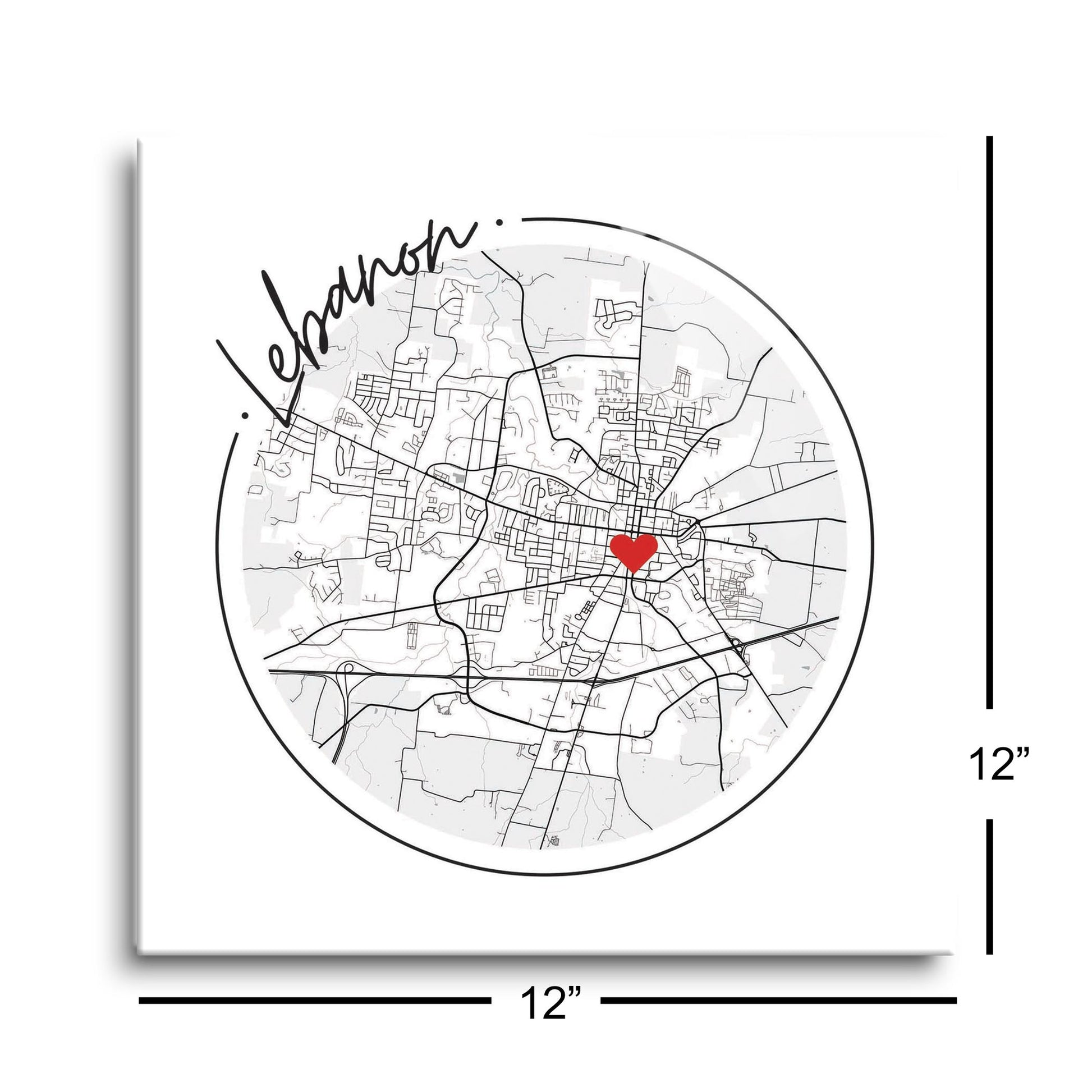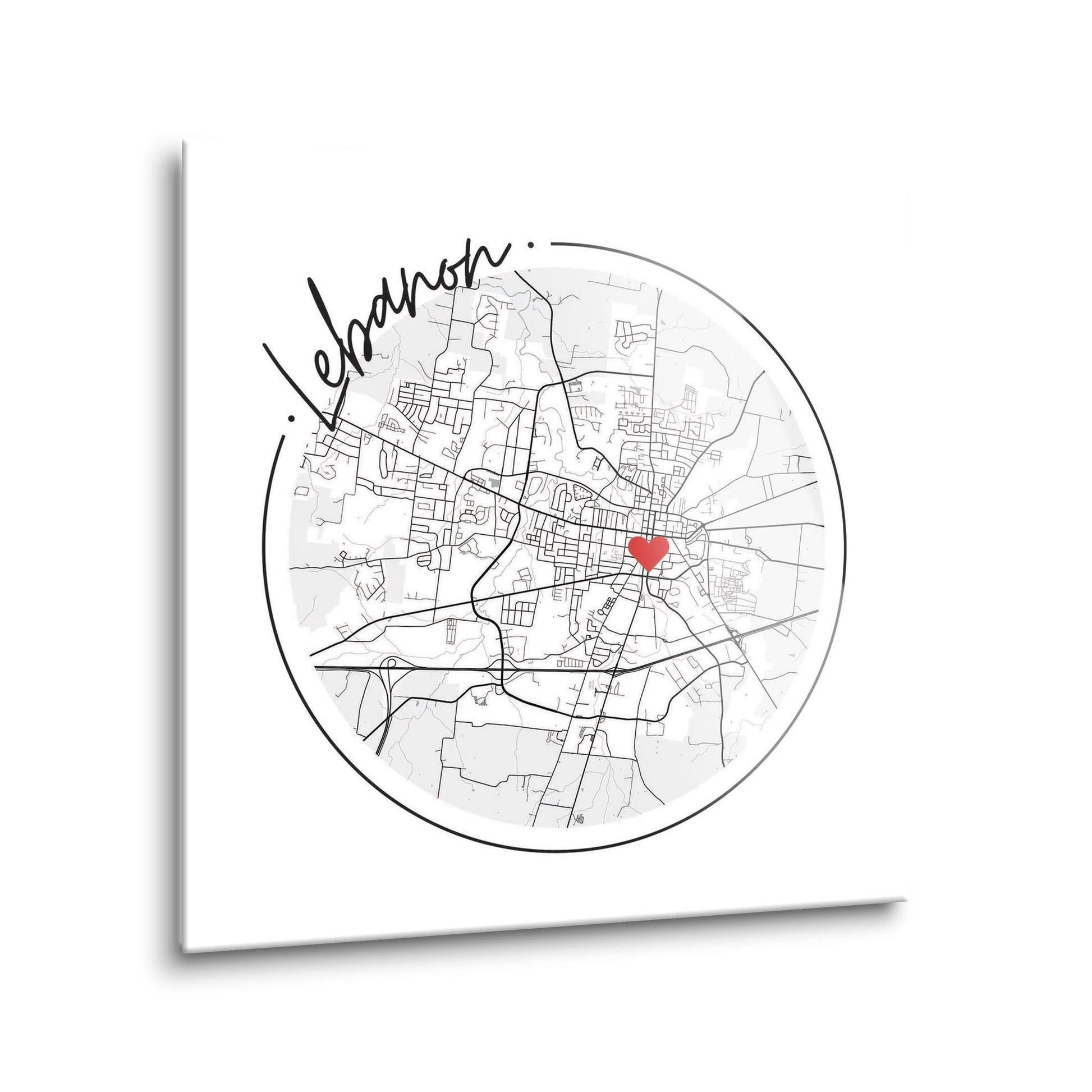 Minimalist B&W Tennessee Lebanon Circle Map Heart | Hi-Def Glass Art | Eaches | Min 1