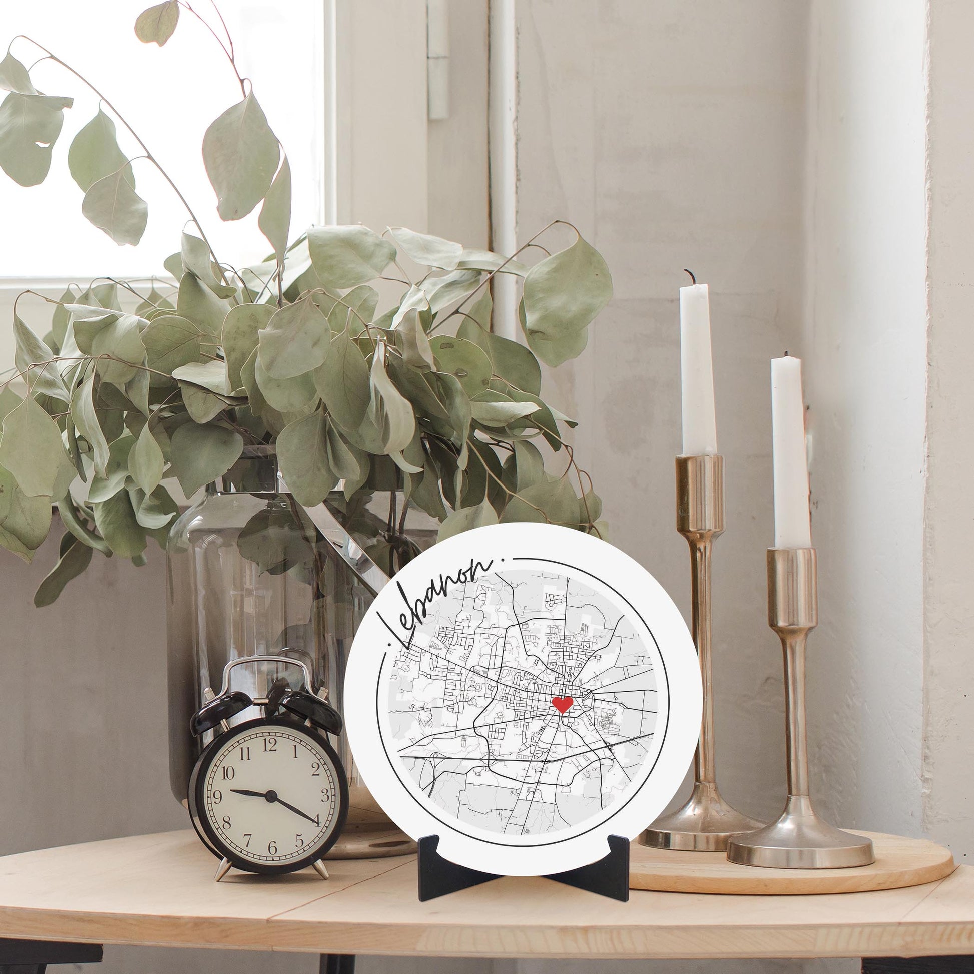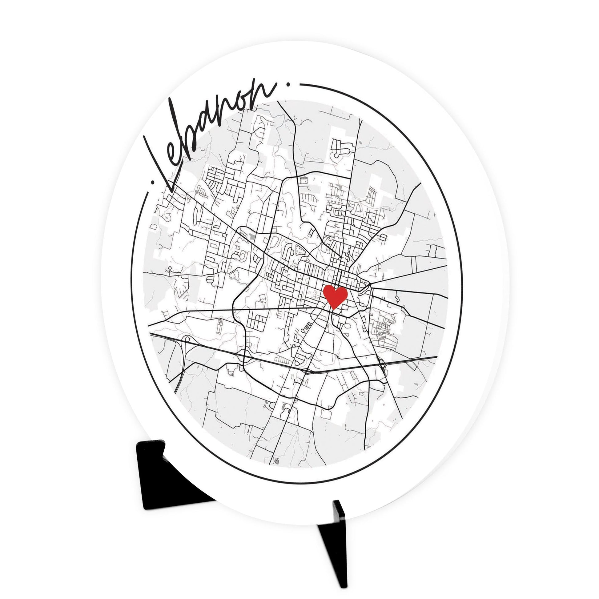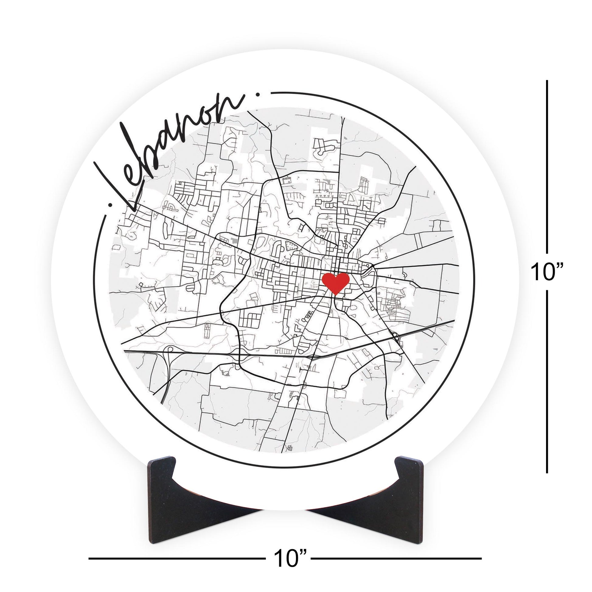 Minimalist B&W Tennessee Lebanon Circle Map Heart | Wood Sign | Eaches | Min 1