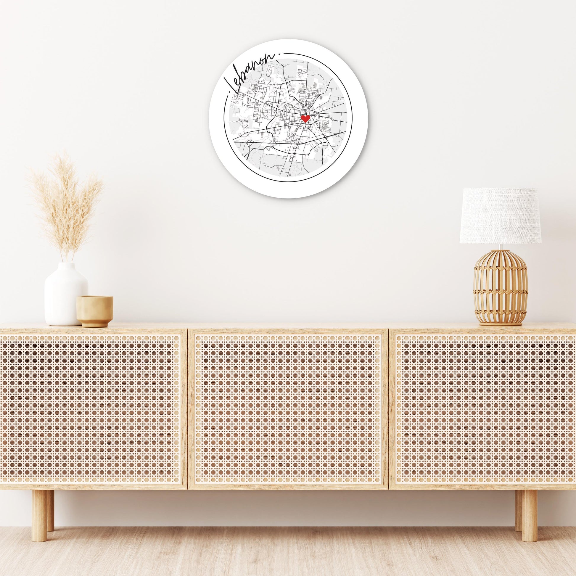 Minimalist B&W Tennessee Lebanon Circle Map Heart | Wood Sign | Eaches | Min 1
