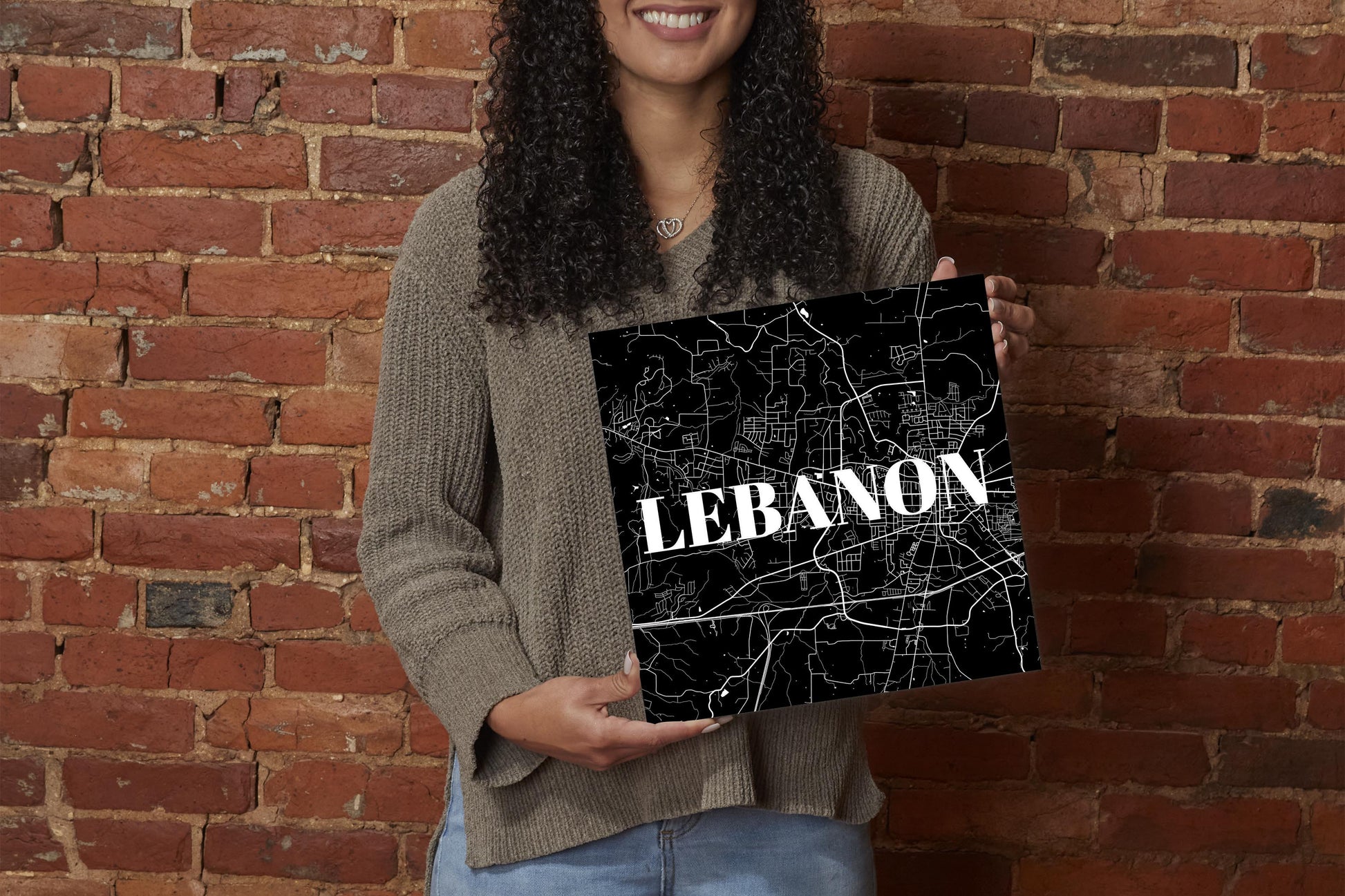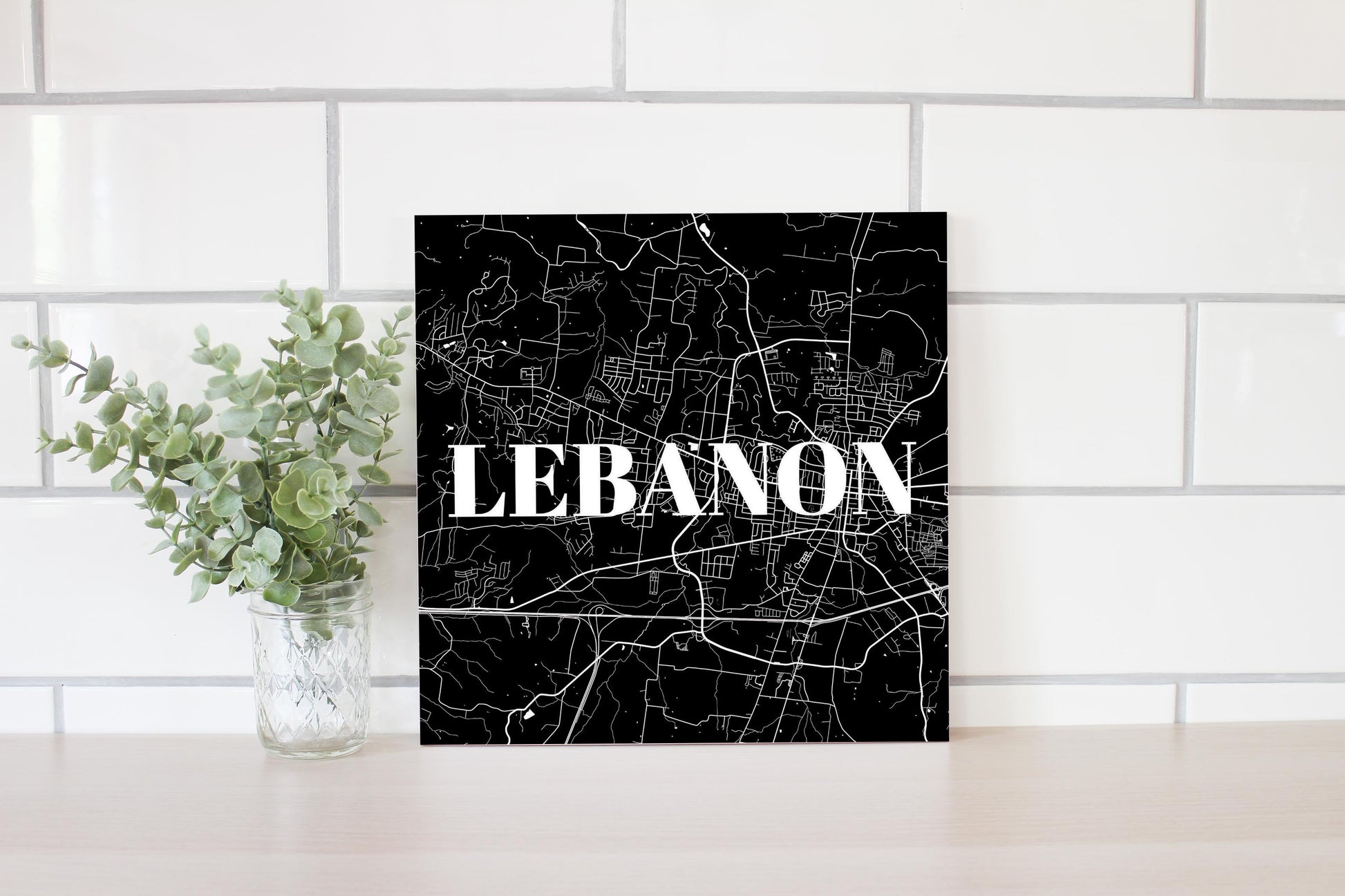 Minimalist B&W Tennessee Lebanon Map | Wood Sign | Eaches | Min 2