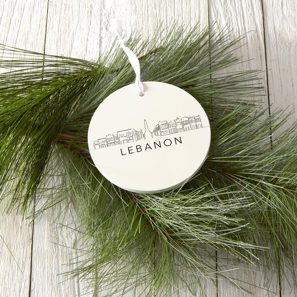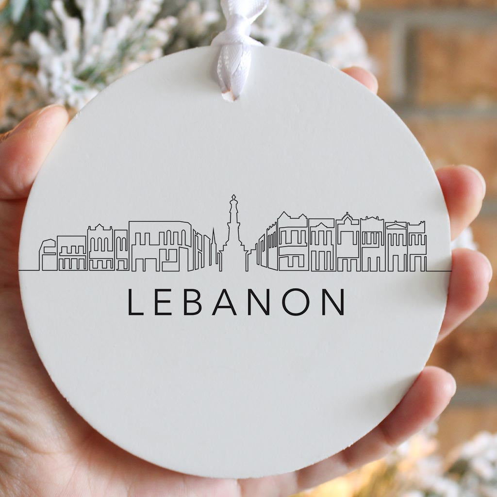 Minimalist B&W Tennessee Lebanon Skyline| Wood Ornament | Eaches | Min 6