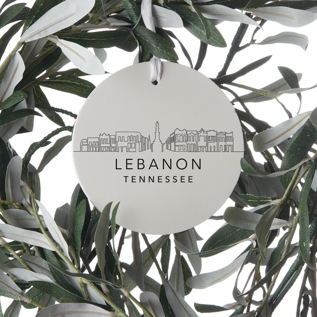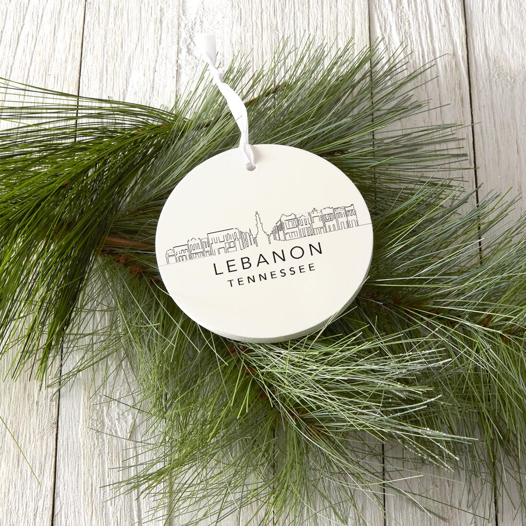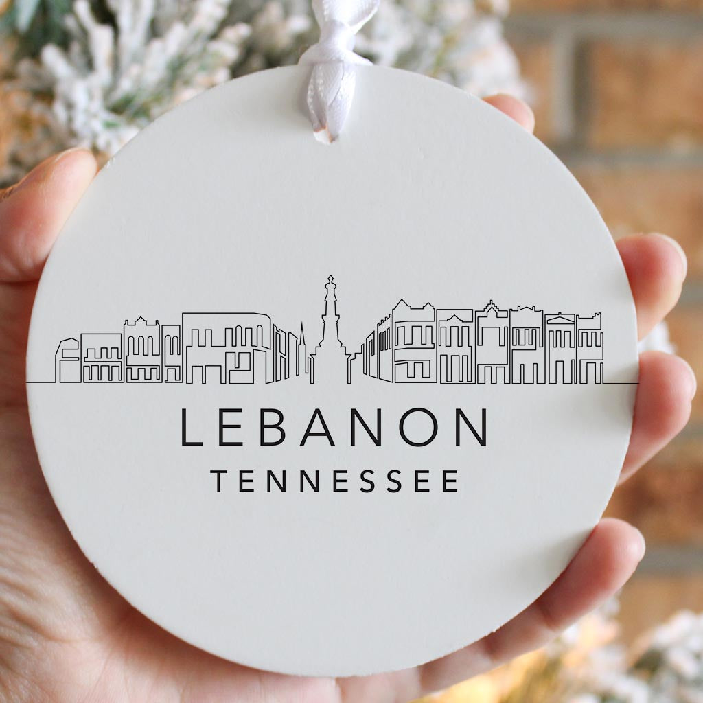 Minimalist B&W Tennessee Lebanon Skyline | Wood Ornament | Eaches | Min 6