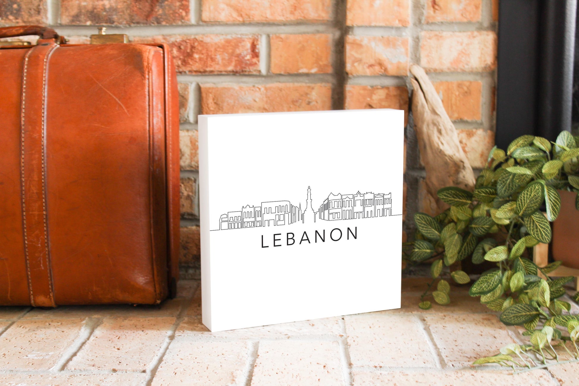 Minimalist B&W Tennessee Lebanon Skyline | Wood Block | Eaches | Min 2