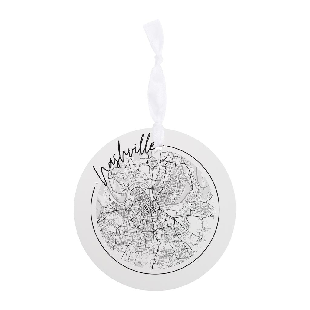 Minimalist B&W Tennessee Nashville Circle Map | Wood Ornament | Eaches | Min 6