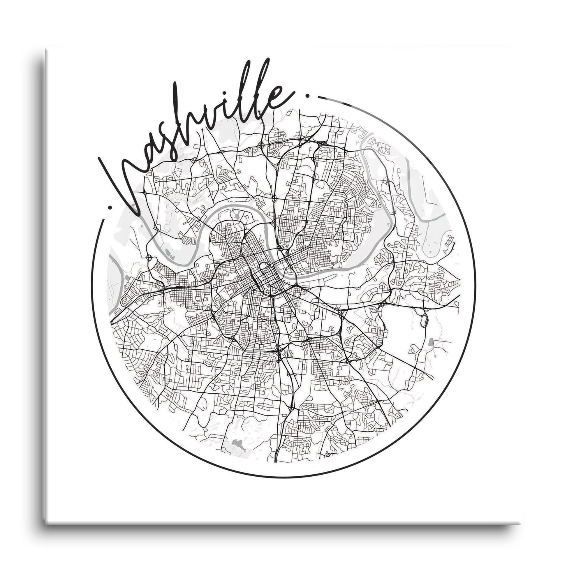 Minimalist B&W Tennessee Nashville Circle Map | Hi-Def Glass Art | Eaches | Min 1