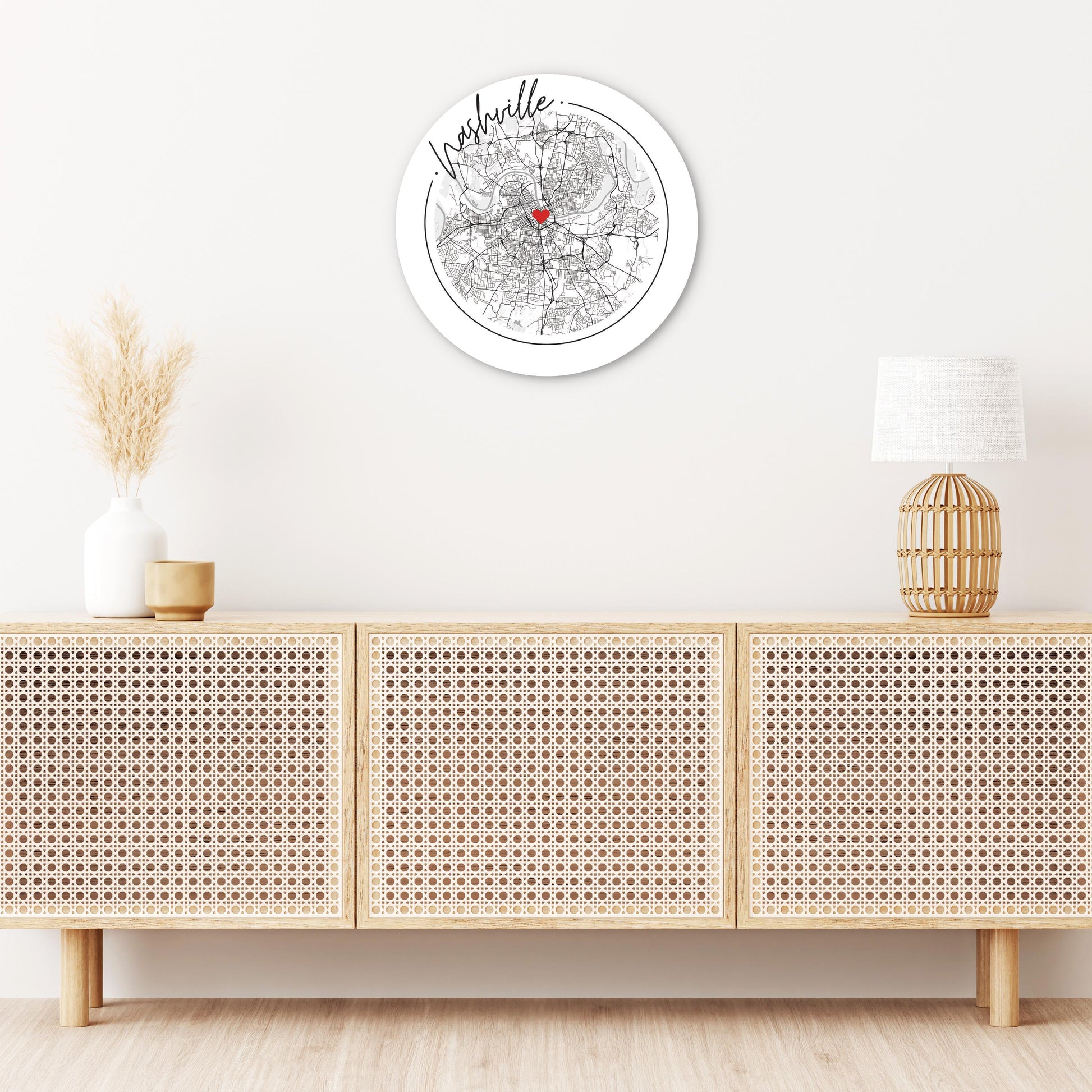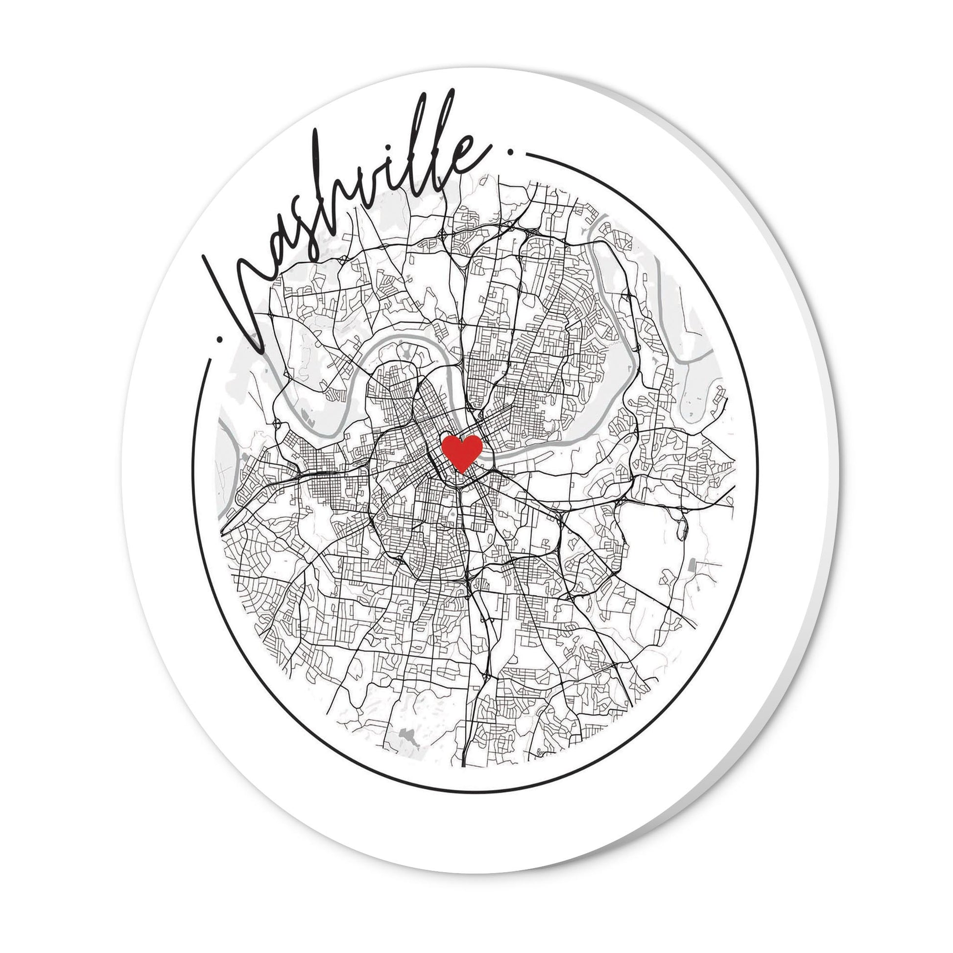Minimalist B&W Tennessee Nashville Circle Map Heart | Wood Sign | Eaches | Min 1