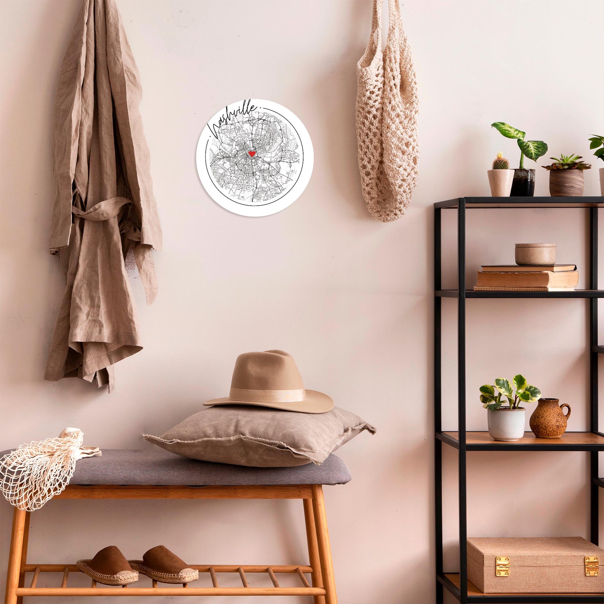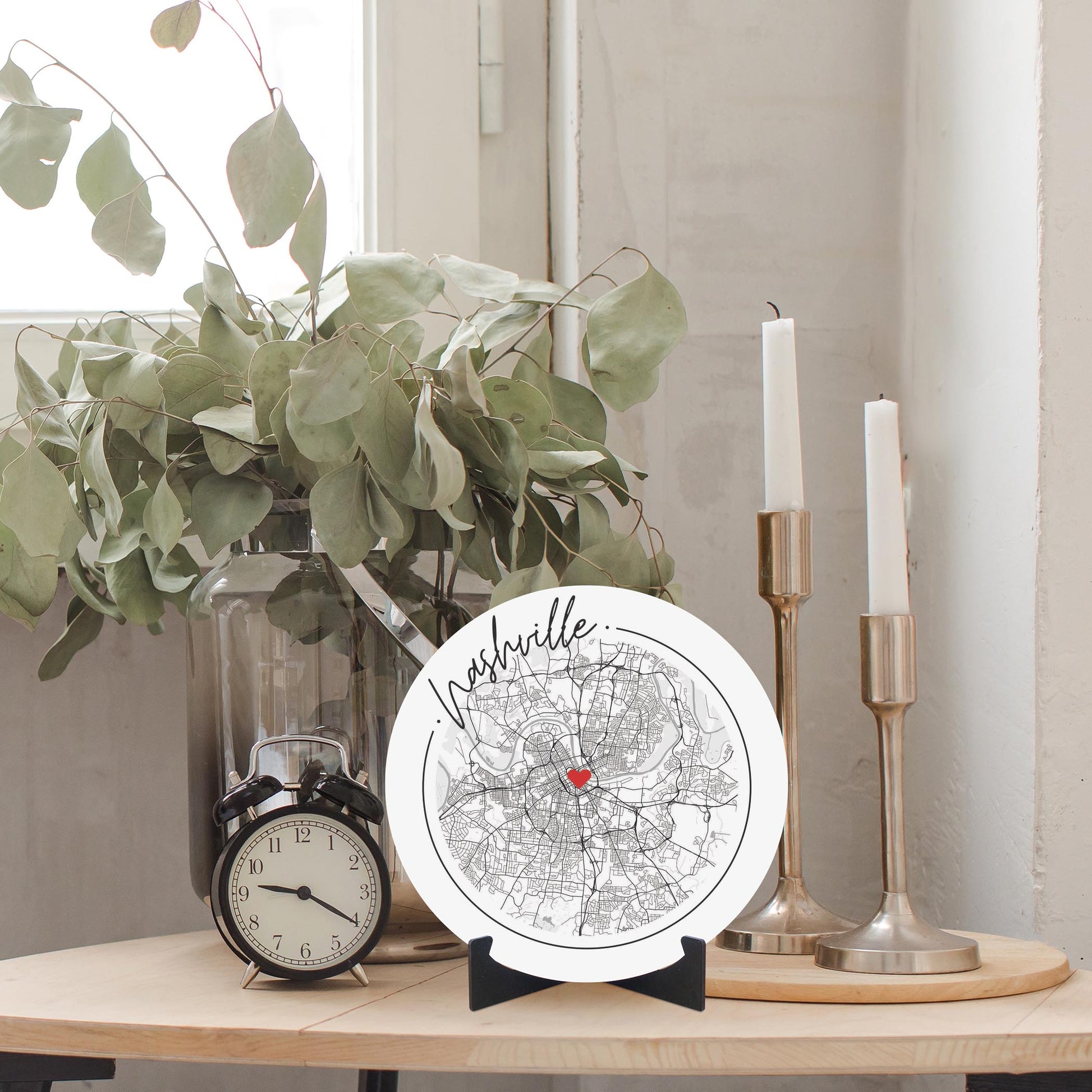Minimalist B&W Tennessee Nashville Circle Map Heart | Wood Sign | Eaches | Min 1